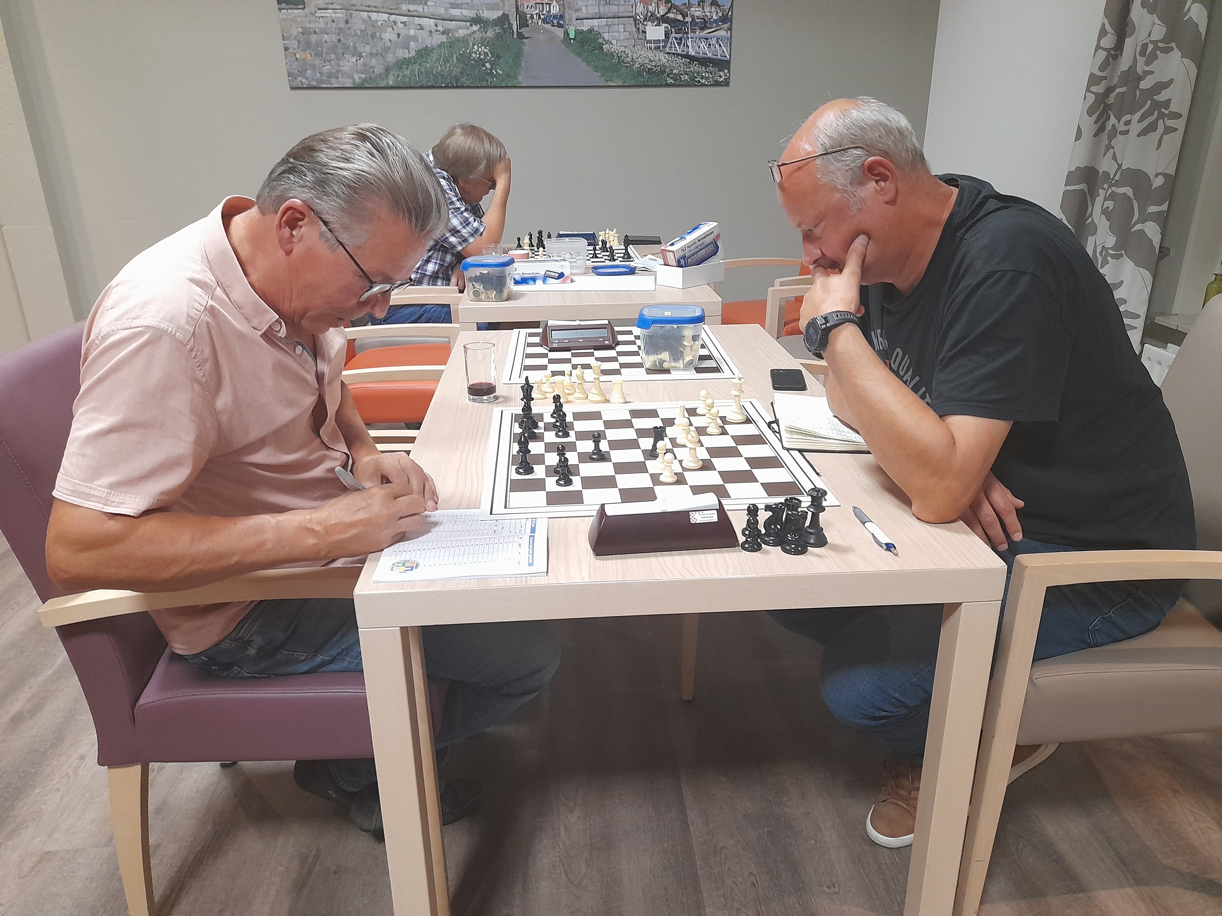Beide schakers zijn elkaar in vier seizoenen niet zo veel tegen gekomen. Net als twee jaar geleden bij de start van de competitie moesten Donkers en Blinde ook de eerste partij tegen elkaar spelen. Toen verloor Blinde vrij snel. Maar ondanks dat zijn ze, toch zeker op basis van het laatste resultaat, best wel aan elkaar gewaagd.