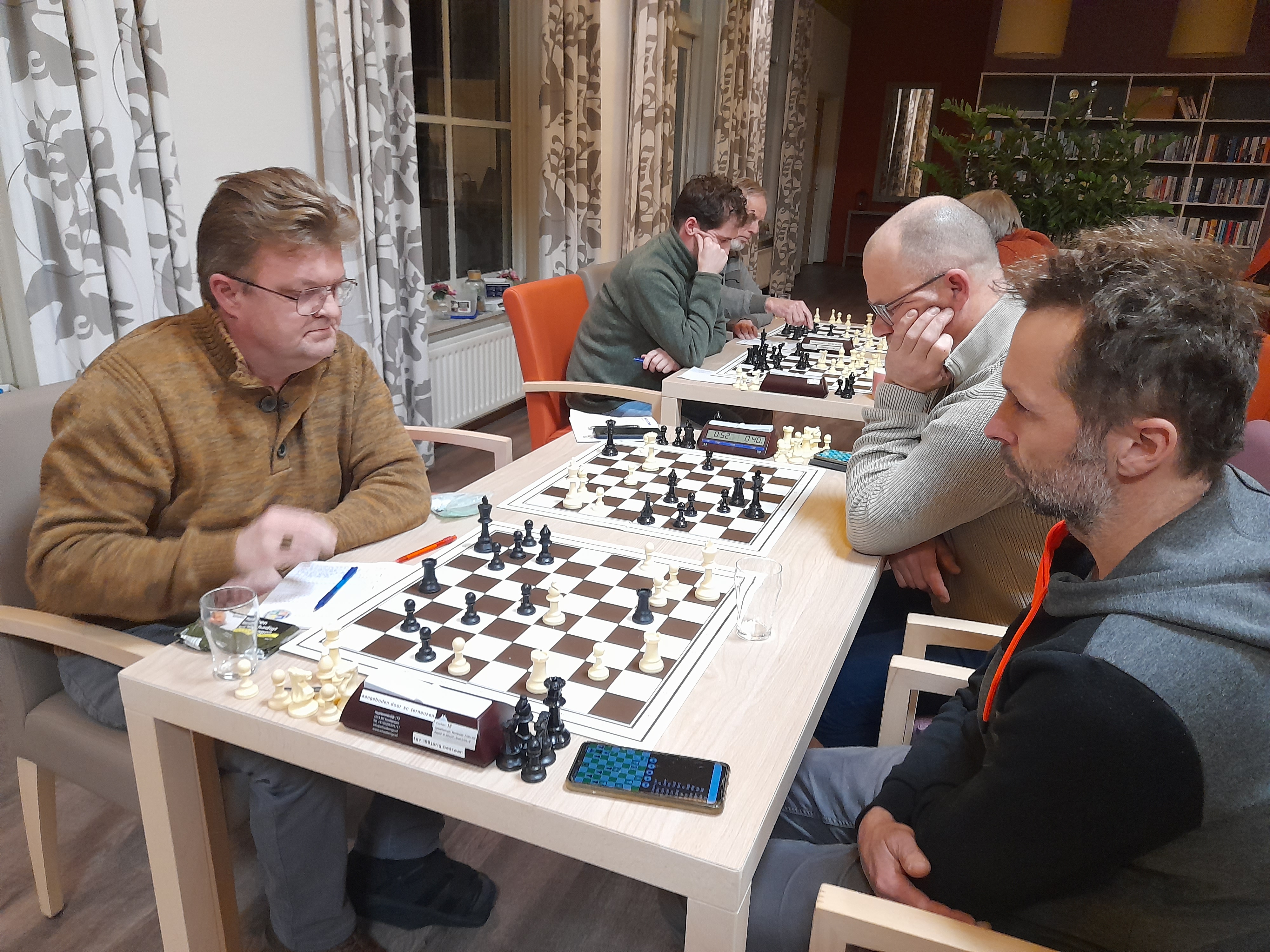 Het A-viertal speelde zijn vijfde match in de 2e klasse ZSB thuis tegen Oostkapelle. Het werd een ruime overwinning door zeges van Aloys, Kees en Sjaak, en een remise van Martin. Zierikzee staat nu eerste, maar de concurrenten DZD A en Goes C moeten nog spelen en kunnen dan over Zierikzee heen gaan. Goes C heeft nog een vrij makkelijk restprogramma, Zierikzee en DZD A spelen nog tegen elkaar. De kans op een tweede plaats hebben we nog in eigen hand, maar de kans om eerste te worden is niet groot meer.