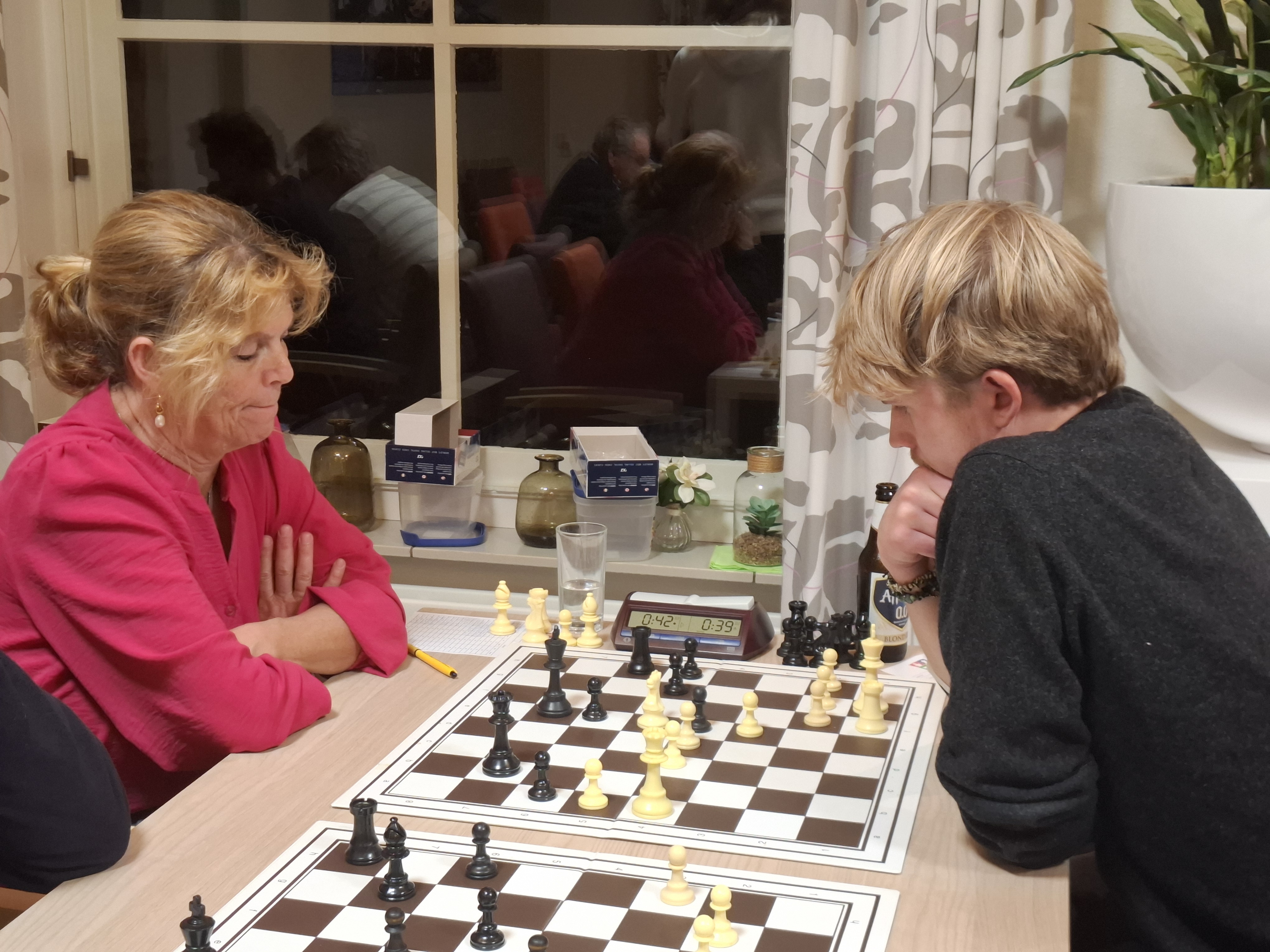 Marnix den Boer was de grote winnaar van de avond. Door te winnen van directe concurrent Floris van der Voorn neemt Den Boer de vierde plaats in handen, daar waar hij vier seizoenen geleden zo sterk eindigde. Paul Greefhorst en Peter de Vrieze zorgden voor spektakel in een partij die veel weg had van snelschaken, maar na een uiteindelijk toch nog lang eindspel tekenden ook zij voor remise. Voorafgaand kreeg de vereniging bezoek van Mattheo van den Dorpel. In het kader van de Rabobank Clubactie reikte hij een cheque ter waarde van honderdtwintig euro uit aan penningmeester Paul Greefhorst. Iedereen die op onze vereniging heeft gestemd, heel erg bedankt!