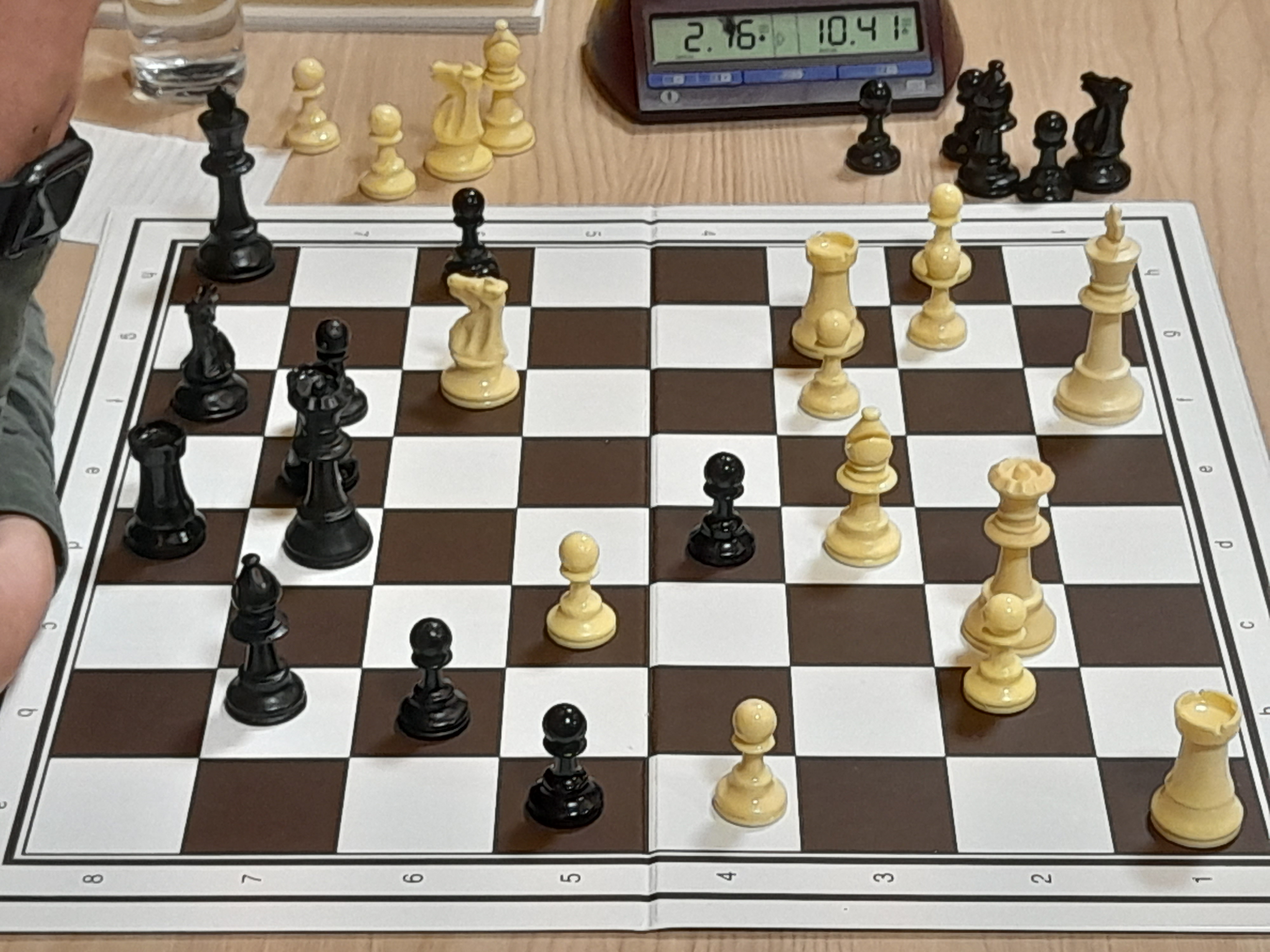 Weer een kwaliteit winst voor wit en tien zetten later werden de dames afgeruild. De Vrieze kon rustig een plannetje bedenken om met zijn twee torens achter de zwarte pionnen te komen. Daarna kwam de zwarte koning zodanig in het nauw waardoor zwart de partij gewonnen gaf.