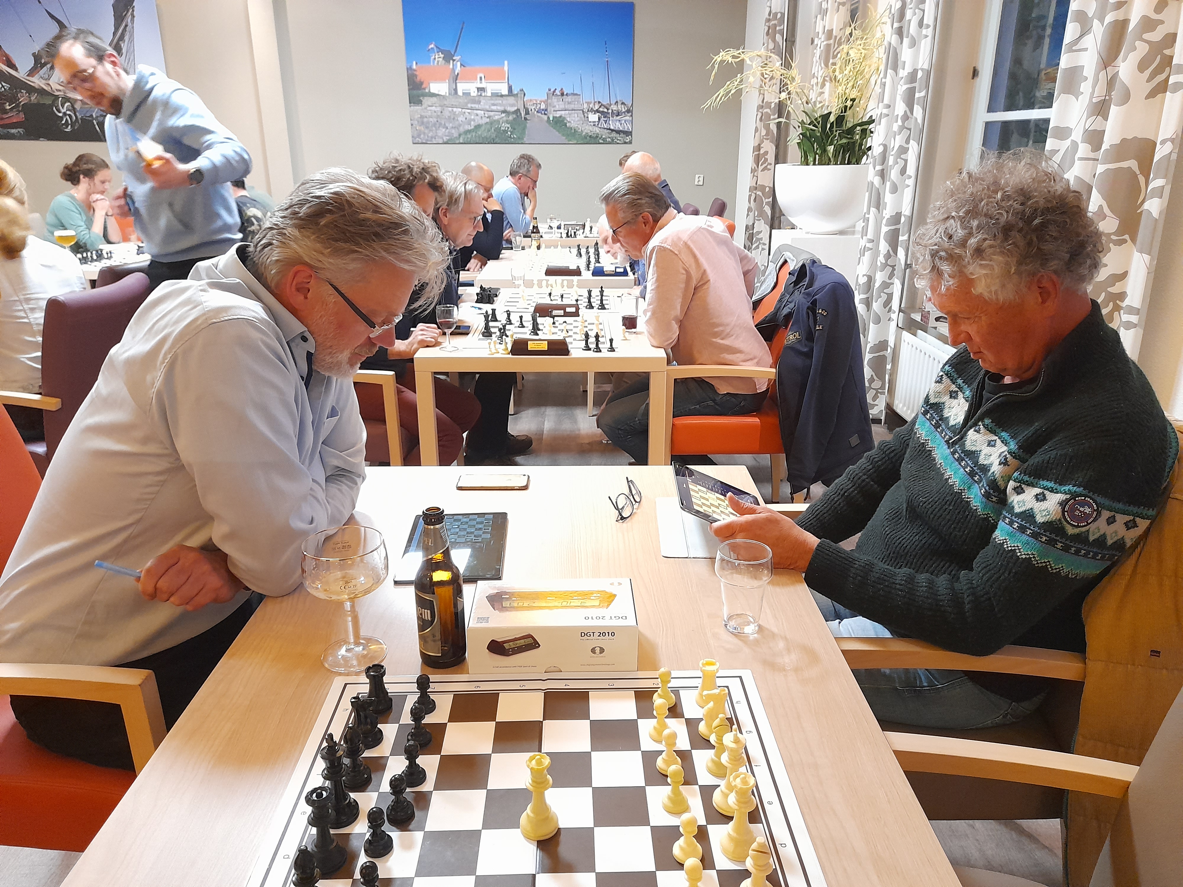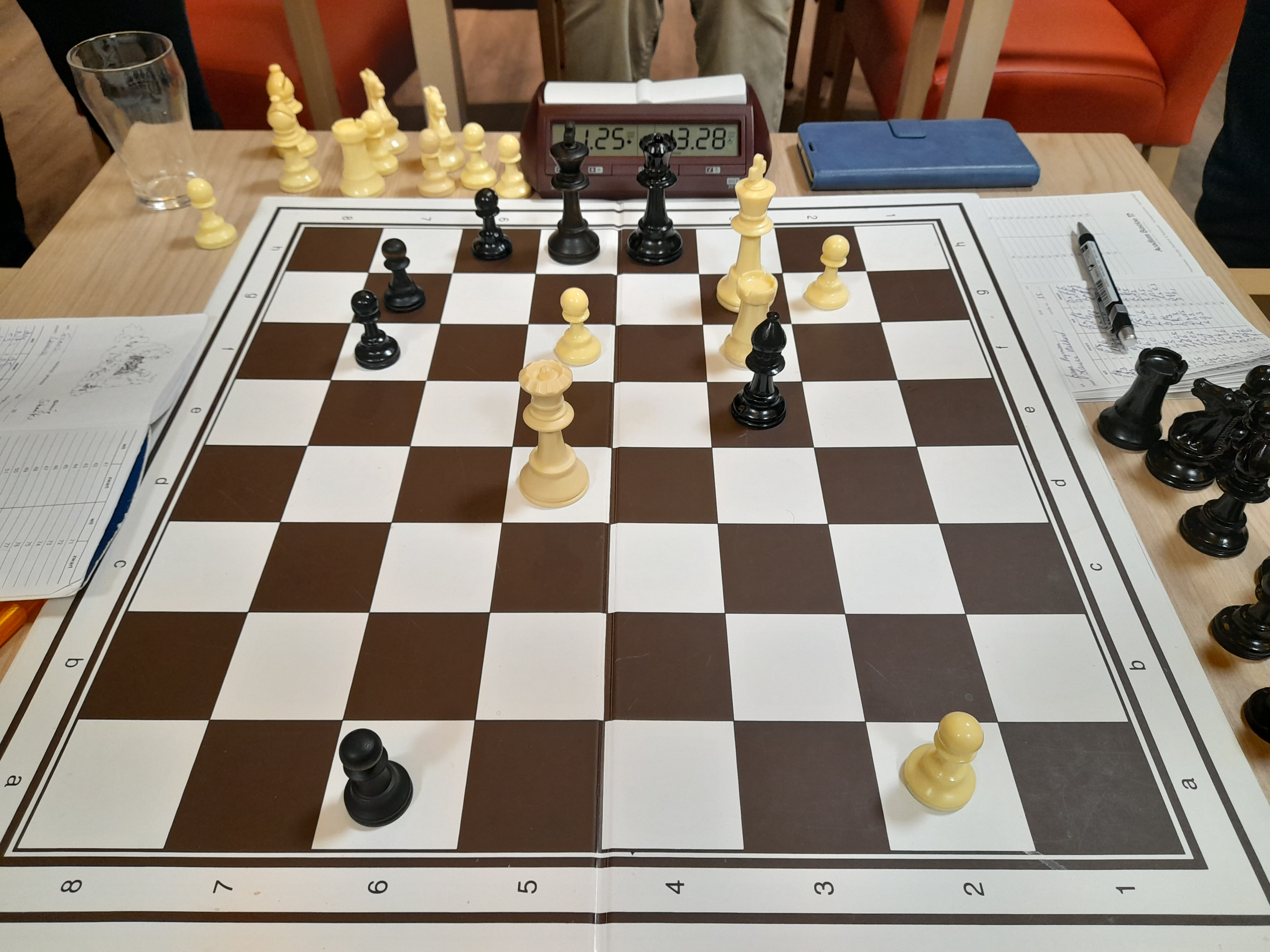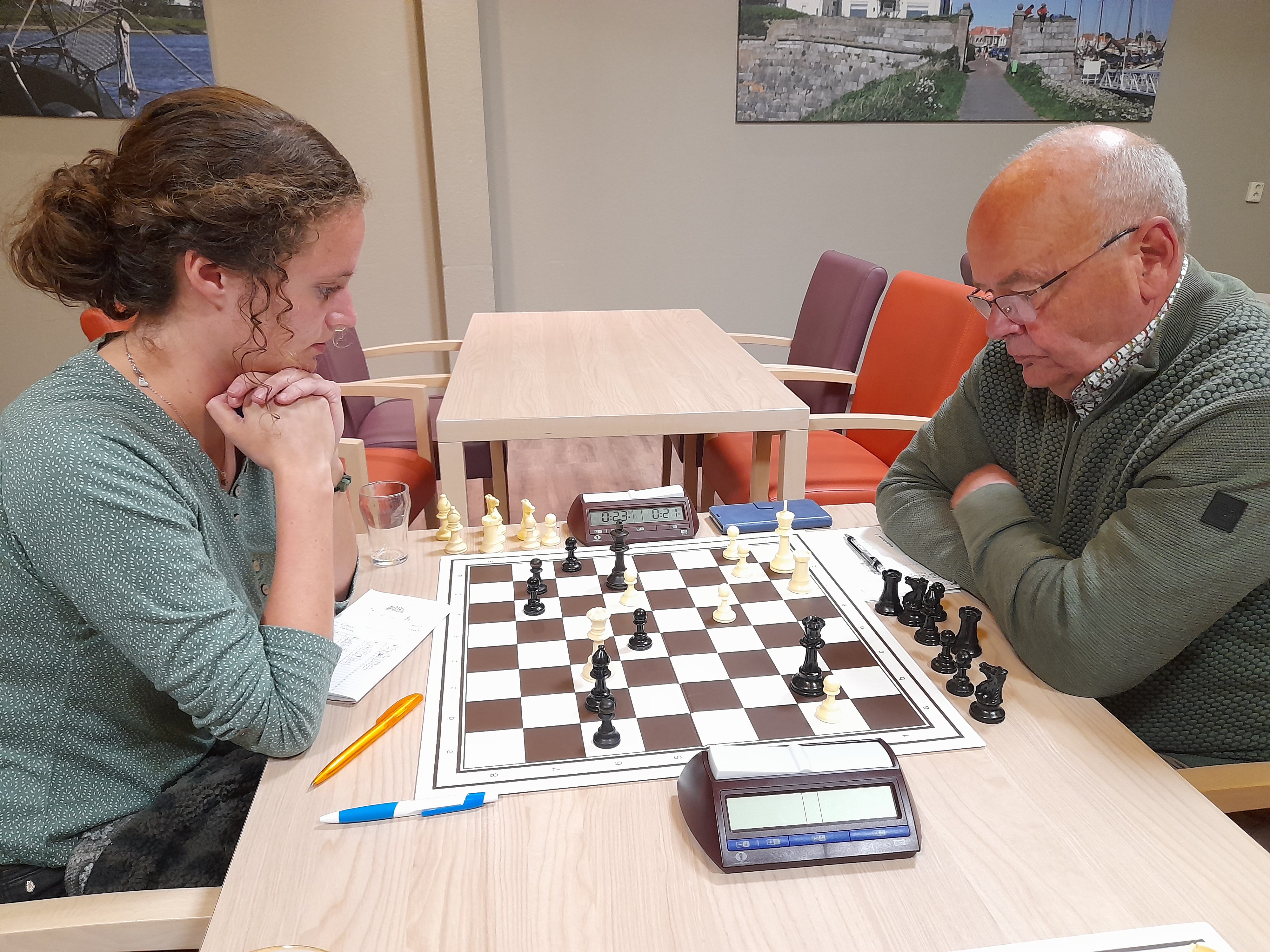 Eigelijk ging het best lekker voor Den Boer, met zwart, maar wachtte lang met rokeren. De dame werd opgejaagd door wit en zwart werd gedwongen hem op f6 te zetten.