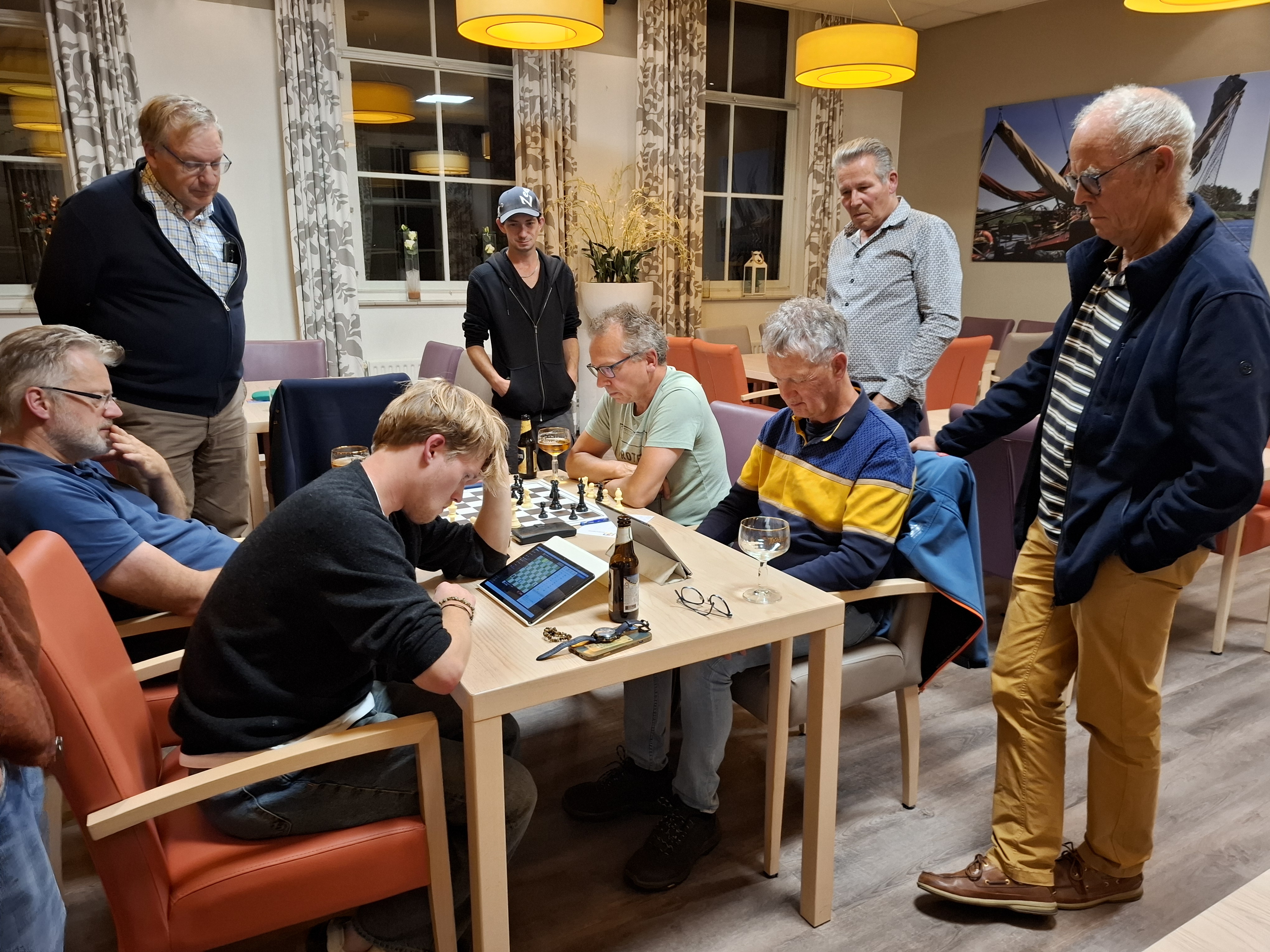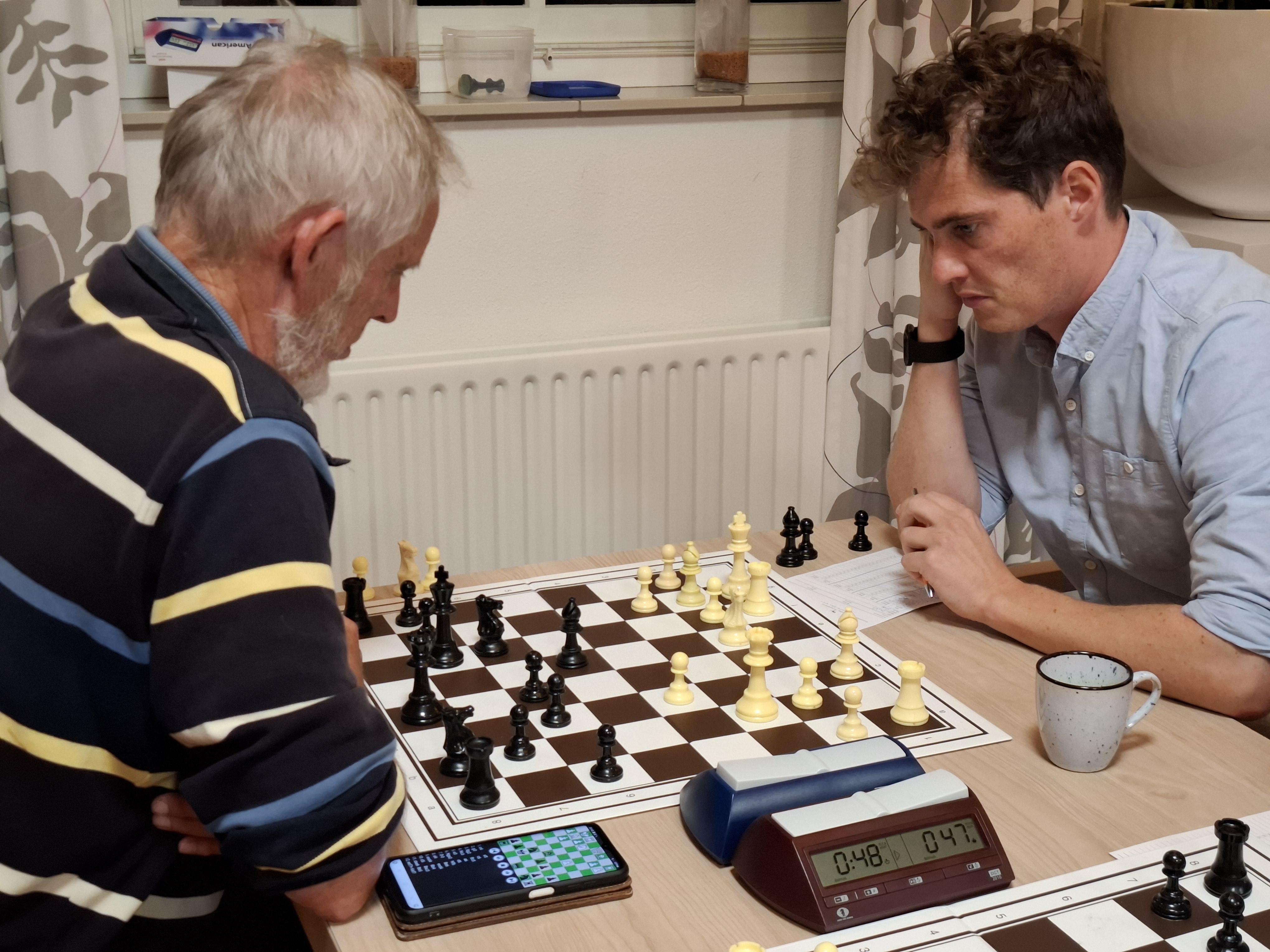 Beide spelers wisten niet, wanneer ze voor het laatst tegen elkaar gespeeld hadden. Dit blijkt in speelronde drie van het seizoen 2022/2023 te zijn geweest. Toen won Weeland, met de zwarte stukken. En voor de volledigheid: beiden speelden zeven keer eerder tegen elkaar, waarbij Weeland vier keer won en het drie keer in remise eindigde. Wel konden ze zich de partijen met de vreemdste openingen en verloop herinneren. Altijd leuk. Weeland nam na de opening het initiatief en slaagde erin dit initiatief de gehele partij te behouden.