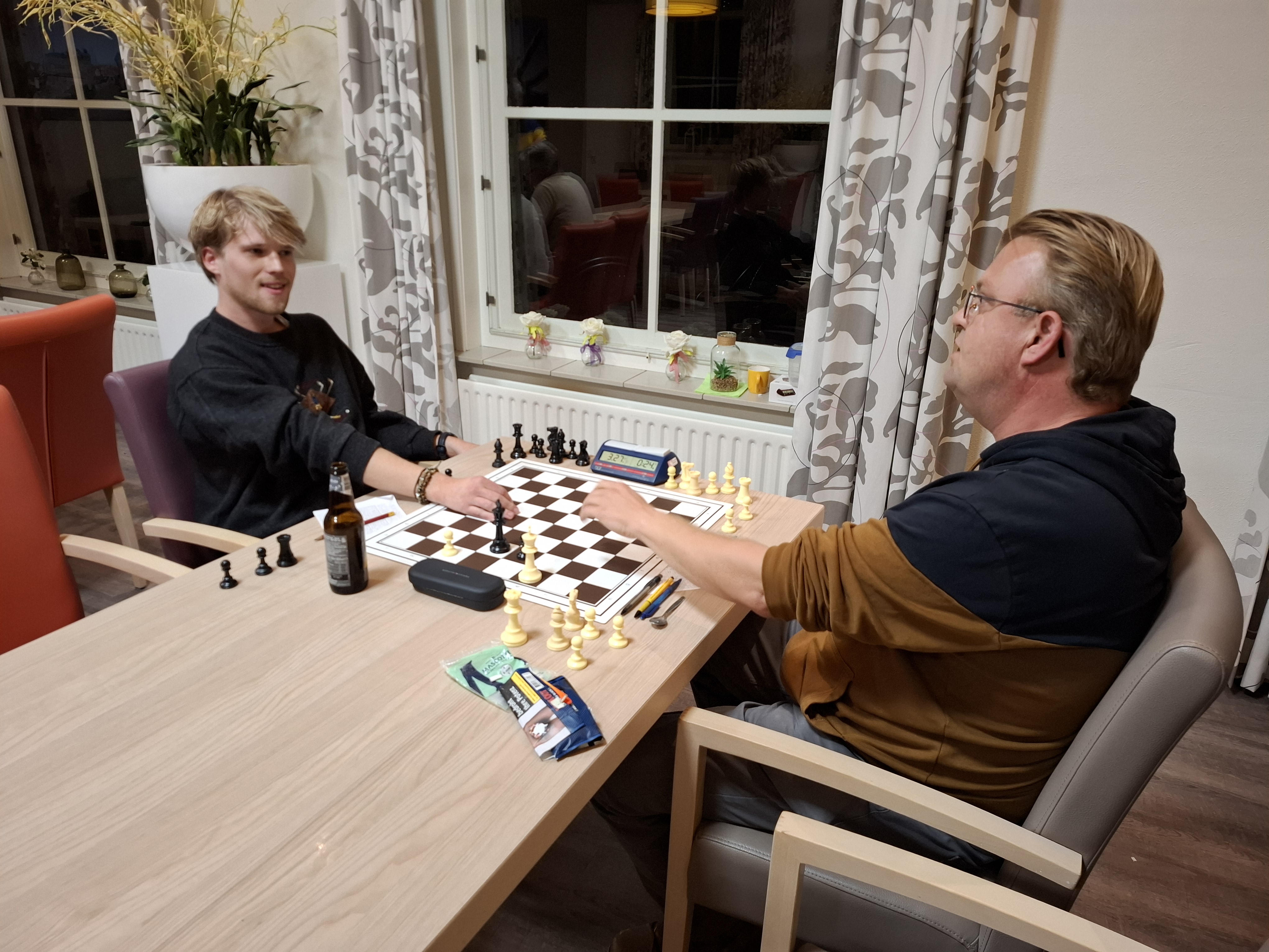 Het zag er voor hem goed uit maar toen kreeg zijn optimisme de overhand. Hij raakte een loper kwijt en vergat even later de andere loper terug te halen. Nu werd deze ingesloten en verdween van het bord. Greefhorst probeerde nog wel verschillende valletjes uit maar Krijger trapte er niet in en kon op zet drieënveertig de felicitaties in ontvangst nemen.