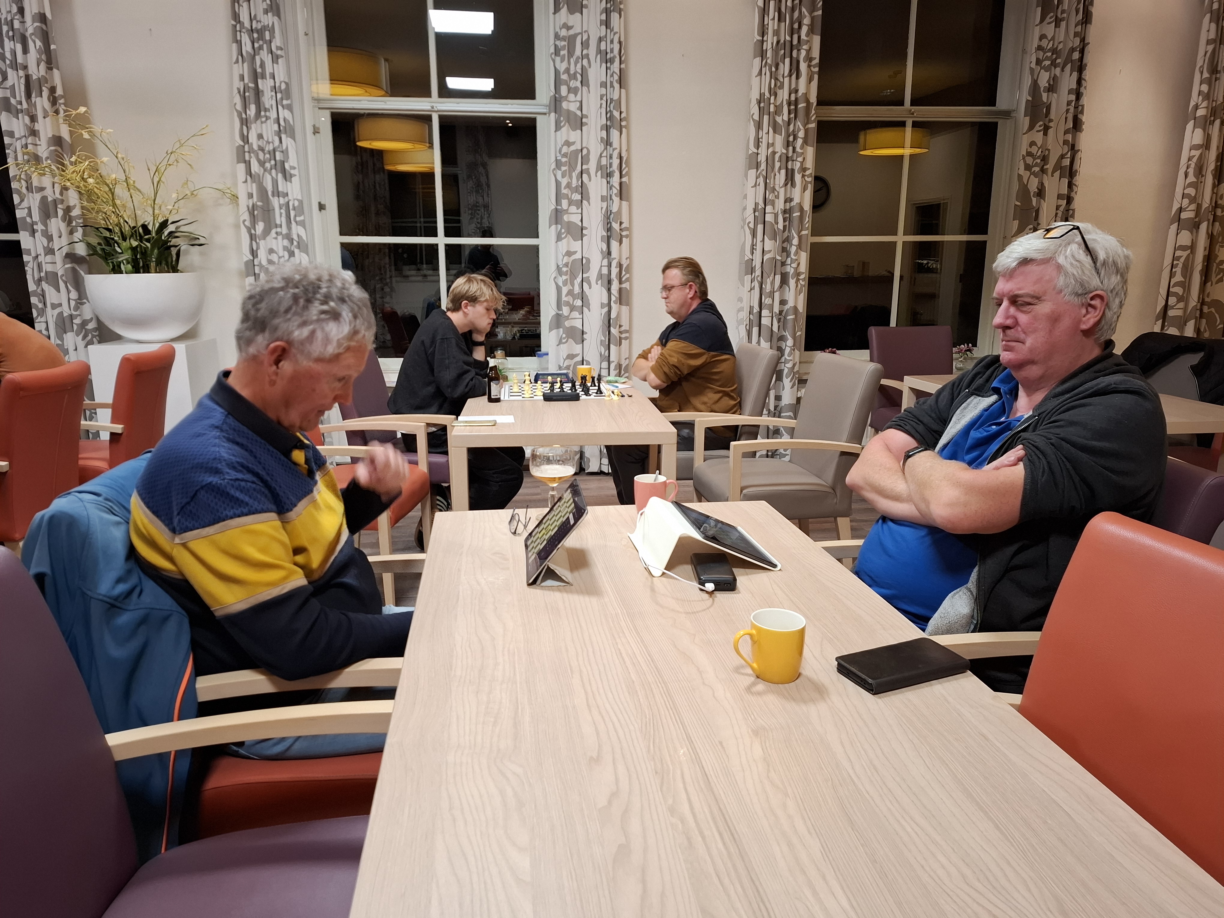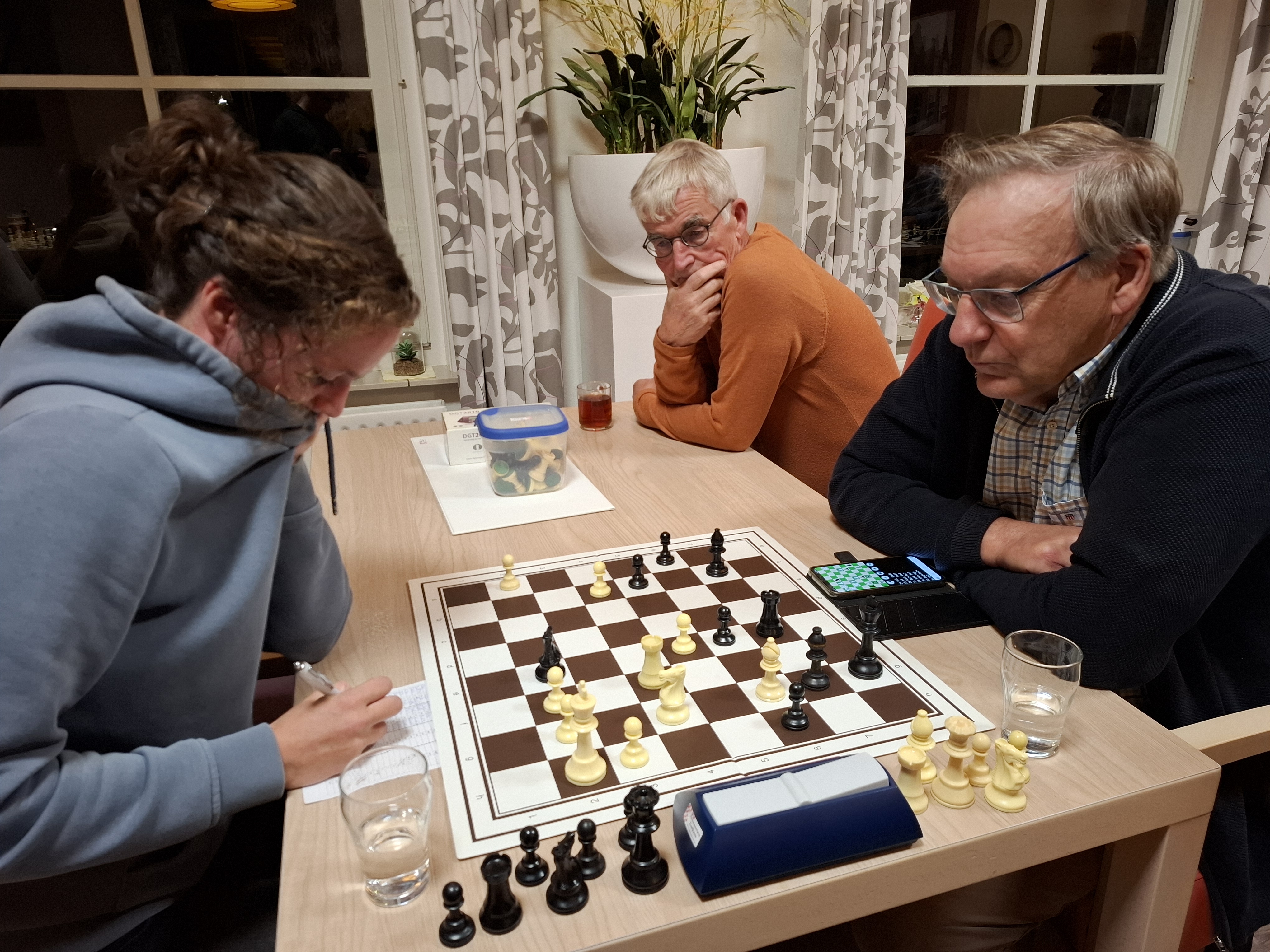 Op het moment dat uw verslaggever langs liep was het verschil met een dame tegen een toren en twee pionnen al gemaakt.