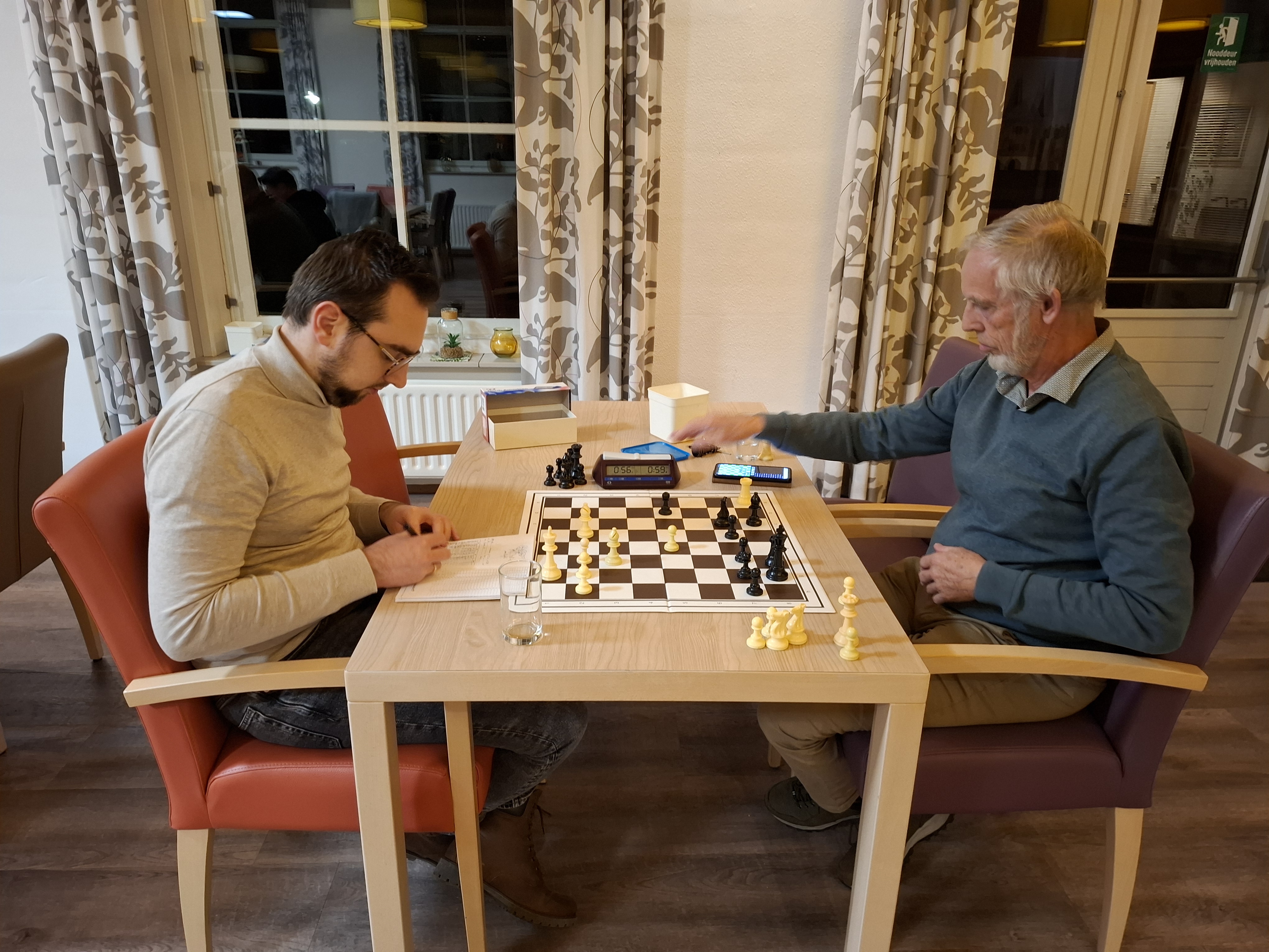 Maar binnen dat tijdsbestek speelden beiden zeker niet foutloos, en dat maakte de partij voor de neutrale kijker interessant om te volgen. Beiden speelden ook zeker niet op remise, maar de vele foutjes aan beide kanten zorgden er misschien wel voor dat er niet meer in zat.