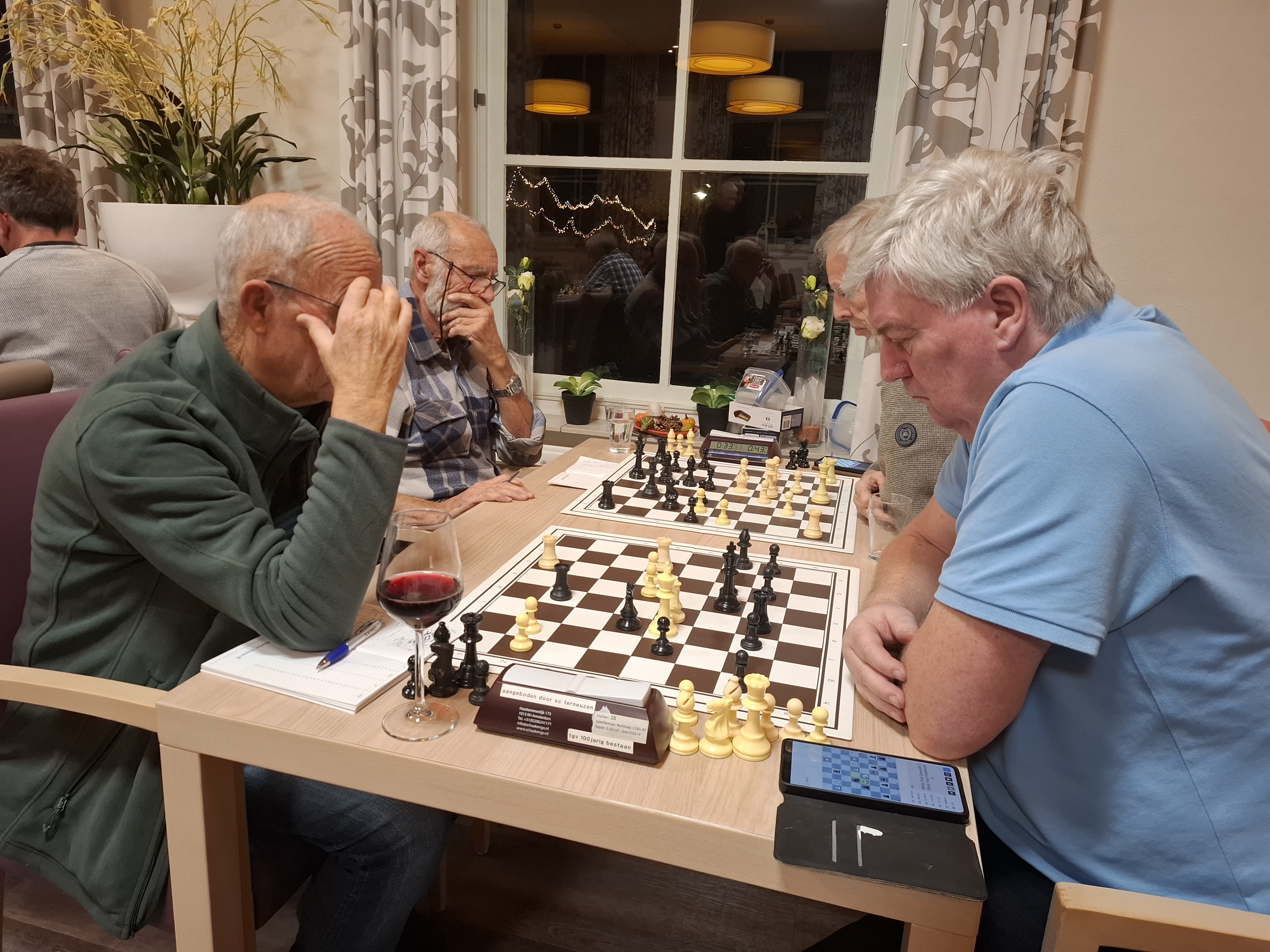 De Vrieze trof deze maandag Vieveen met zwart tegenover zich. Deze liet een flinke dreiging in het centrum toe waardoor hij verplicht paarden moest gaan ruilen. Later raakte hij een stuk achter tegen twee pionnen. Hij verdedigde kranig en de Vrieze had er een stevige kluif aan, maar wist uiteindelijk met een dreigende promotie van de a-pion de partij na een blunder van Vieveen winnend af te sluiten. Beiden waren het erover eens dat ze beiden sterke posities hadden gehad met kansen voor beiden. De analyse moet uit laten komen waar het fout ging, want deze heren hadden na de partij eigenlijk geen idee waar de foute zetten zaten.