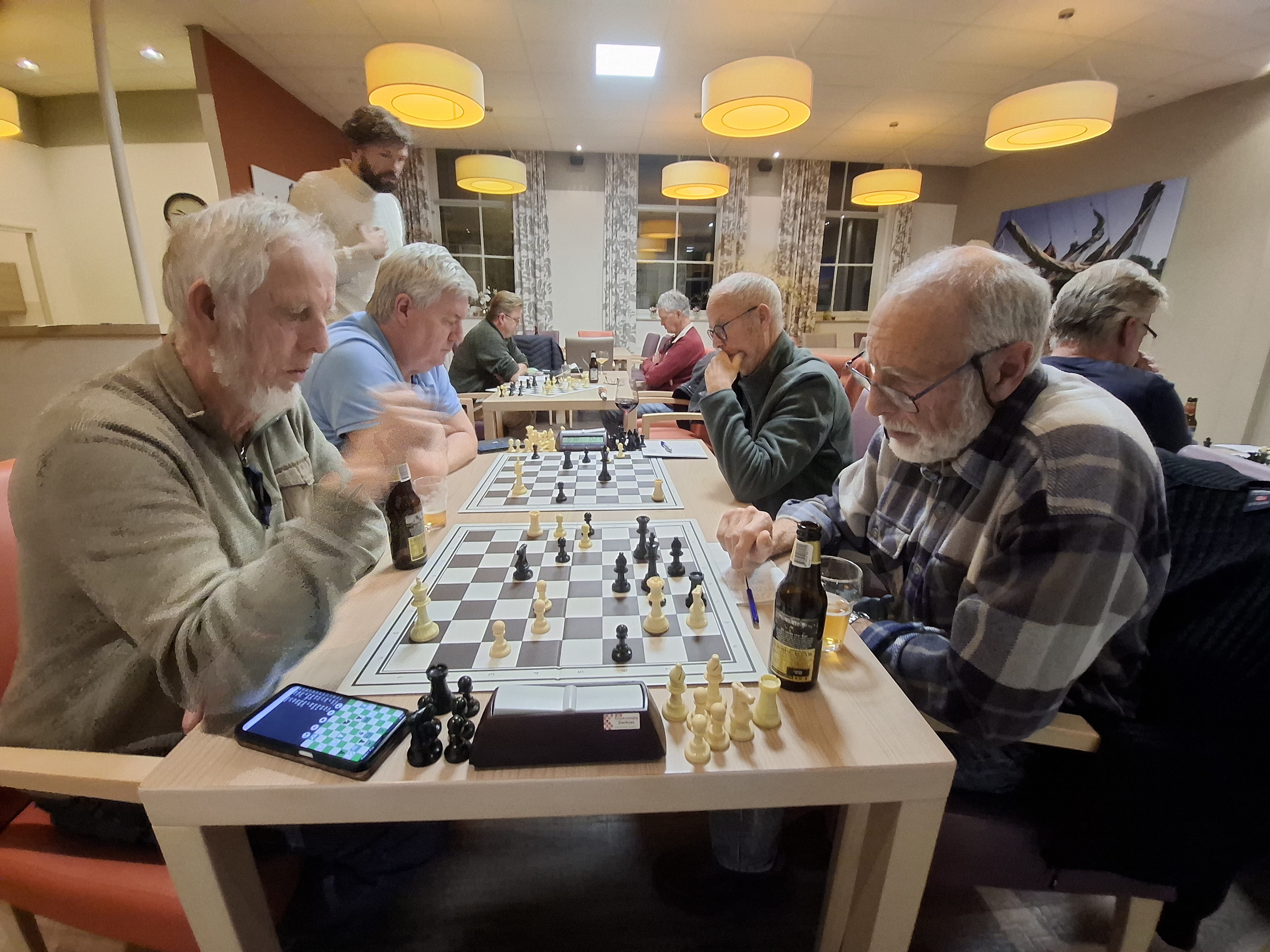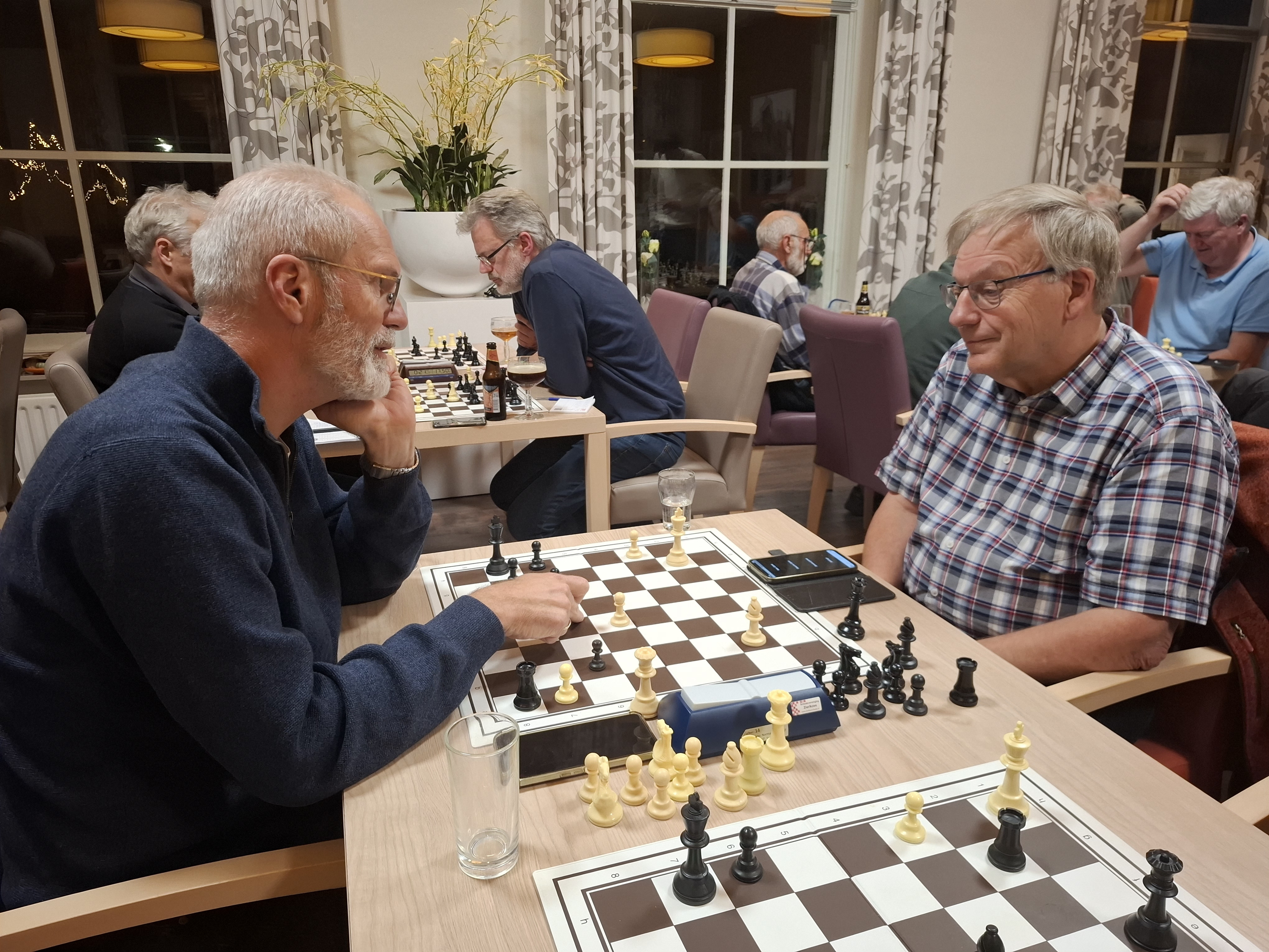 Twee keer eerder speelden ze in de interne competitie tegen elkaar, en twee keer wist Van der Westen te winnen, waarbij zeker de ontmoeting van vorig seizoen voor De Vrieze een zure was, toen Van der Westen beide vijandelijke lopers aan banden wist te leggen. Om zo’n scenario te voorkomen wist De Vrieze dat het cruciaal zou zijn om open lijnen voor zijn lopers te behouden. Van der Westen koos voor het Damegambiet. De Vrieze nam het niet aan, was niet te gretig en bouwde gewoon rustig op. Van der Westen was juist erg gretig en speelde al zijn pionnen op de damevleugel op, en leek zich een beetje te vergalopperen. De Vrieze sloeg vervolgens toch op c4 en bood paardenruil aan, wat Van der Westen deed en De Vrieze meteen zijn dubbelpion kon verhelpen en na negen zetten al een vrije pion had. Om te zeggen dat zwart toen al gewonnen stond gaat wat ver, maar dat het er goed uit zag was zeker het geval. En het zat De Vrieze wel heel erg mee, toen Van der Westen ook zijn tweede paard afruilde. En open lijnen voor zijn lopers waren ook beschikbaar, nu was het zaak het ook te verzilveren. Dat lukte al vrij snel. Van der Westen had nu ook zijn koningspionnen op gespeeld, gaf vervolgens een loper weg en deed daar via een laatste poging het tij nog te keren een toren bij. De Vrieze brak met een loperoffer de boel open, won die loper ook weer terug en zette Van der Westen mat op de achtendertigste zet.