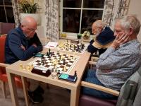 Het was de derde keer dit seizoen dat Frans Nijman (links) en Fokko Baakman (rechts) de degens kruisten. Maar deze derde keer was het voor Nijman dan eindelijk raak: de volle buit tegen Baakman. Dat was ook bijna wel te verwachten want Nijman heeft een opmerkelijke statistiek: winst en verlies wisselt hij iedere week af. En remise speelt hij nauwelijks. Slechts twee van zijn zestien gespeelde partijen eindigden zo. En dat was uitgerekend tegen Baakman.