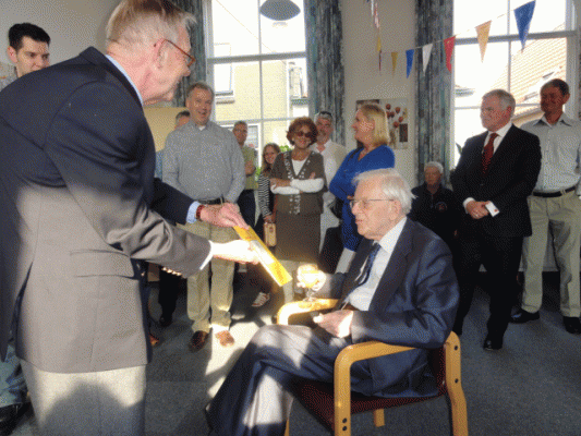Uitreiking `1e examplaar eeuwfeestboek aan J Krijger (1).JPG