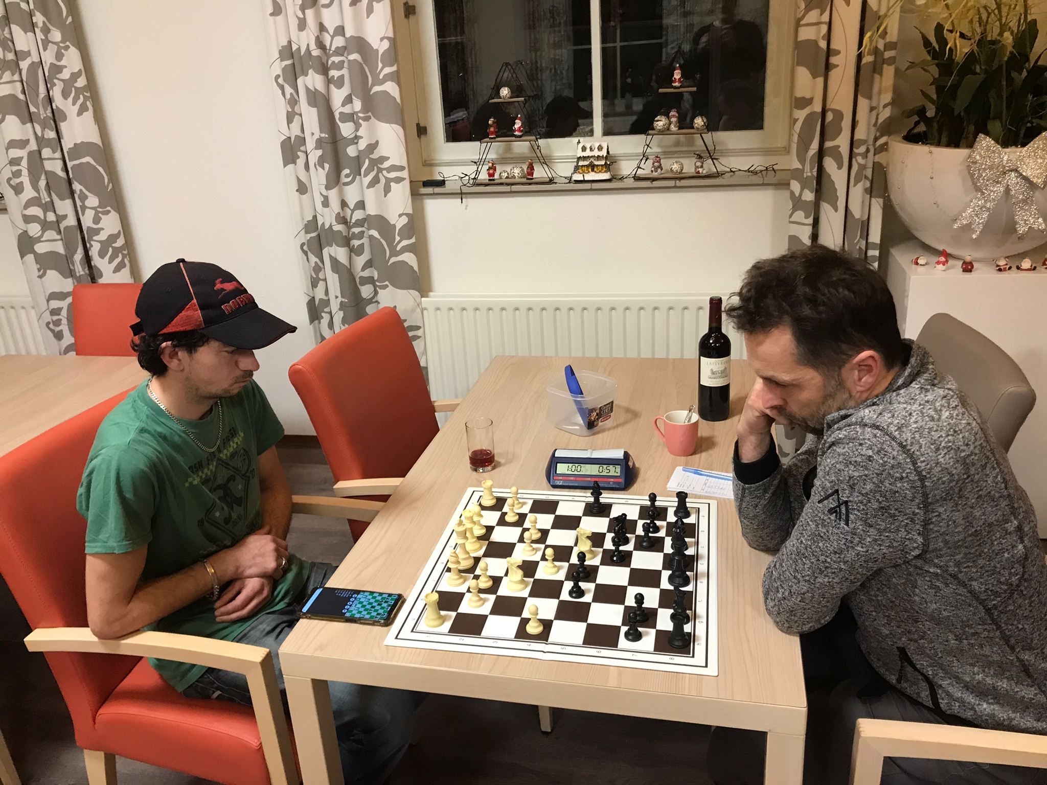 Een voorzichtige opening van beide schakers. De stukken van Van den Nieuwendijk kwamen beter te staan. Zodanig beter dat hij met zijn paard een gedekte pion kon slaan waarbij De Vrieze zijn pionnen structuur verloor en bij de volgende zet zijn loper. Daarna rolde Van den Nieuwendijk nog twee pionnen op waar na een verplichte dame afruil De Vrieze opgaf
