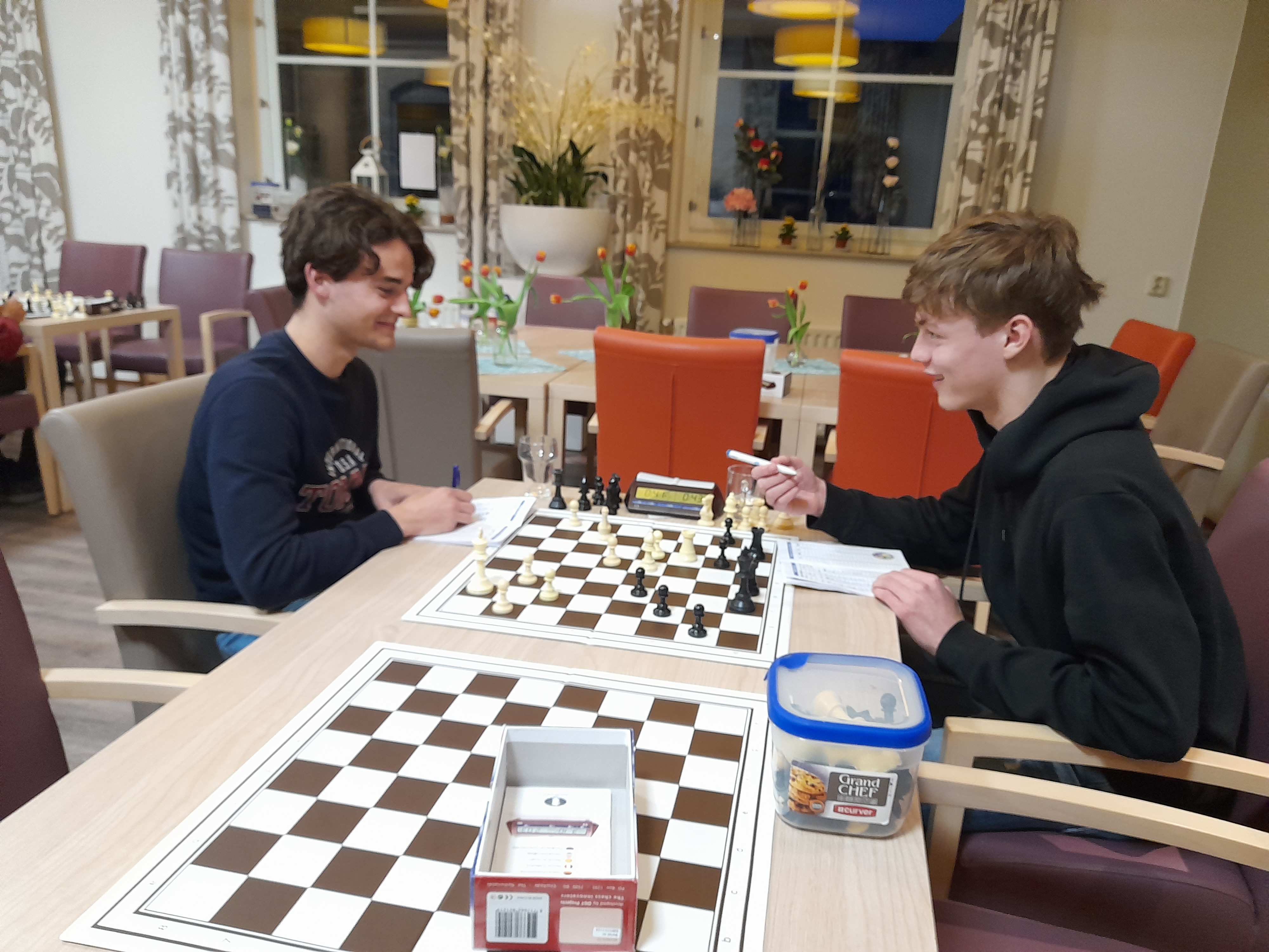 Na een 4-0 tussenstand leek een gelijkspel ver weg gezien de stand op de overige vier borden. Sjaak Spiegels had op het 5de bord een gezonde stelling gekregen tegen een defensief spelende tegenstander. Hij kon de winnende voortzetting echter niet vinden en accepteerde het remise-aanbod. Op het hoogste bord leek er bij Rick van der Pluijm na een Siciliaanse verdediging niets aan de hand totdat hij een onjuist stukoffer deed. Hij kreeg hier wel drie pionnen voor terug maar toen hij er nog een tweede stuk tegenaan gooide was het gedaan nadat hij het beslissende mat niet kon geven.