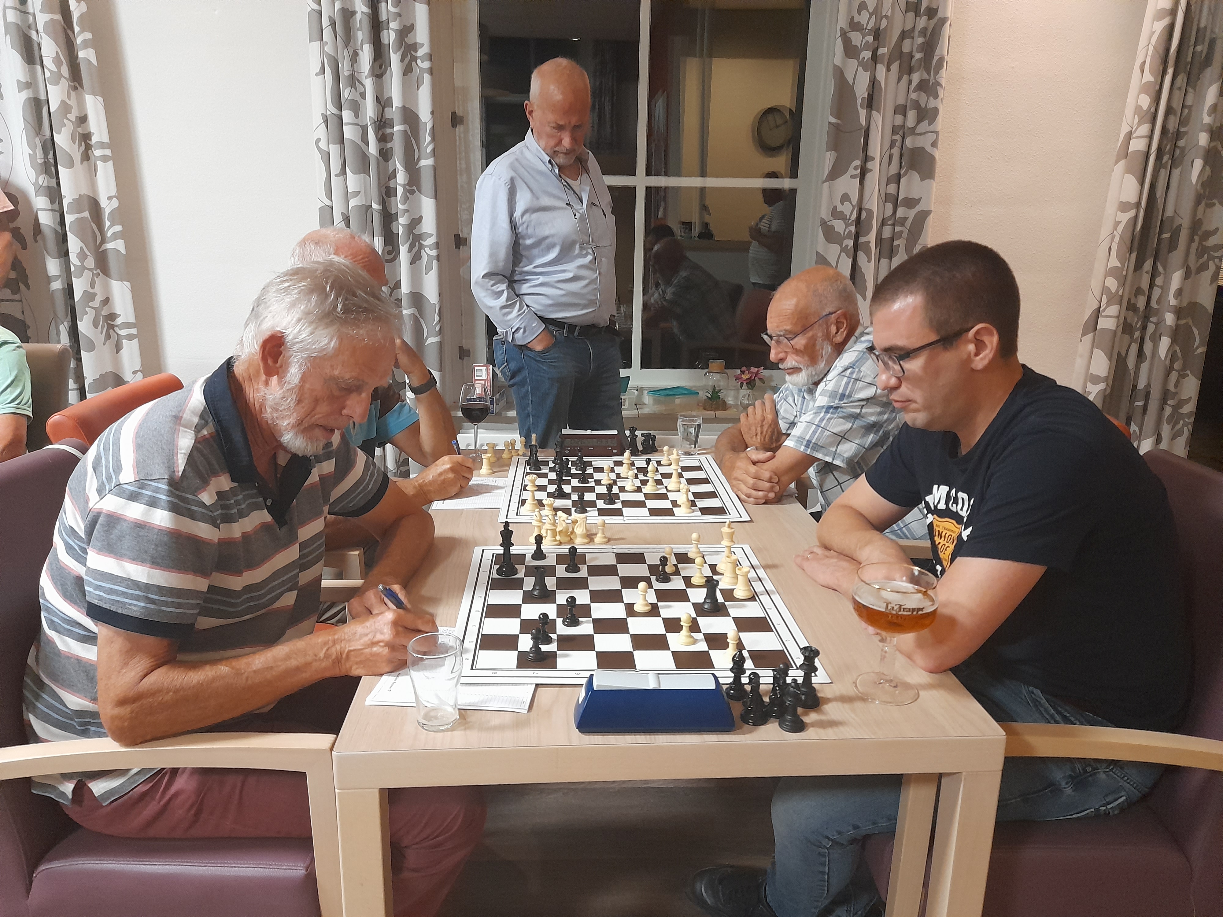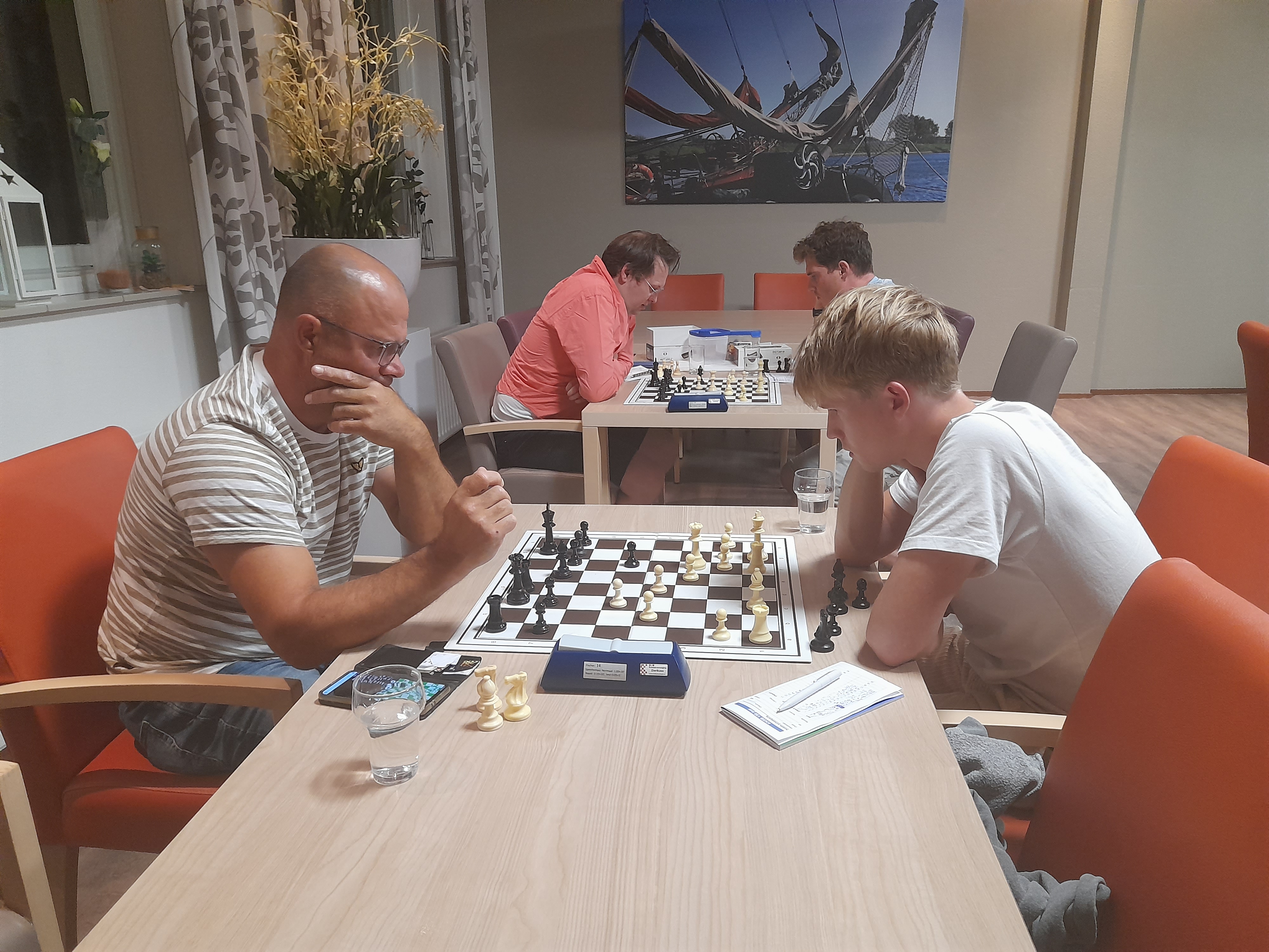 Beide schakers zijn elkaar in vier seizoenen niet zo veel tegen gekomen. Net als twee jaar geleden bij de start van de competitie moesten Donkers en Blinde ook de eerste partij tegen elkaar spelen. Toen verloor Blinde vrij snel. Maar ondanks dat zijn ze, toch zeker op basis van het laatste resultaat, best wel aan elkaar gewaagd.