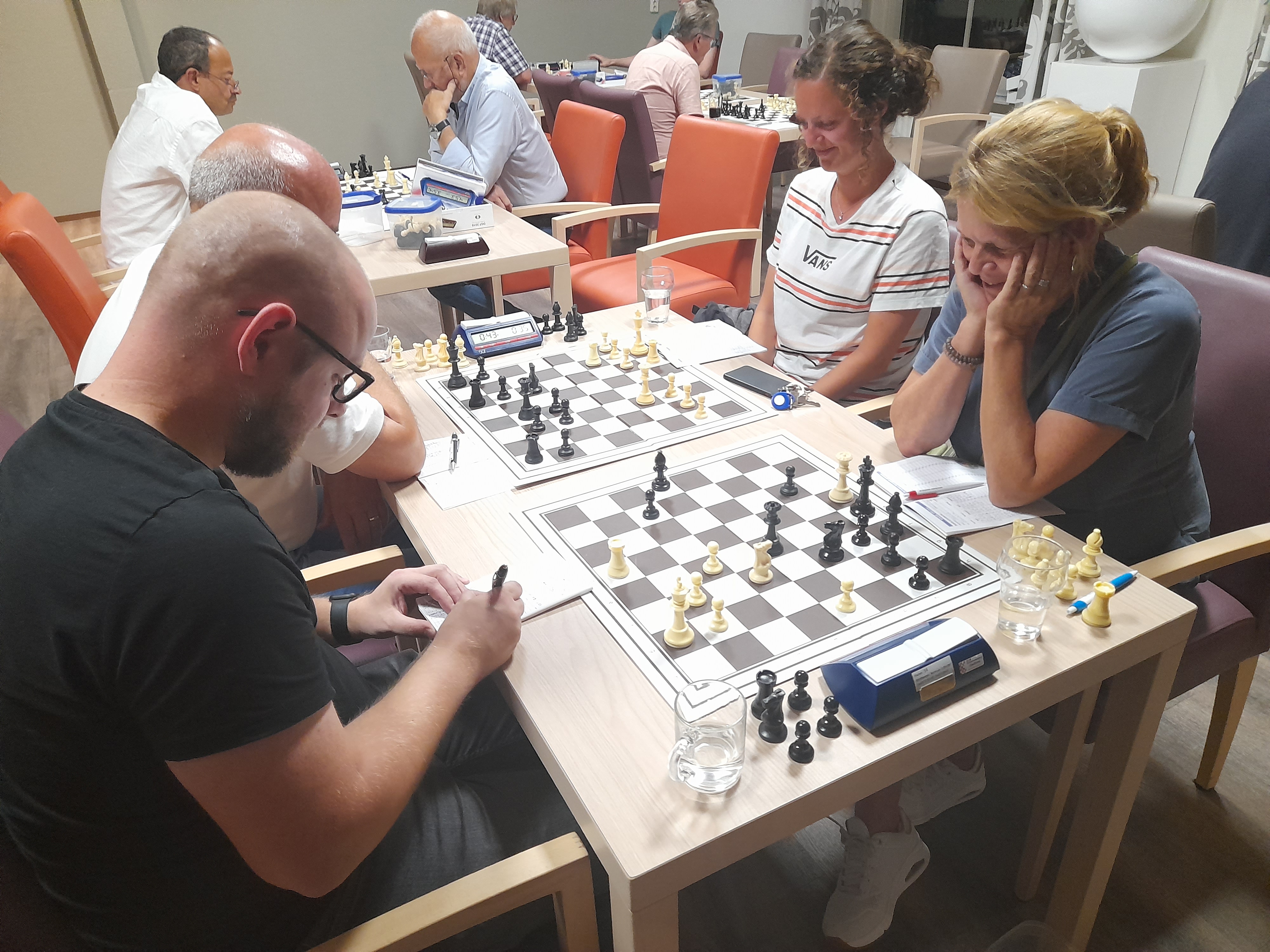 De met wit spelende De Vrieze begon voortvarend aan de partij met Baakman, die het vorige seizoen nog afsloot met een hele knappe remise op Van Rooten. Met dat in het achterhoofd koos De Vrieze voor een verkeerde voortzetting en hielp Baakman zo in het zadel.