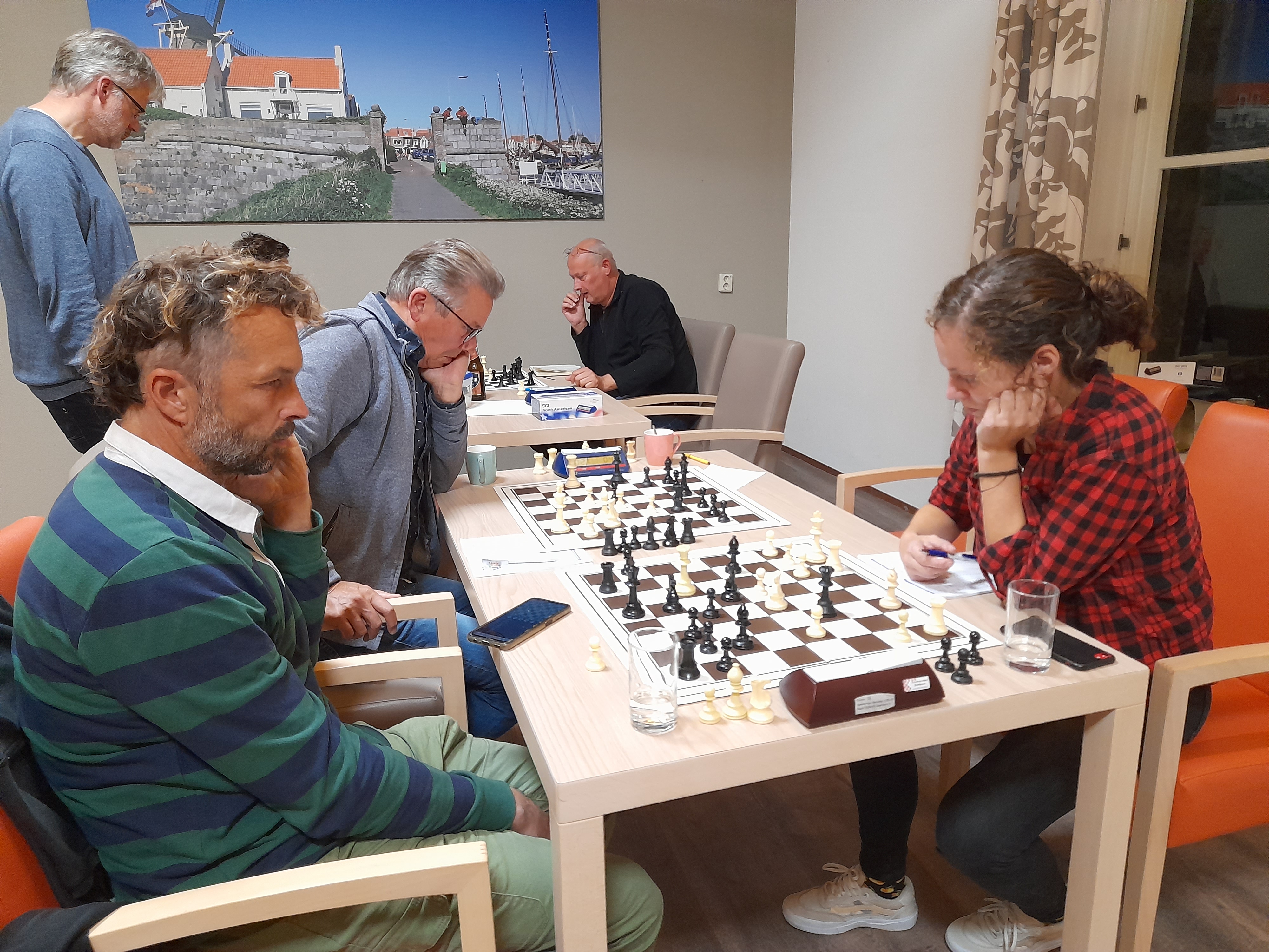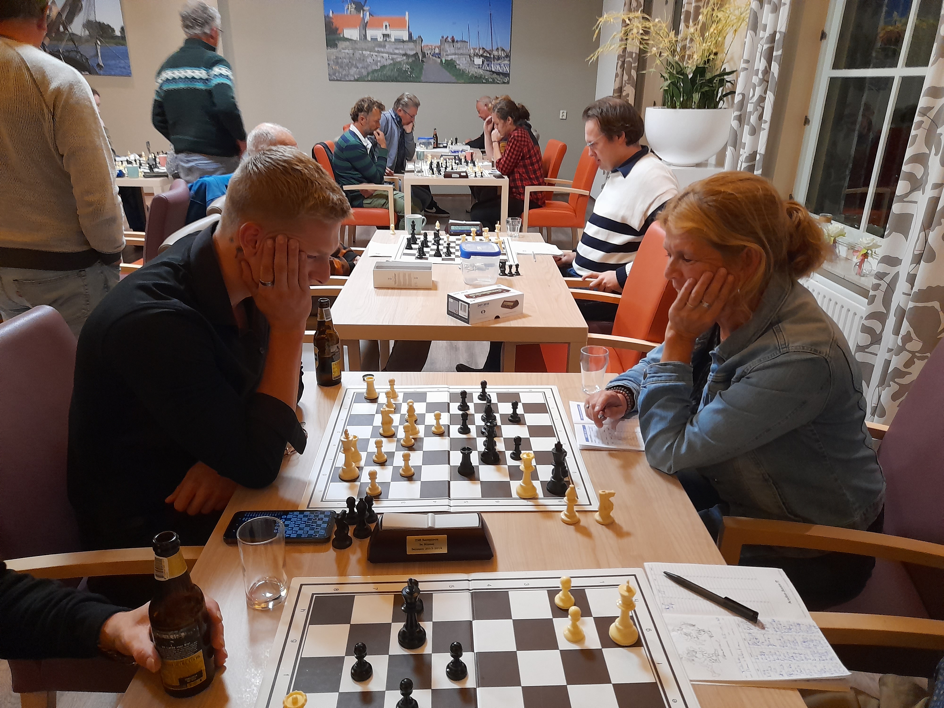 In speelronde zes van Schaakvereniging Zierikee hadden de schakers met de zwarte kleur een hele zware avond. Maar liefst negen van de twaalf partijen eindigden in het voordeel van wit. Koploper Sjaak Spiegels wist met zwart tegen concurrent Martin Krijger een remise uit het vuur te slepen. Kees van den Nieuwendijk en Erik de Vrieze waren de enigen die met zwart wisten te winnen, voor laatstgenoemde betekende dit een reuzensprong naar plaats vier. Liefhebbers van paardvorken kwamen ook weer aan hun trekken. Deed De Vrieze het slechts om een pion te veroveren, Laura Melkert deed niet aan half werk en veroverde er de dame van Marnix den Boer mee, en daarmee ook, verrassend, de partij.
