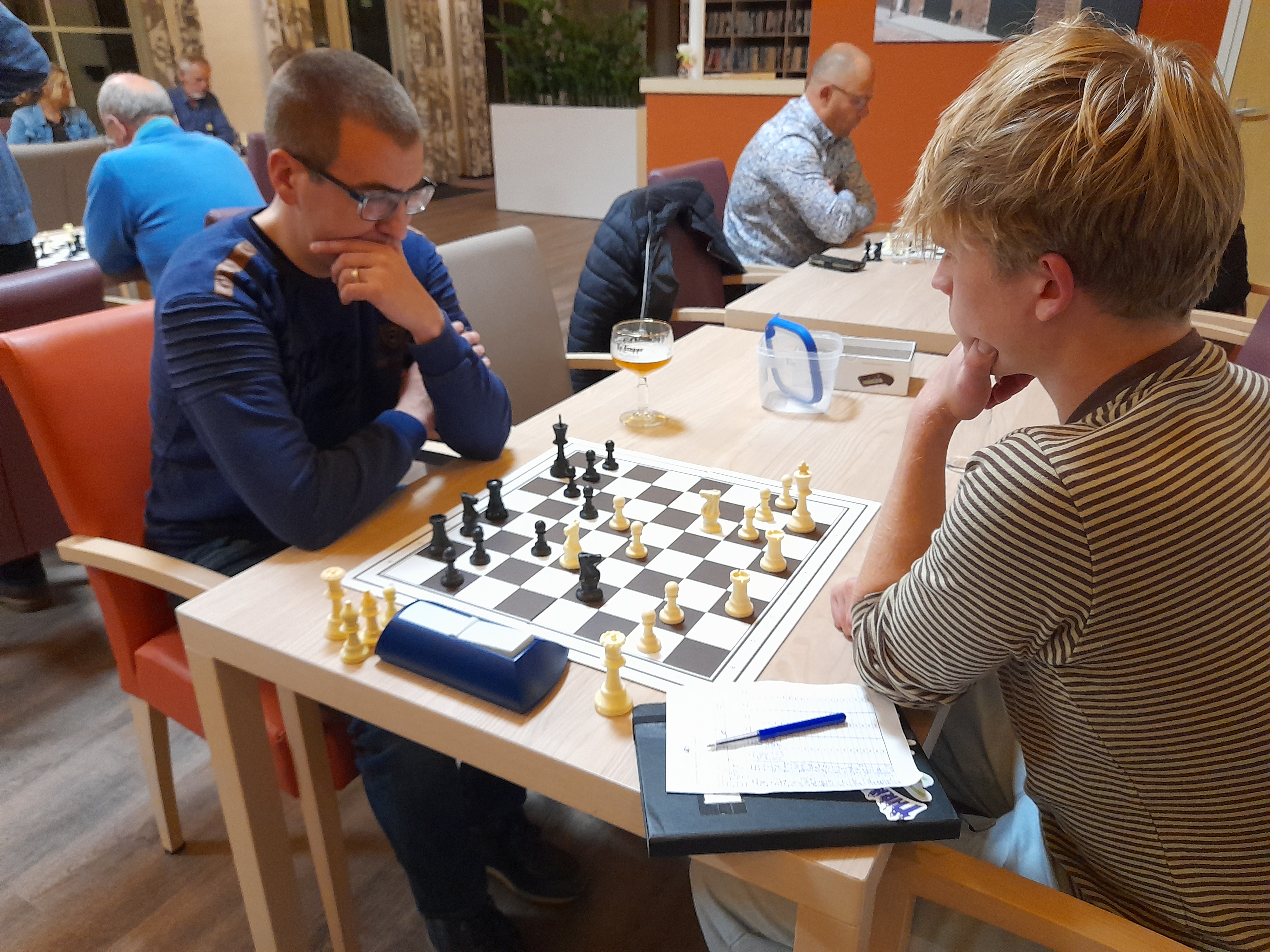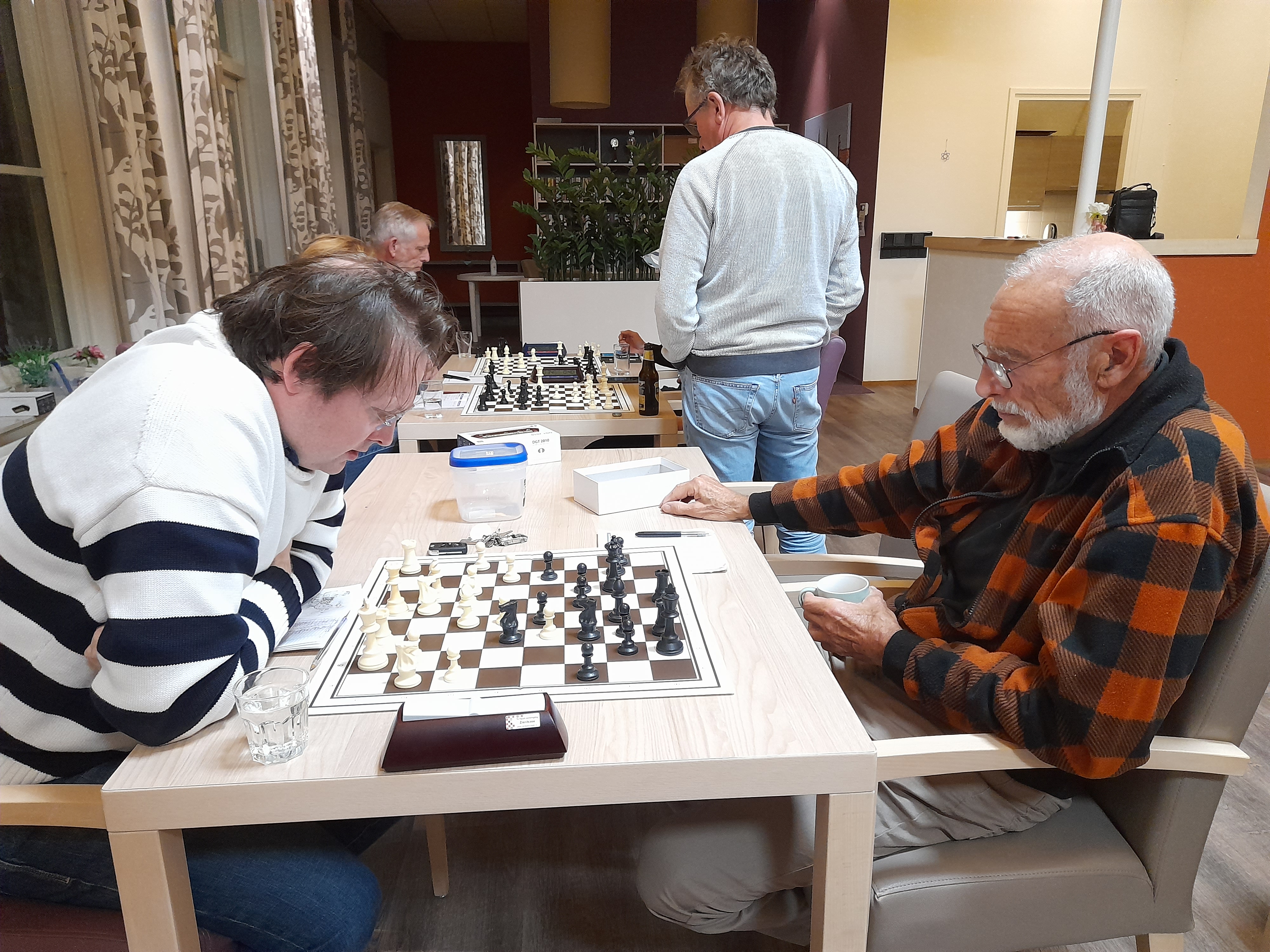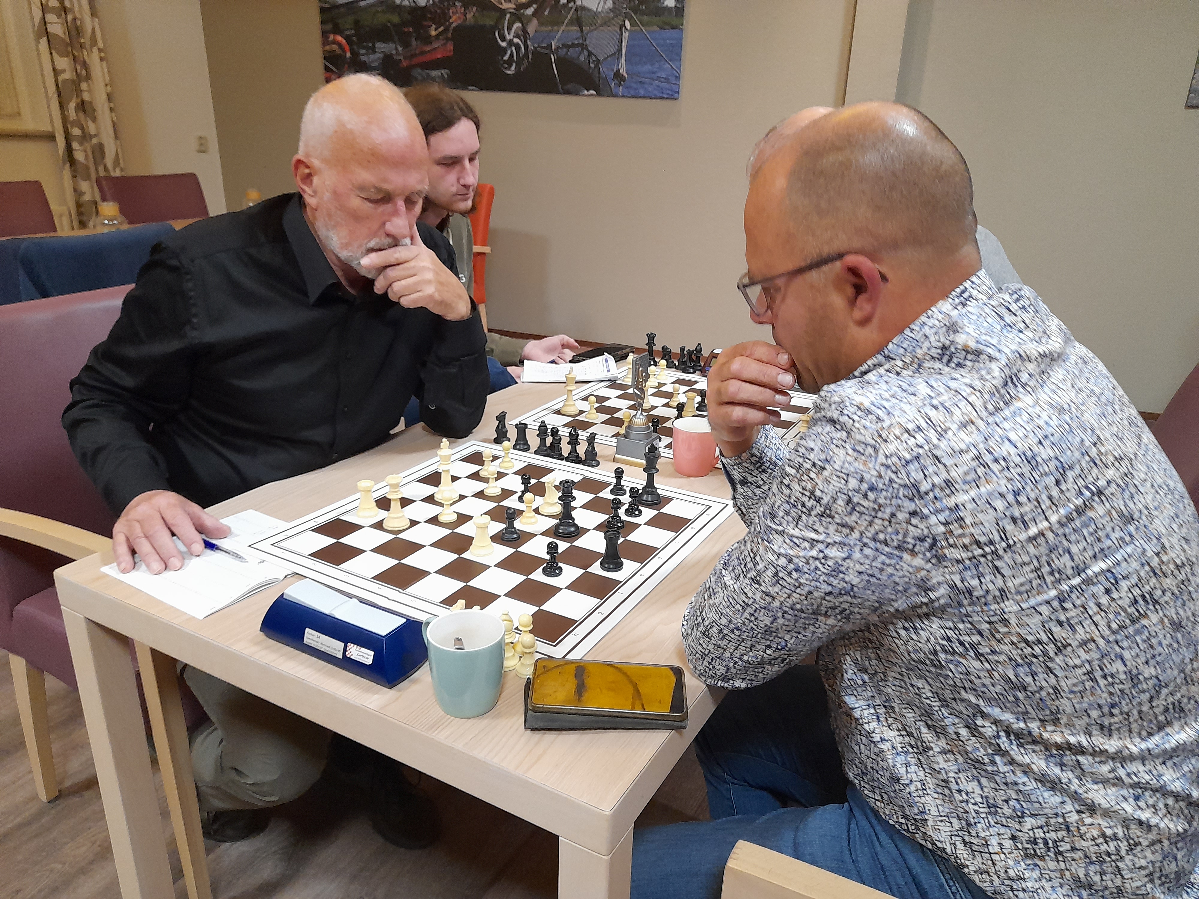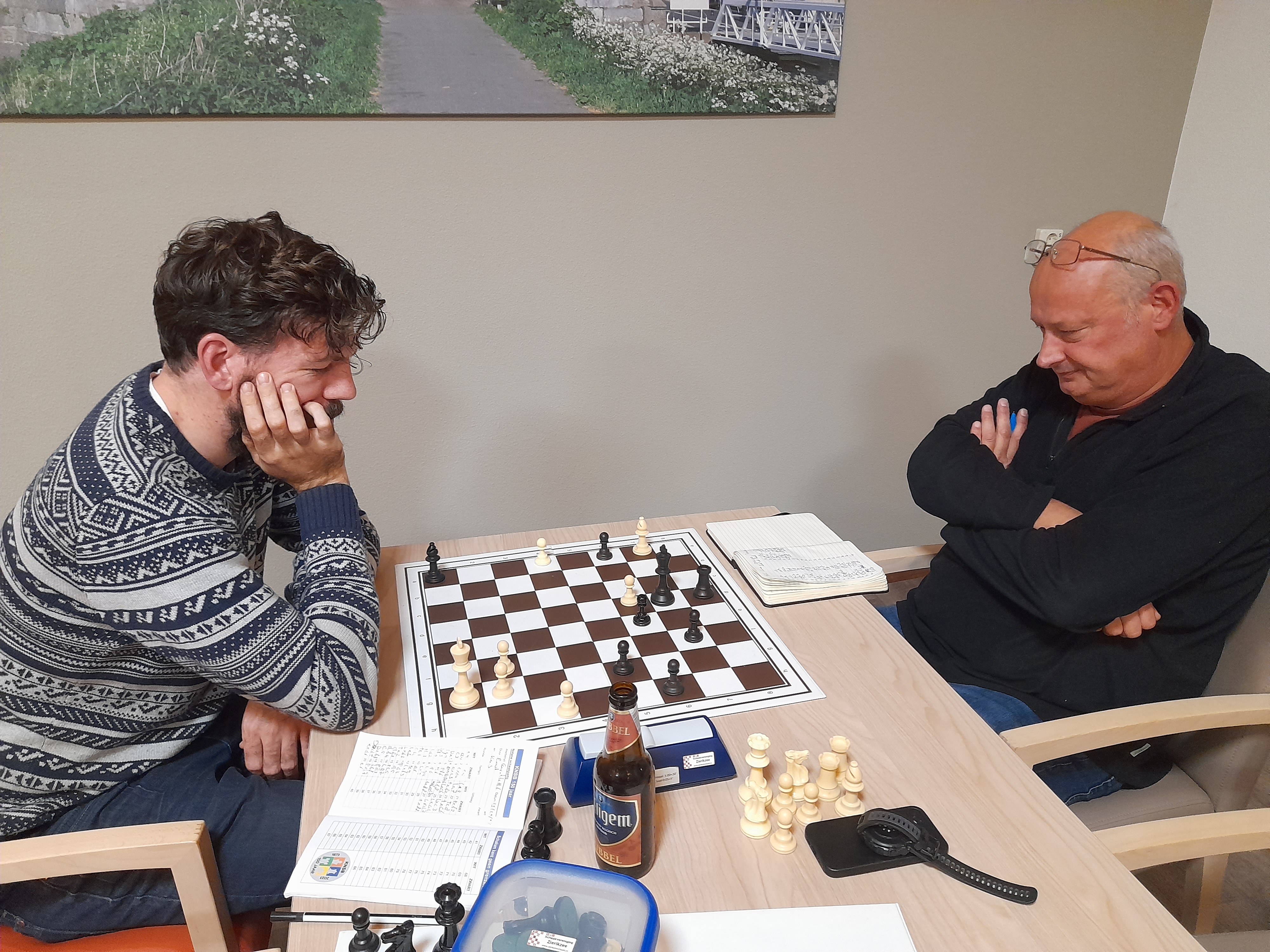 Lang ging het eigenlijk gelijk op, met Pronk die de overhand had. De Vrieze opereerde uit een gesloten verdediging, maar deze was zo gesloten dat manoeuvreren een lastige opgave bleek. En omdat de lopers al vlot werden afgeruild ontstond er een interessant spel met ieder twee paarden.