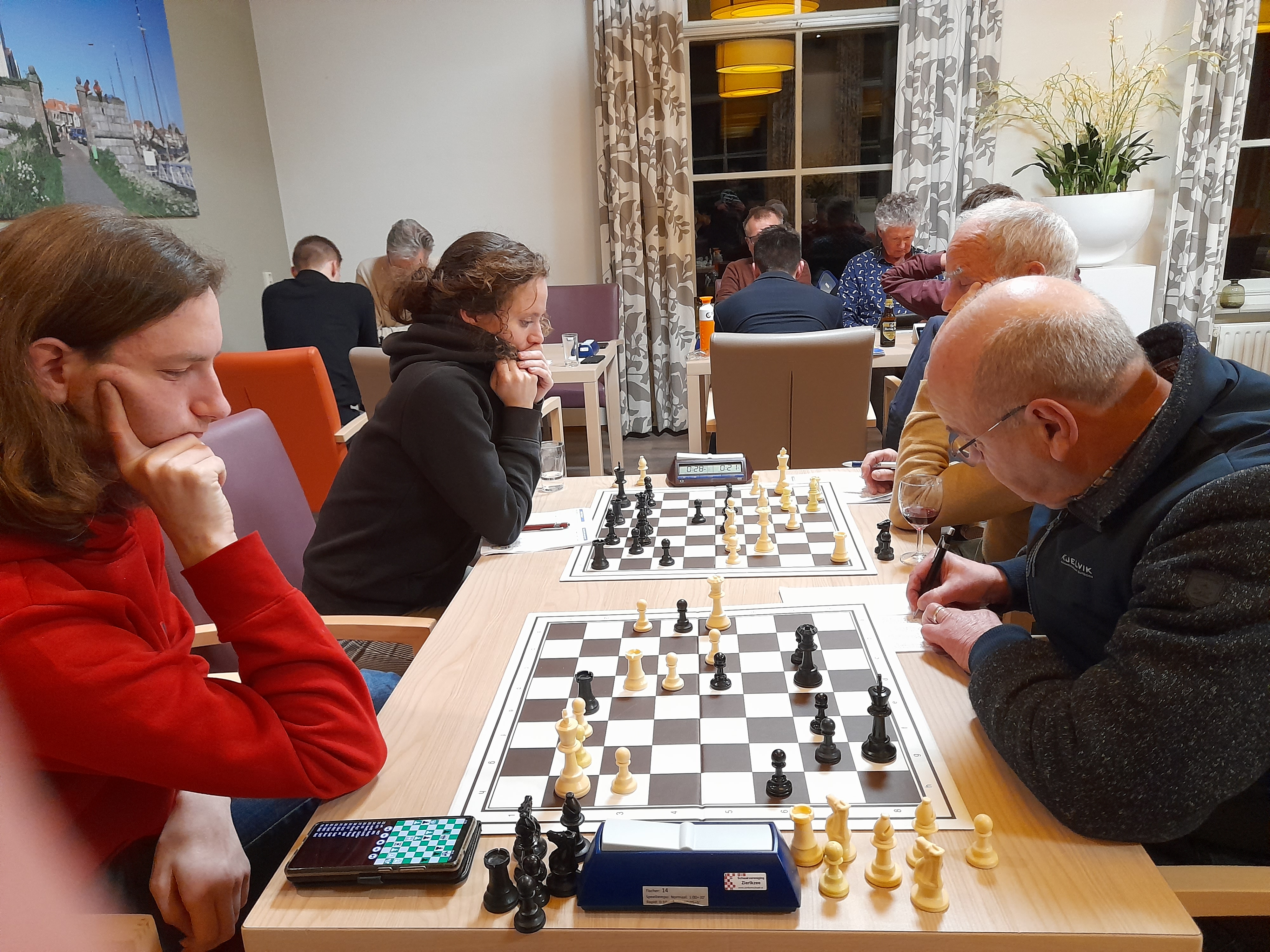 Het bekerviertal ontving het jeugdige team van De Zwarte Dame uit Kruiningen. Het werd geen gemakkelijke avond. De opstelling van Zierikzee was in volgorde van leeftijd, de jongste, Sjaak Spiegels, voorop. Hij verloor waarna Kees van den Nieuwendijk en Aloys Kersten aan de borden twee en drie remiseerden. Martin Krijger won aan bord vier, wat een gelijke uitslag betekende.