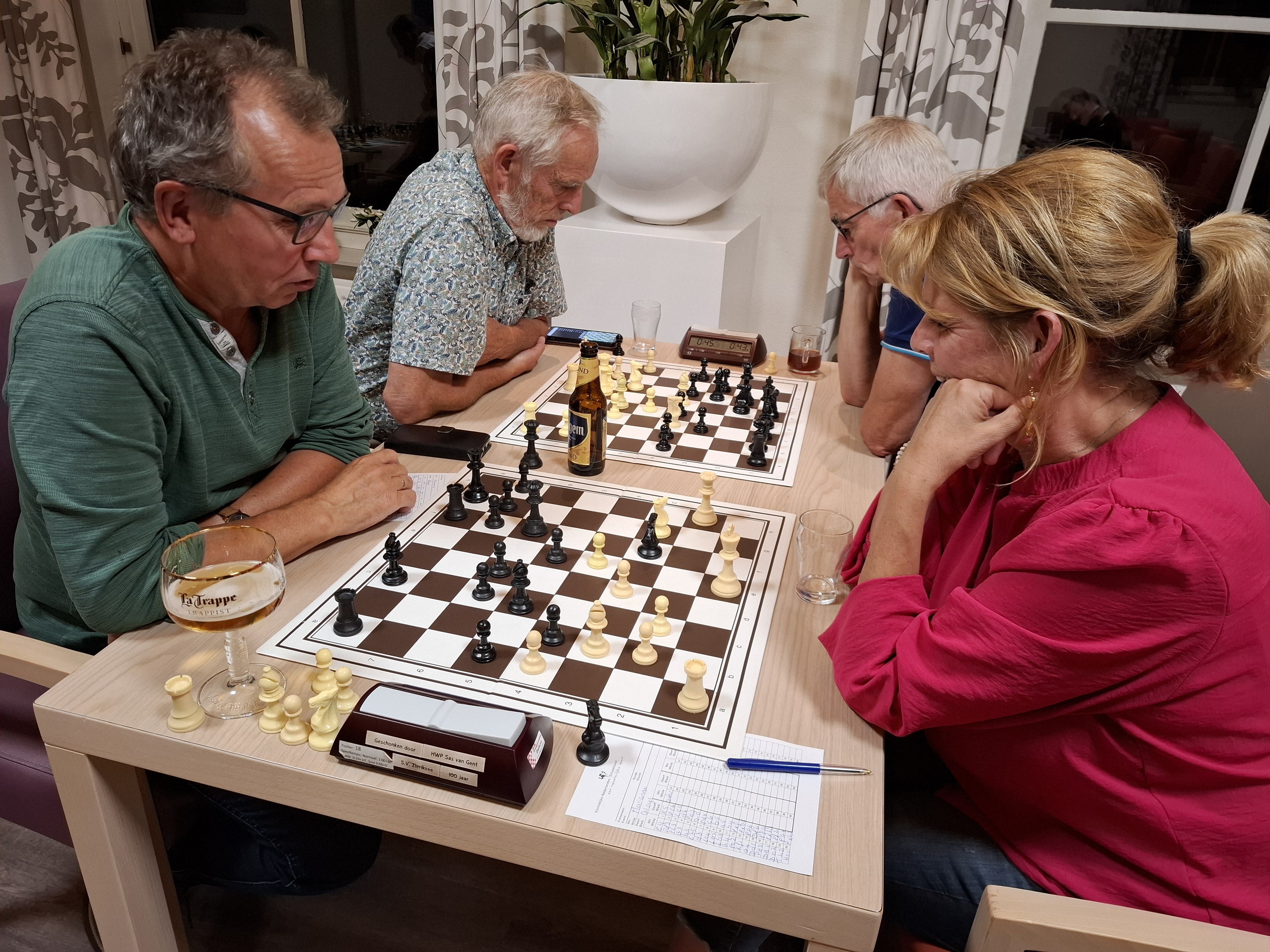 Nou, dat lukte De Vrieze na lang manoeuvreren. En verder, Krijger wilde wel breken maar kon het niet (want een slechte loper) en De Vrieze wilde wel breken maar durfde niet (ondanks een sterke loper). Zo eindigde de partij zoals hij begon: De Vrieze accepteerde Krijger’s remisevoorstel.