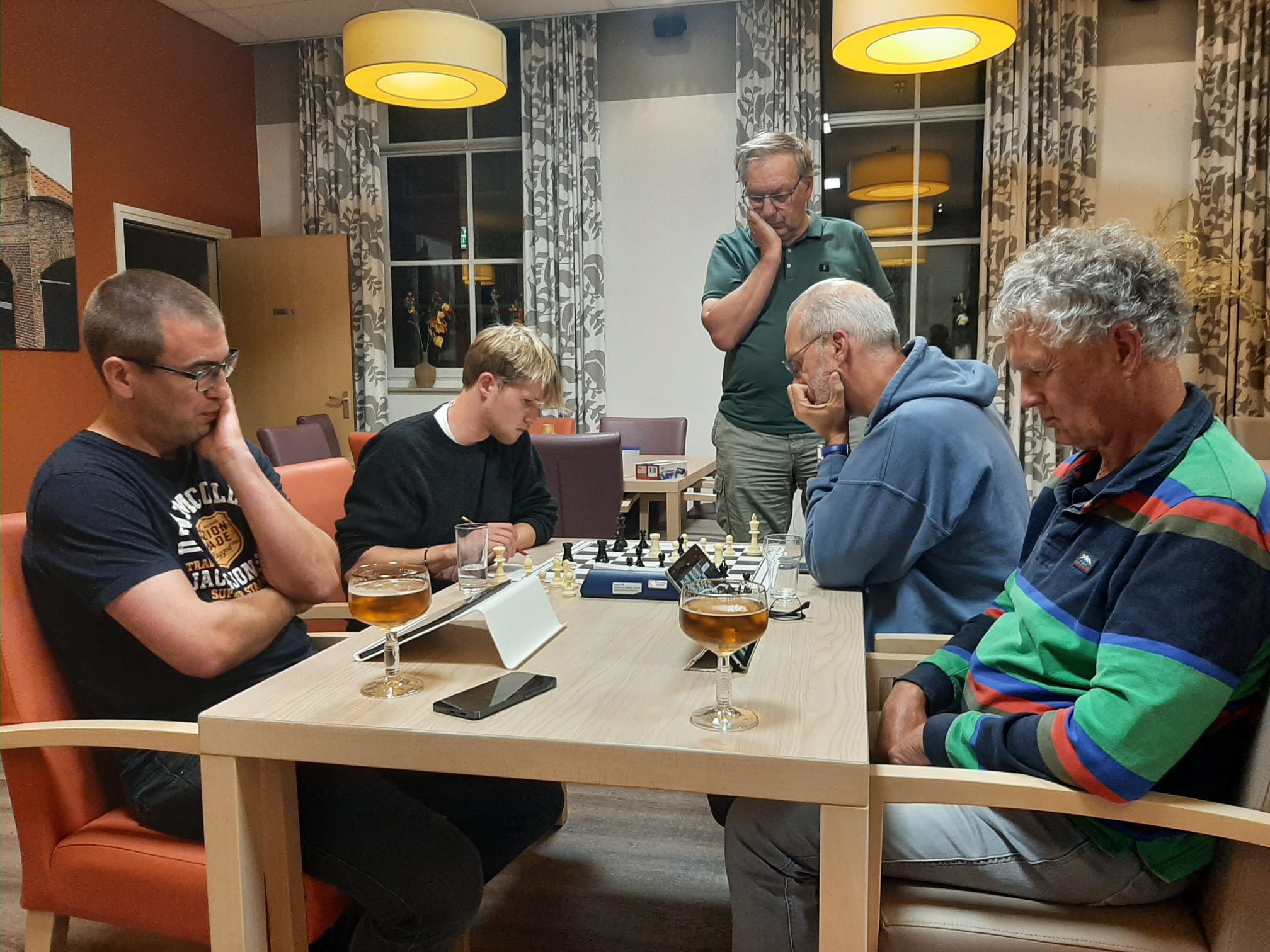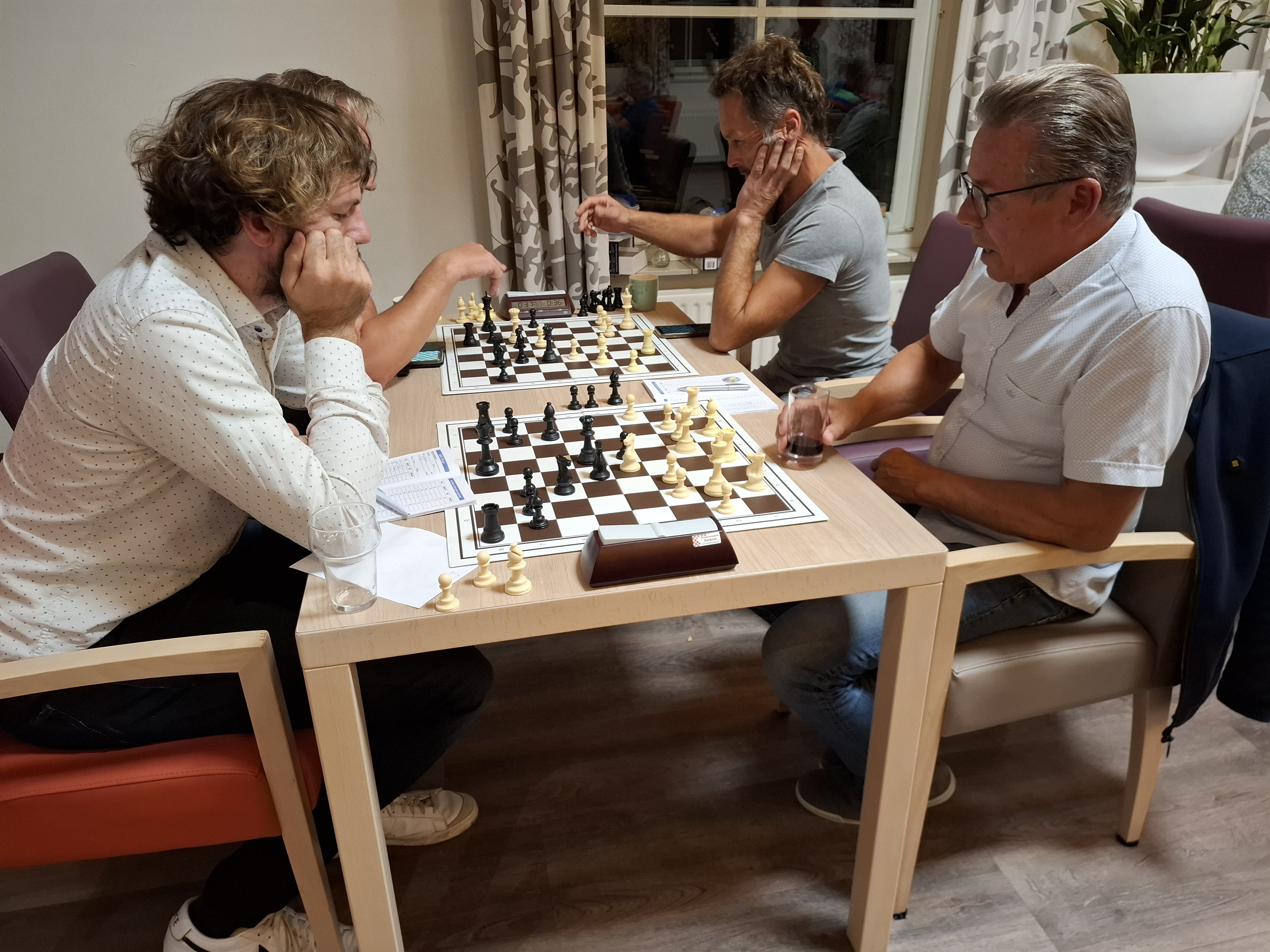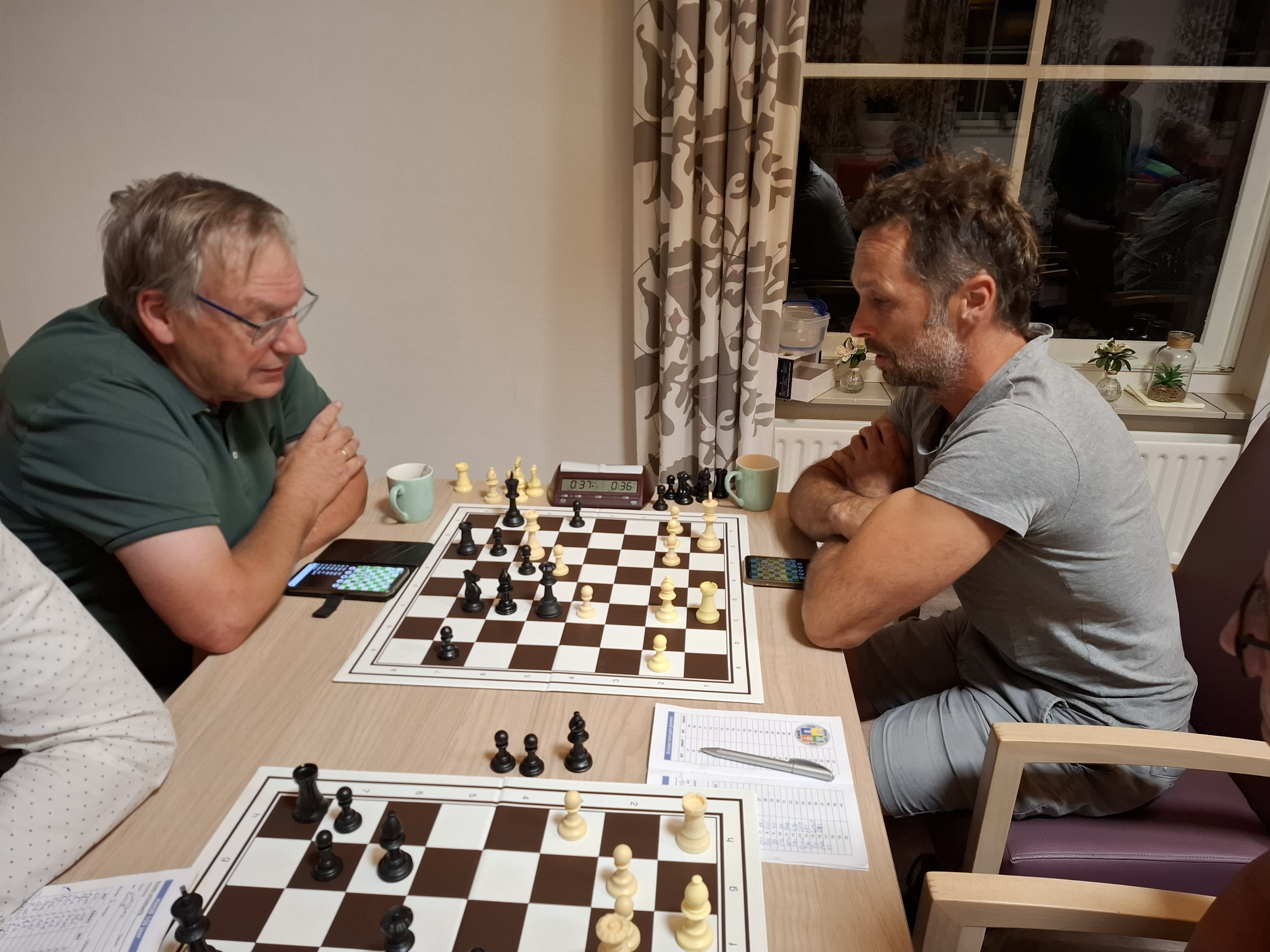 Van den Bos speelde met zwart defensief en deed dat goed. Baakman had moeite om een opening in de defensie te vinden. Na een lange rokade probeerde Baakman met z’n dame en toren druk te zetten in het centrum maar zag geen kans om een opening te forceren.