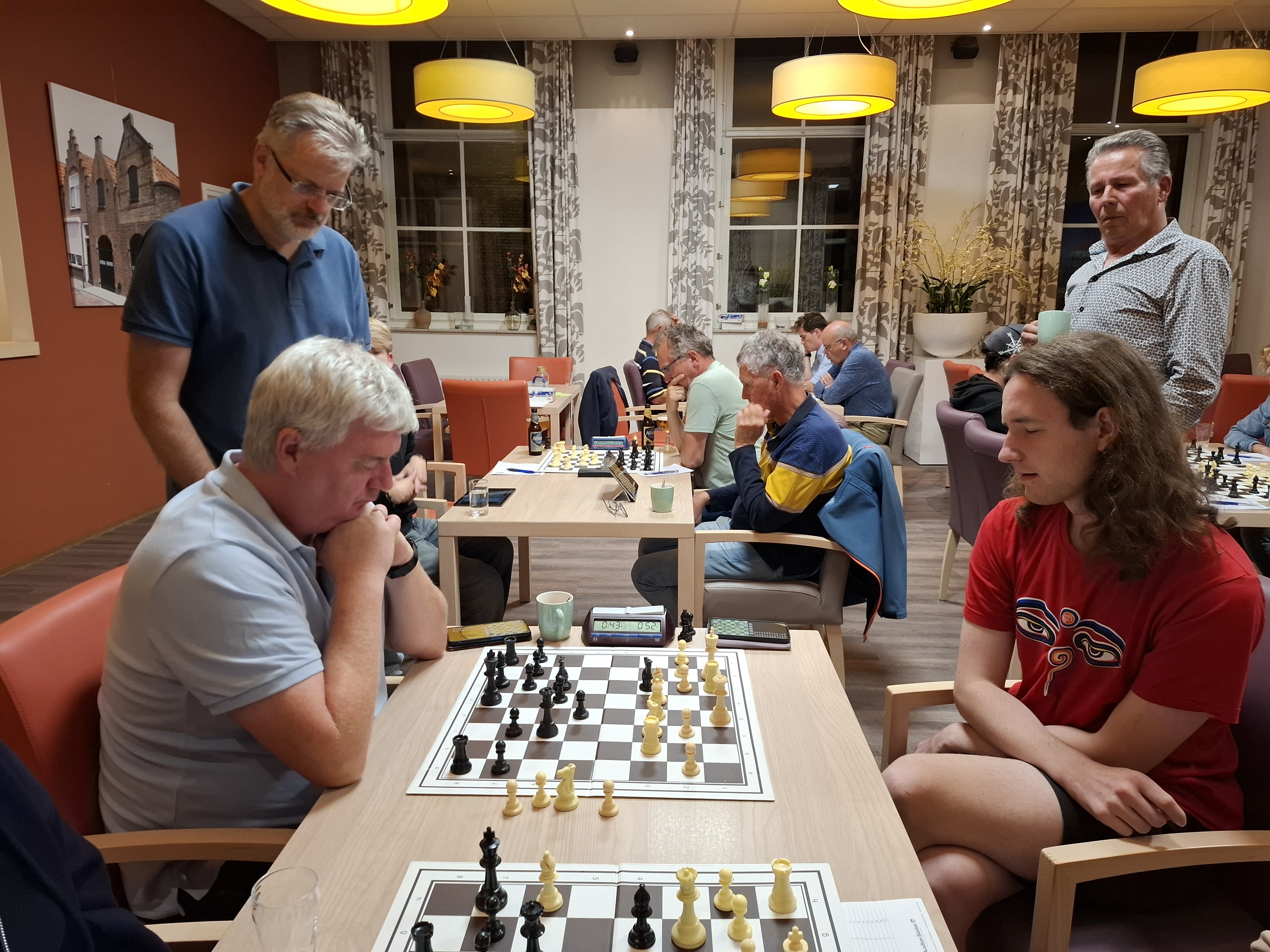 Na het kampioenschap van vorig seizoen mocht het Zierikzeese B-team het een niveau hoger gaan proberen. Enthousiast nam het viertal plaats achter de borden. Maar toch ook wel nieuwsgierig. Want wat konden we verwachten, en waar zouden we staan? Zou het B-team zich kunnen meten met deze op papier veel sterkere tegenstander? Nou, toen alle stofwolken waren opgetrokken stond er een ontnuchterende 0-4 op het scorebord. Maar was het ook allemaal zo kansloos? Nou dat nu ook weer niet. Op bord 1 speelde Peter de Vrieze tegen Marko Burger en had vrij weinig in te brengen (0-1). Niet lang daarna werd op het bord er naast de score verdubbeld. Ernst van de Beek leek tegen Leon Zweedijk wel mogelijkheden te hebben maar uiteindelijk werd ook dit een kansloze expeditie (0-2). De uitslagen verliepen ook precies volgens de bordvolgorde, want vervolgens kreeg Mark van Rooten door Eric Dek remise aangeboden. Van Rooten sloeg dit af waarna Dek de formatie uit Kruiningen aan de winst hielp (0-3).