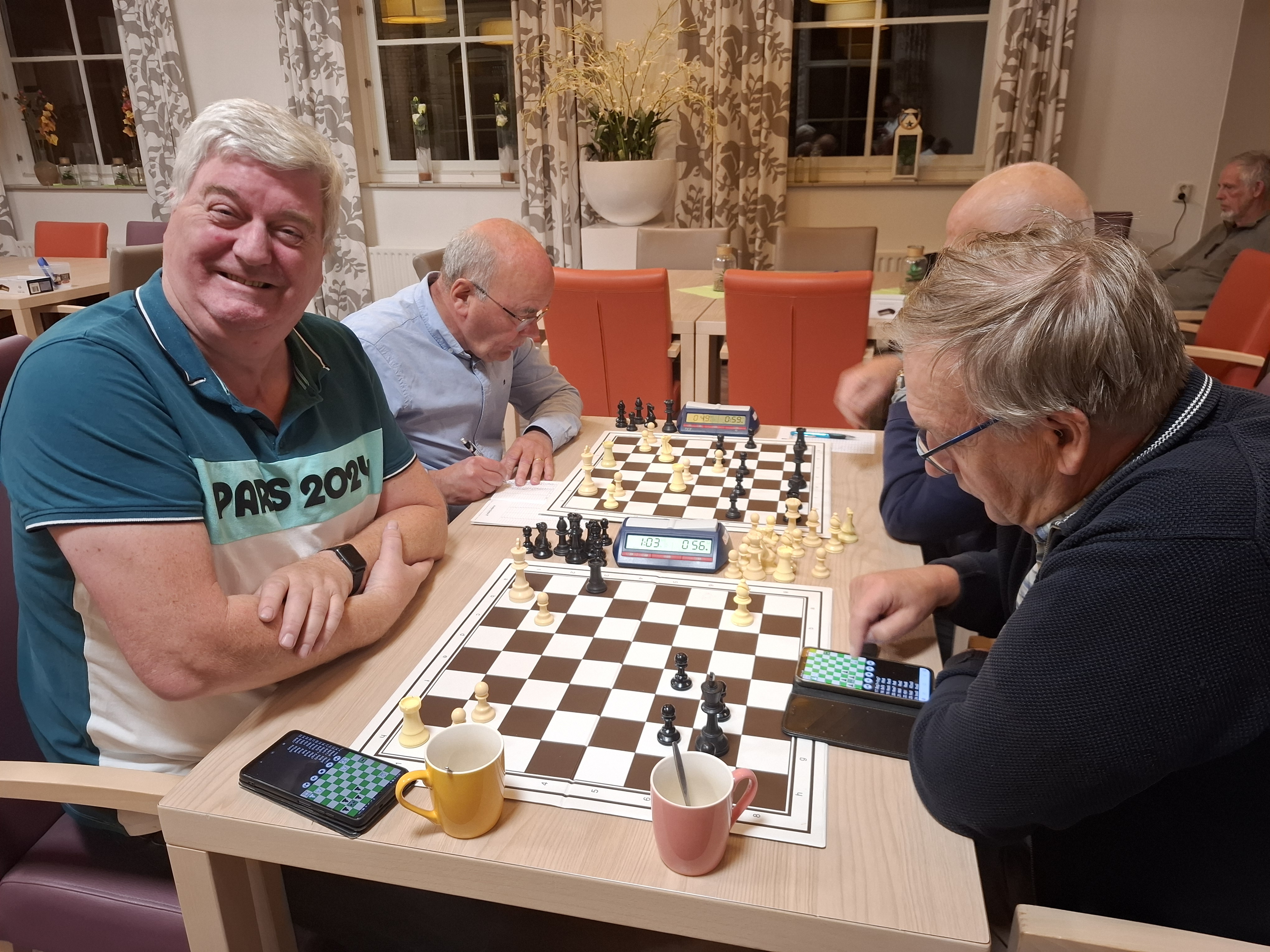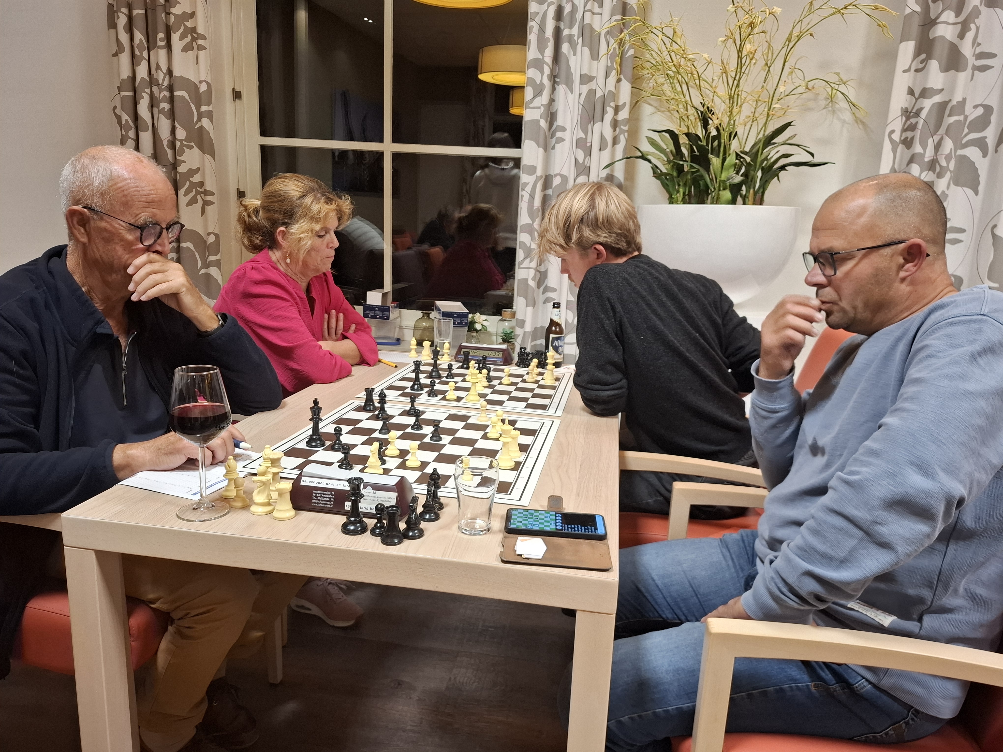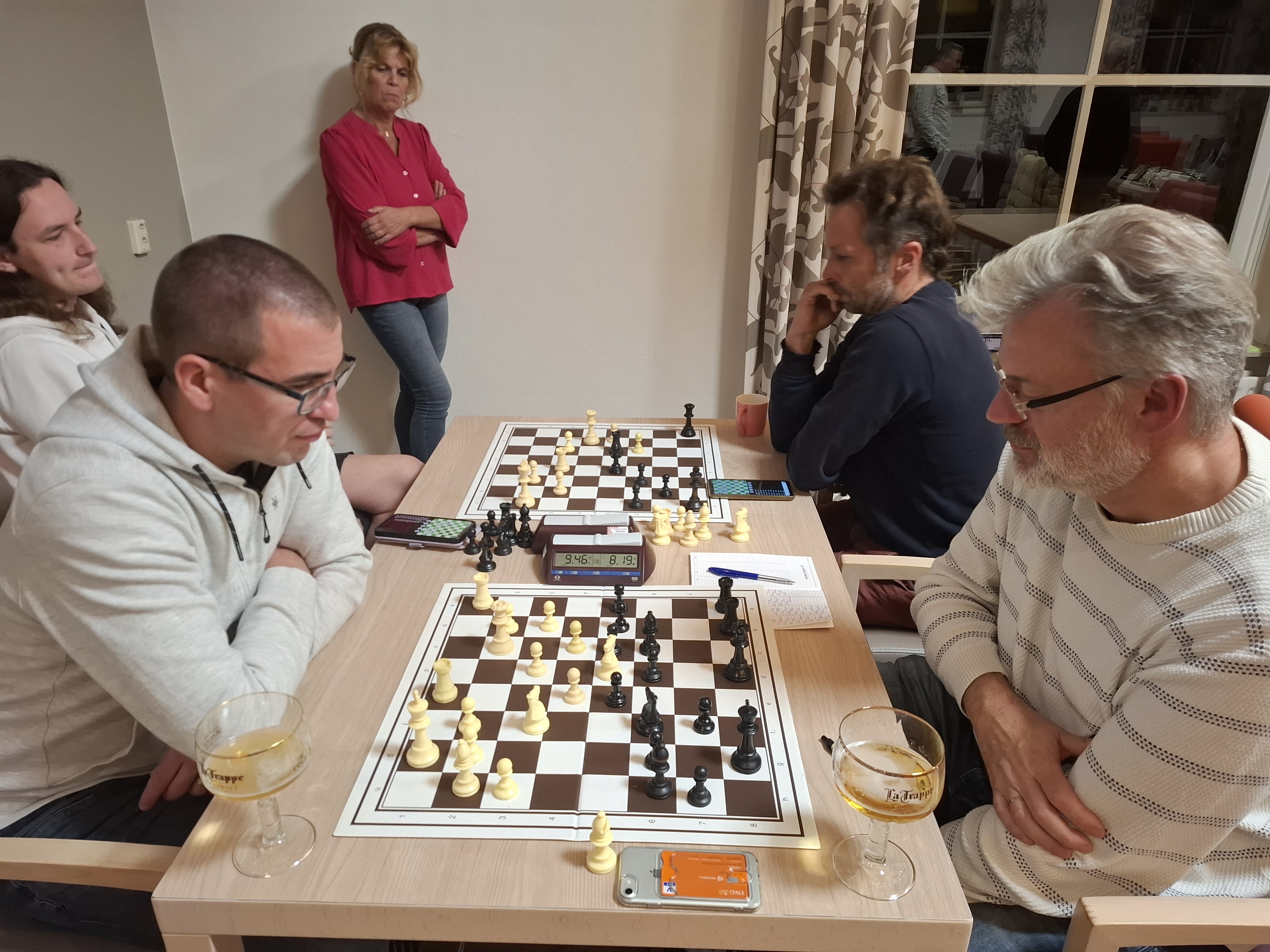 Marnix den Boer was de grote winnaar van de avond. Door te winnen van directe concurrent Floris van der Voorn neemt Den Boer de vierde plaats in handen, daar waar hij vier seizoenen geleden zo sterk eindigde. Paul Greefhorst en Peter de Vrieze zorgden voor spektakel in een partij die veel weg had van snelschaken, maar na een uiteindelijk toch nog lang eindspel tekenden ook zij voor remise. Voorafgaand kreeg de vereniging bezoek van Mattheo van den Dorpel. In het kader van de Rabobank Clubactie reikte hij een cheque ter waarde van honderdtwintig euro uit aan penningmeester Paul Greefhorst. Iedereen die op onze vereniging heeft gestemd, heel erg bedankt!