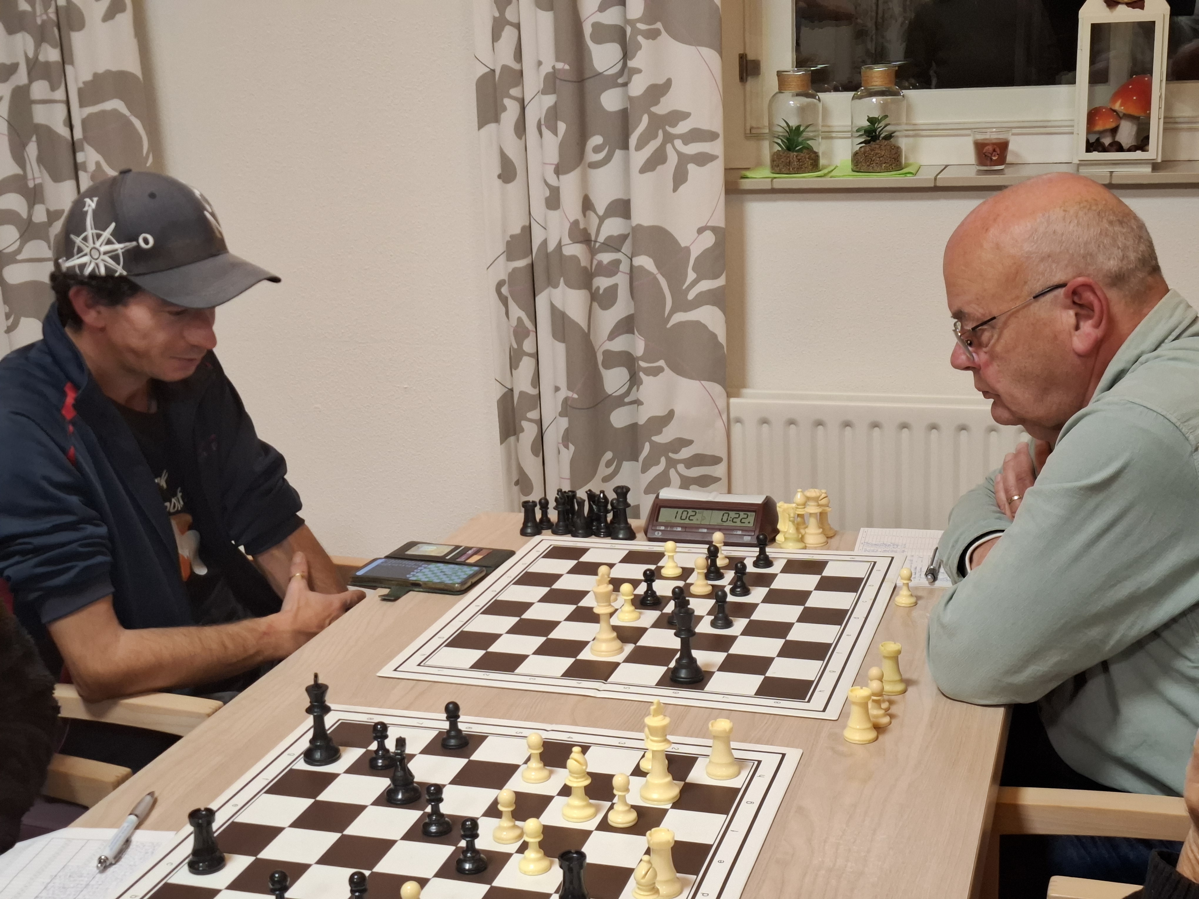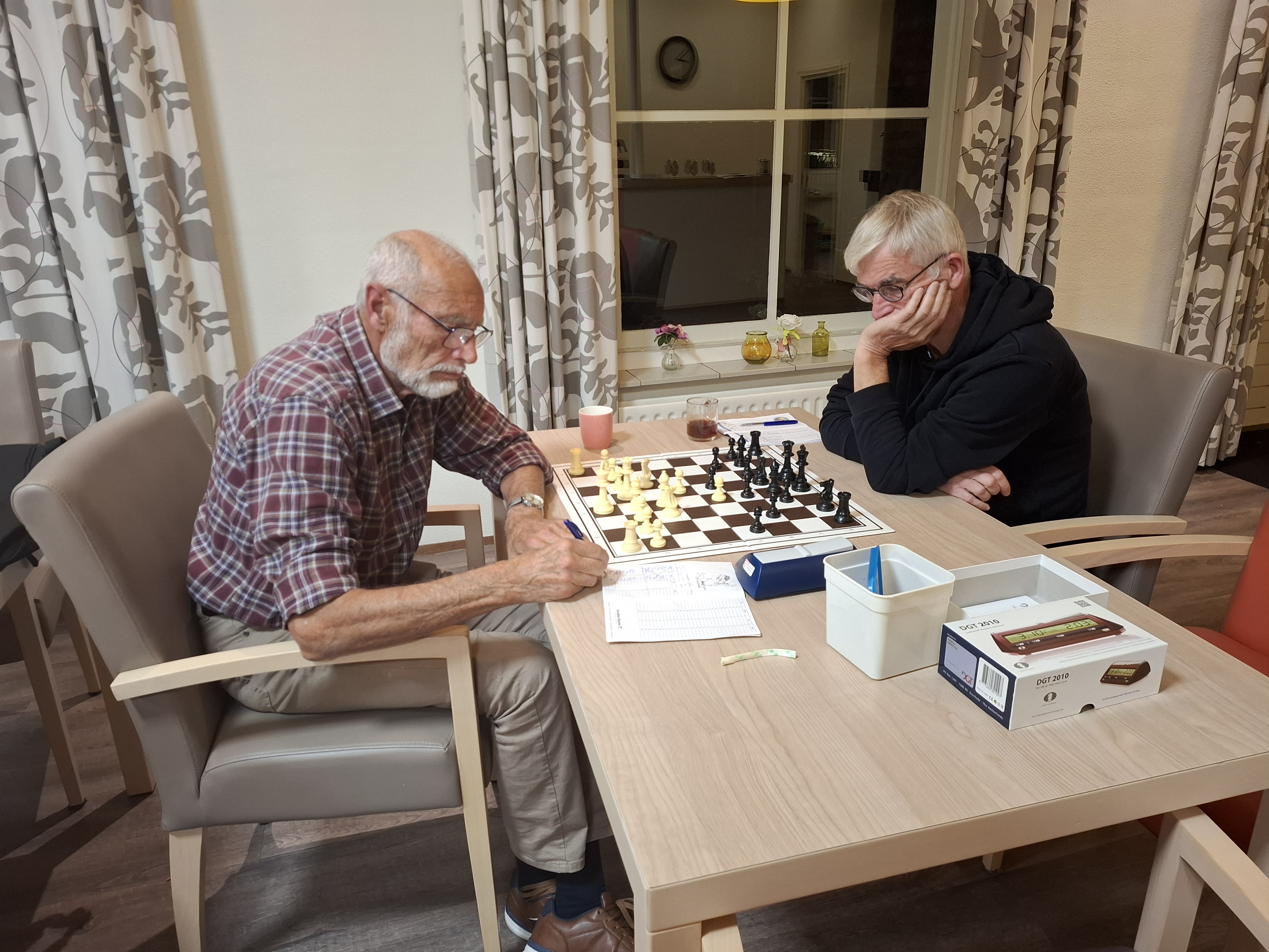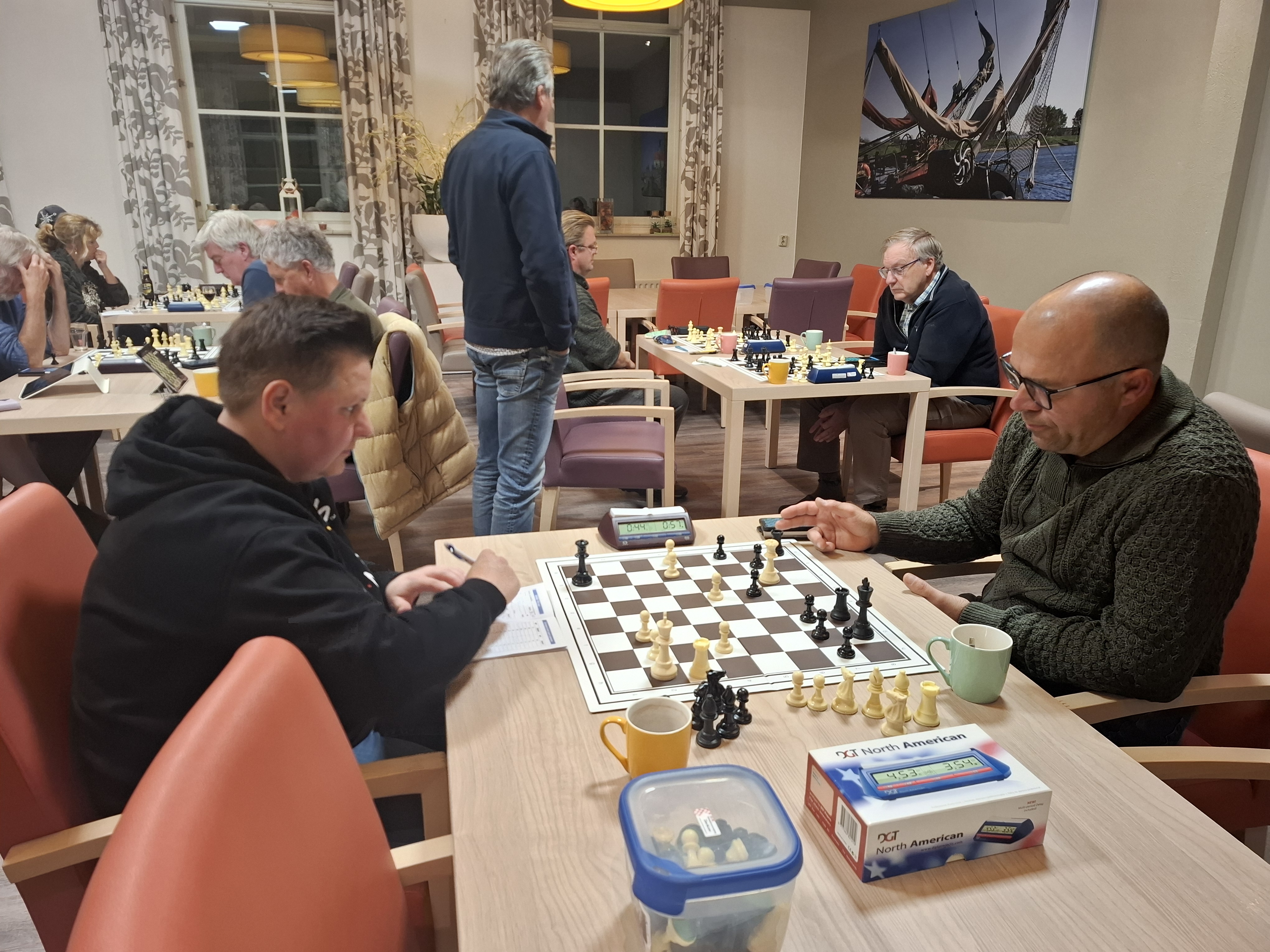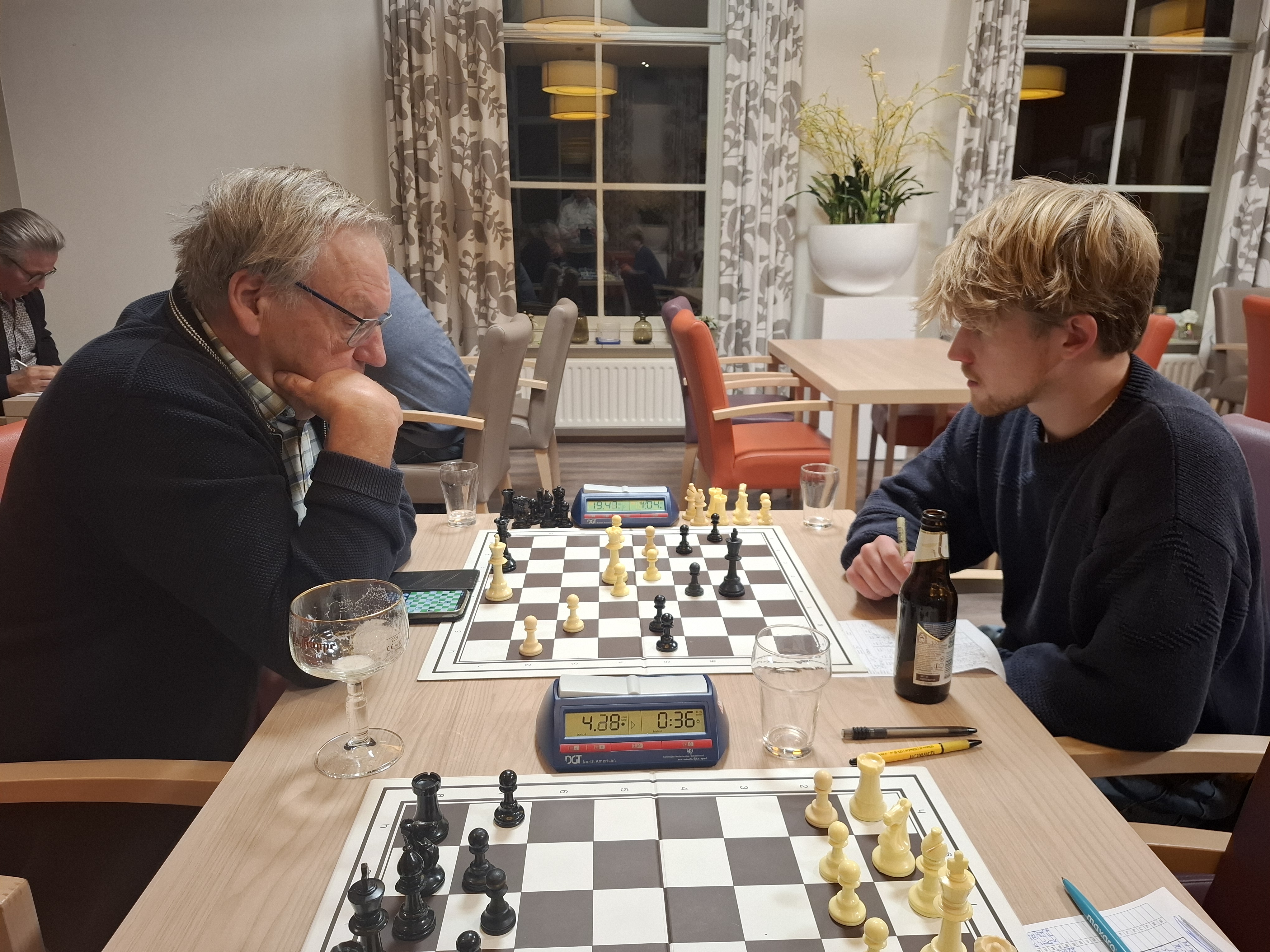 Floris verwisselde op de derde zet een zet en maakte op de vierde zet de verkeerde keuze. Het kostte hem een stuk en hij hield de mindere stelling over. Hij probeerde nog van alles maar Martin kon vrij gemakkelijk afwikkelen naar winst.