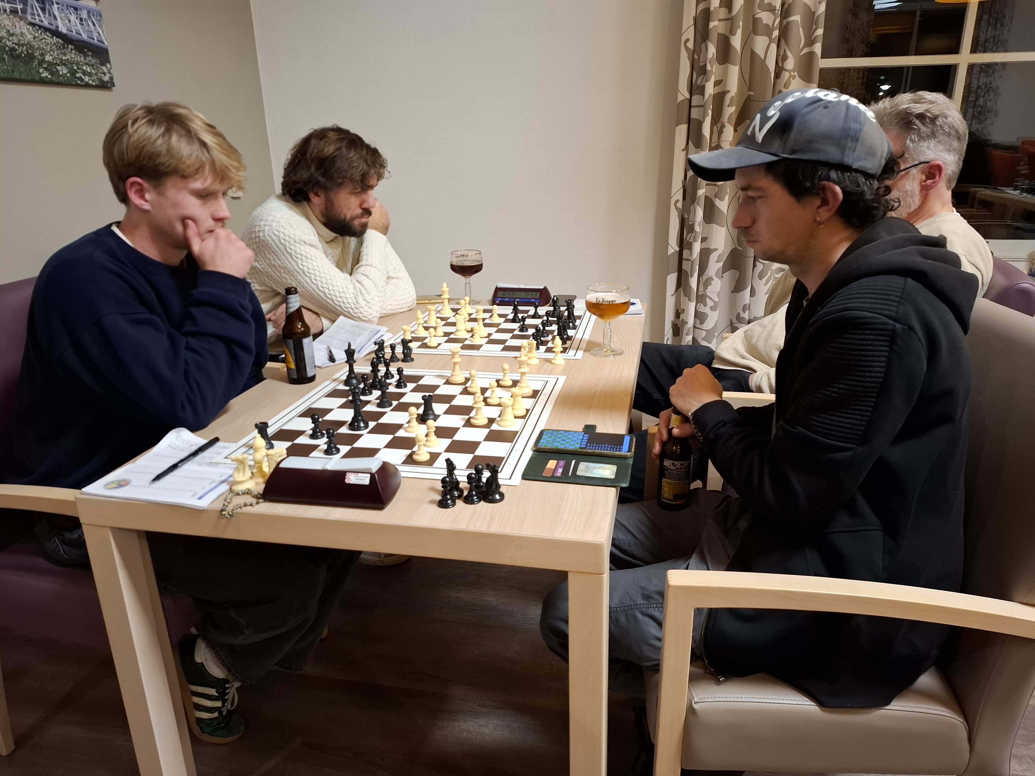 Het werd een korte partij. Van Rooten had niet zijn beste dag en blunderde al snel een stuk weg waarna hij opgaf.