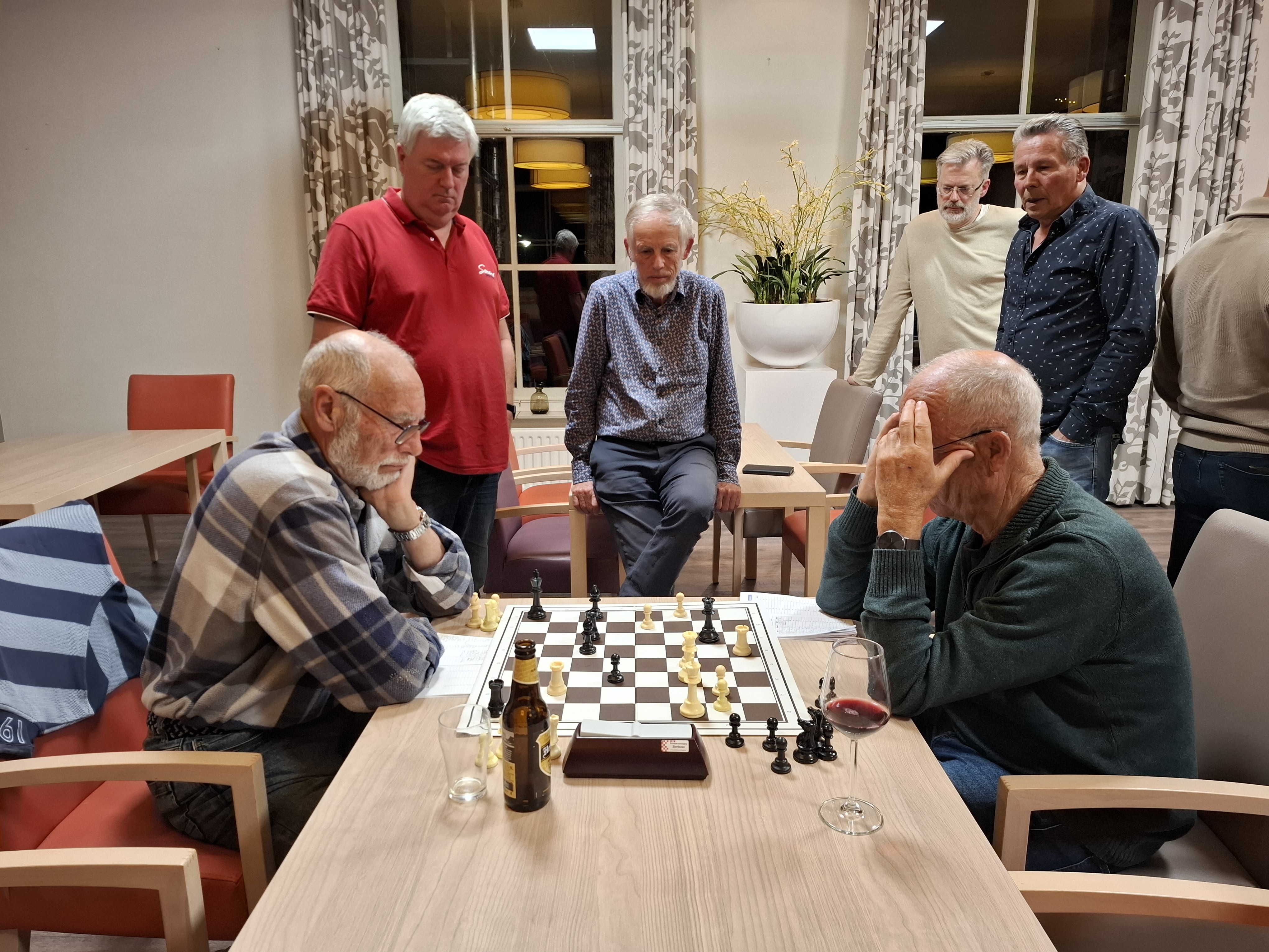 Na de jaarwisseling stond De Vrieze nog vijfde maar belandde in een vormcrisis die zijn weerga niet kent. De twaalfde stek is nu de plek van waaruit geopereerd moet worden om het seizoen nog een beetje redelijk af te sluiten. En dan met zwart spelen tegen een aanvaller pur sang. Greefhorst ging er eens goed voor zitten en De Vrieze zette zich schrap, want onderlinge partijen zijn doorgaans rommelig en heel onduidelijk. De Vrieze had zich dan ook op voorhand voorgenomen de tijd te nemen voor alle eventuele grappen en grollen van Greefhorst. Maar het viel dit keer mee.