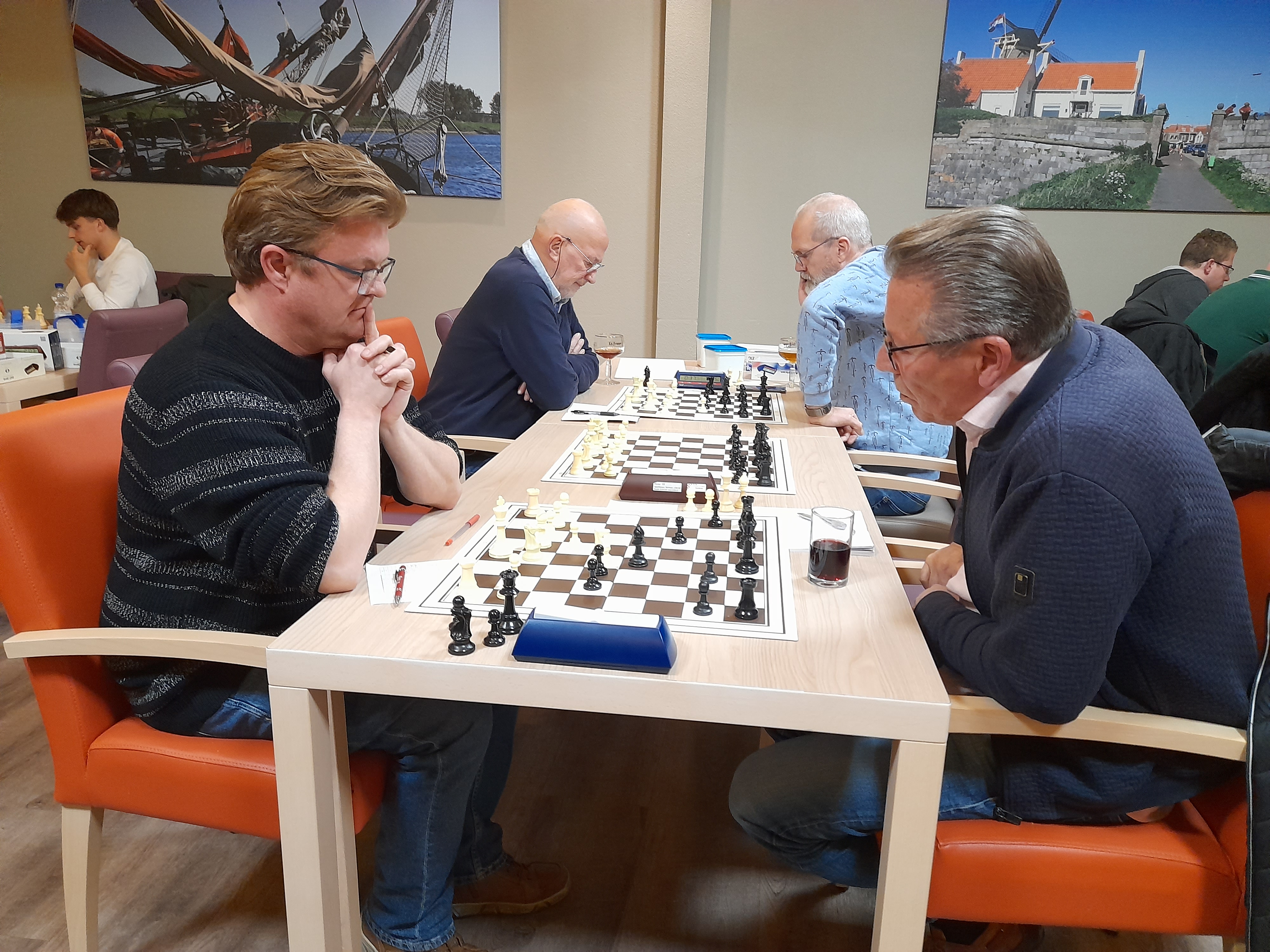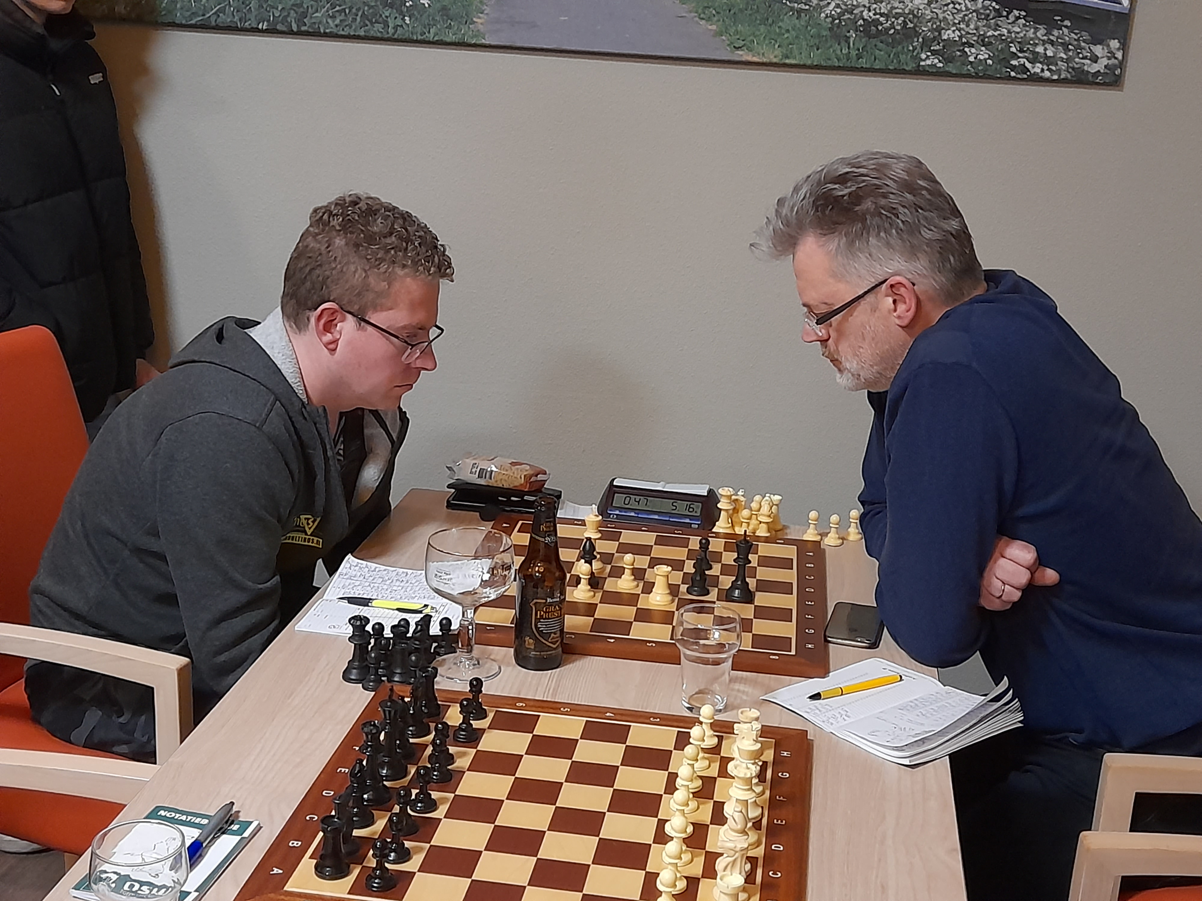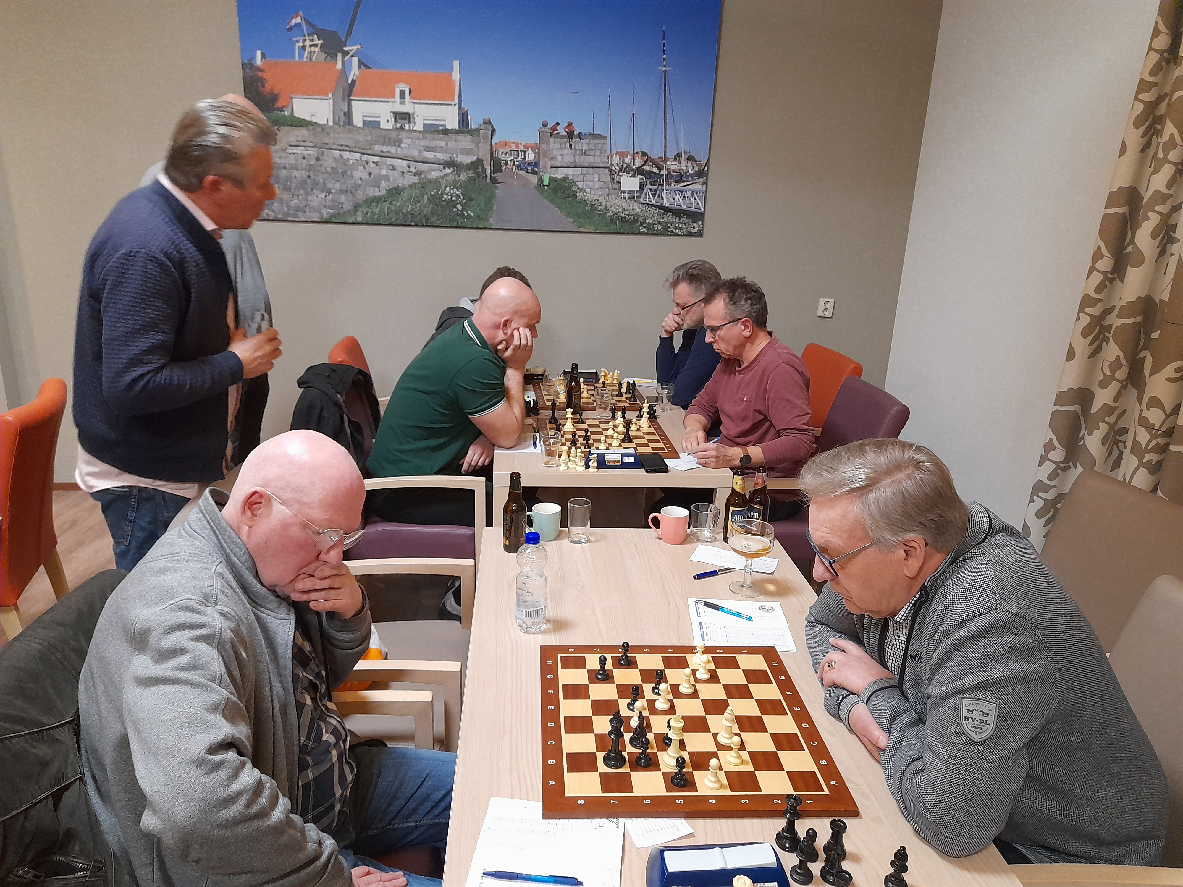 Op het tweede bord wist Aloys Kersten in het middenspel zijn tegenstander goed onder druk te zetten en kwam in een gewonnen eindspel. Dit wist hij bekwaam uit te spelen en bracht de stand weer in evenwicht. Peter de Vrieze speelde een gedegen partij waar alles een beetje vast kwam te staan. Geen van beide spelers zag kans om een doorbraak te forceren en er werd tot remise besloten. Op het eerste bord speelde Sjaak Spiegels een moeilijke partij. Zijn tegenstander ging gelijk voor een koningsaanval. Om tegenspel te creëerde probeerde Spiegels een opening te maken in het centrum waar de koning van zijn tegenstander nog stond. Dit lukt niet helemaal en zijn tegenstander ging weer in de aanval.