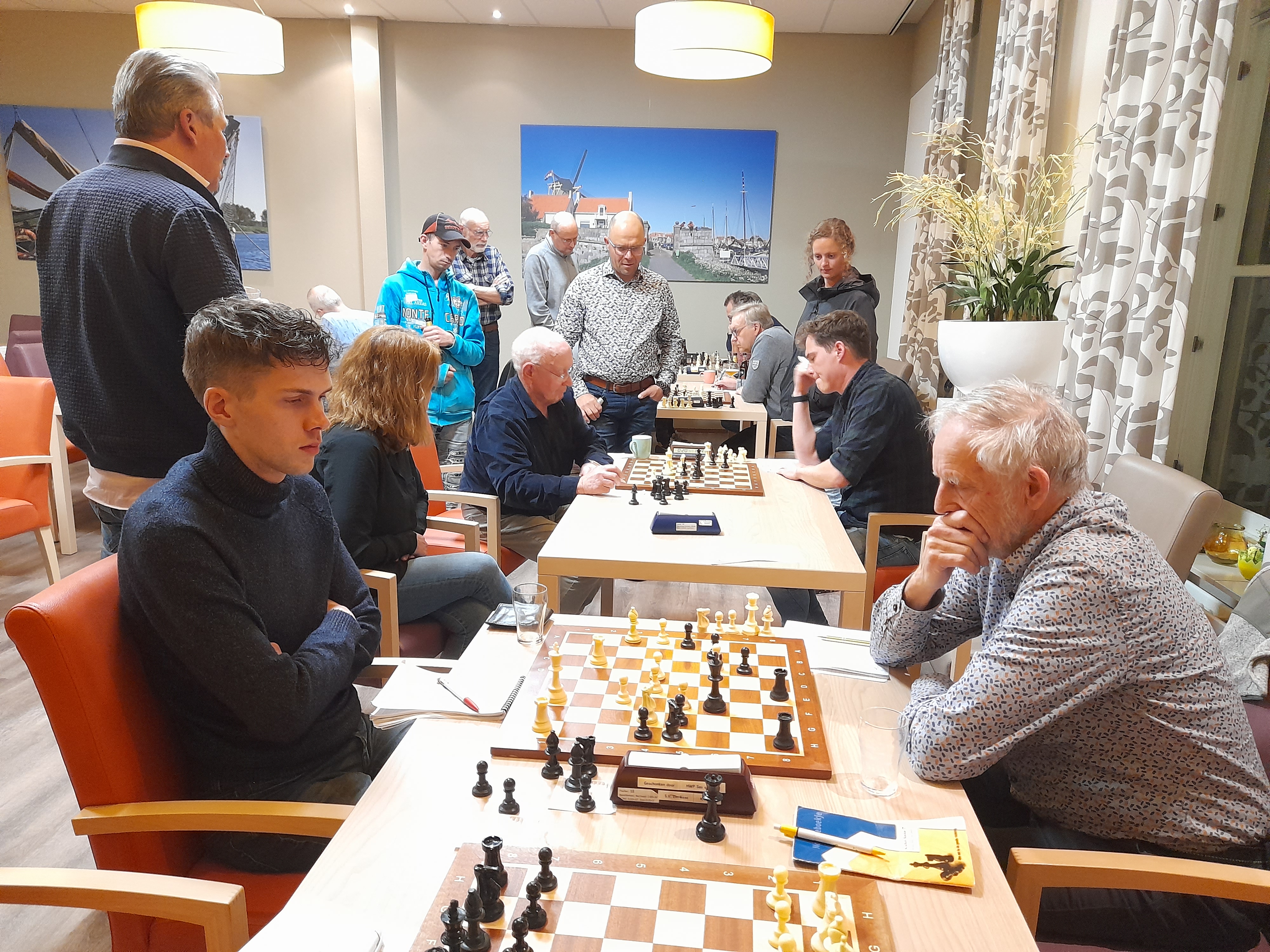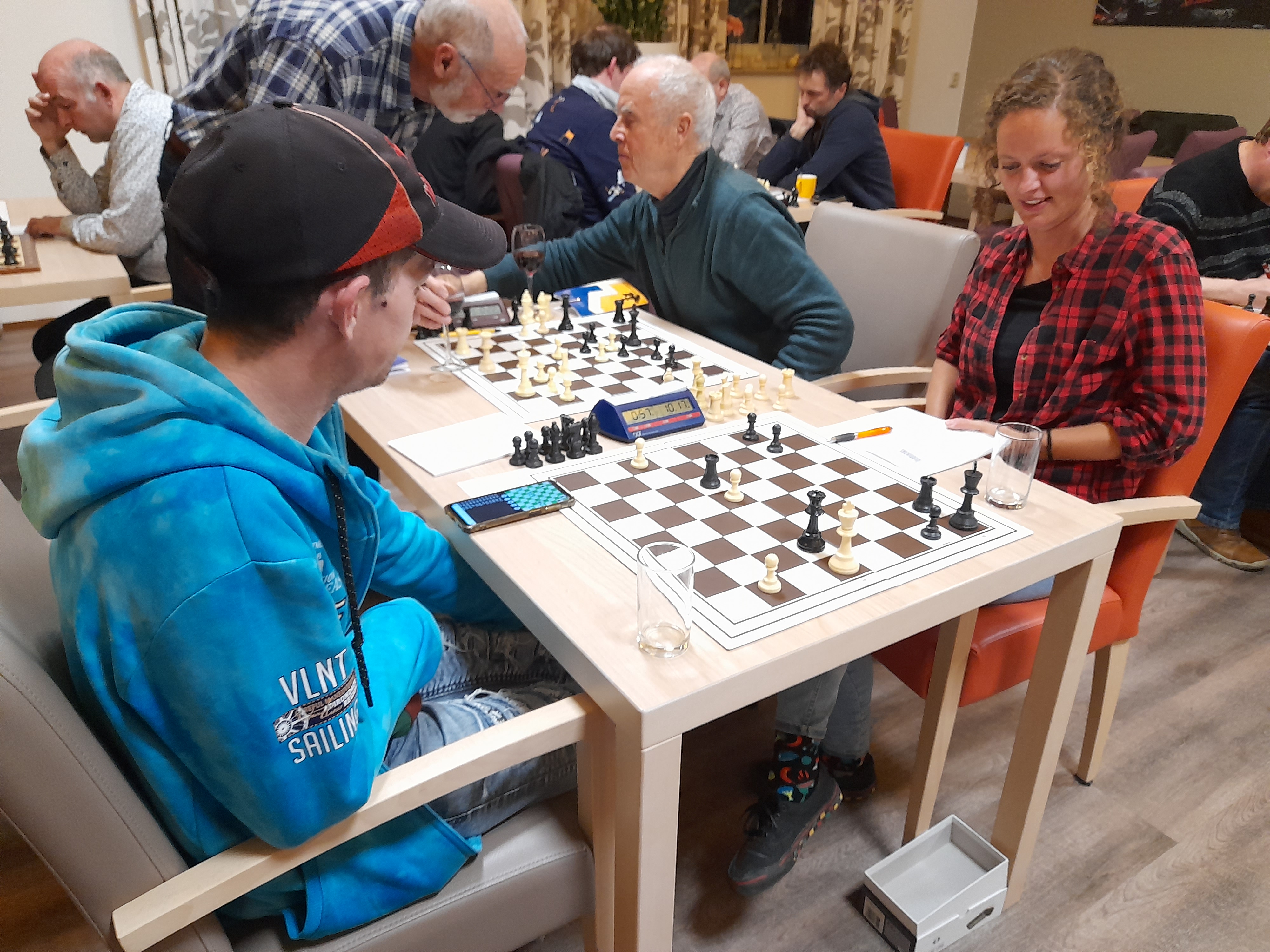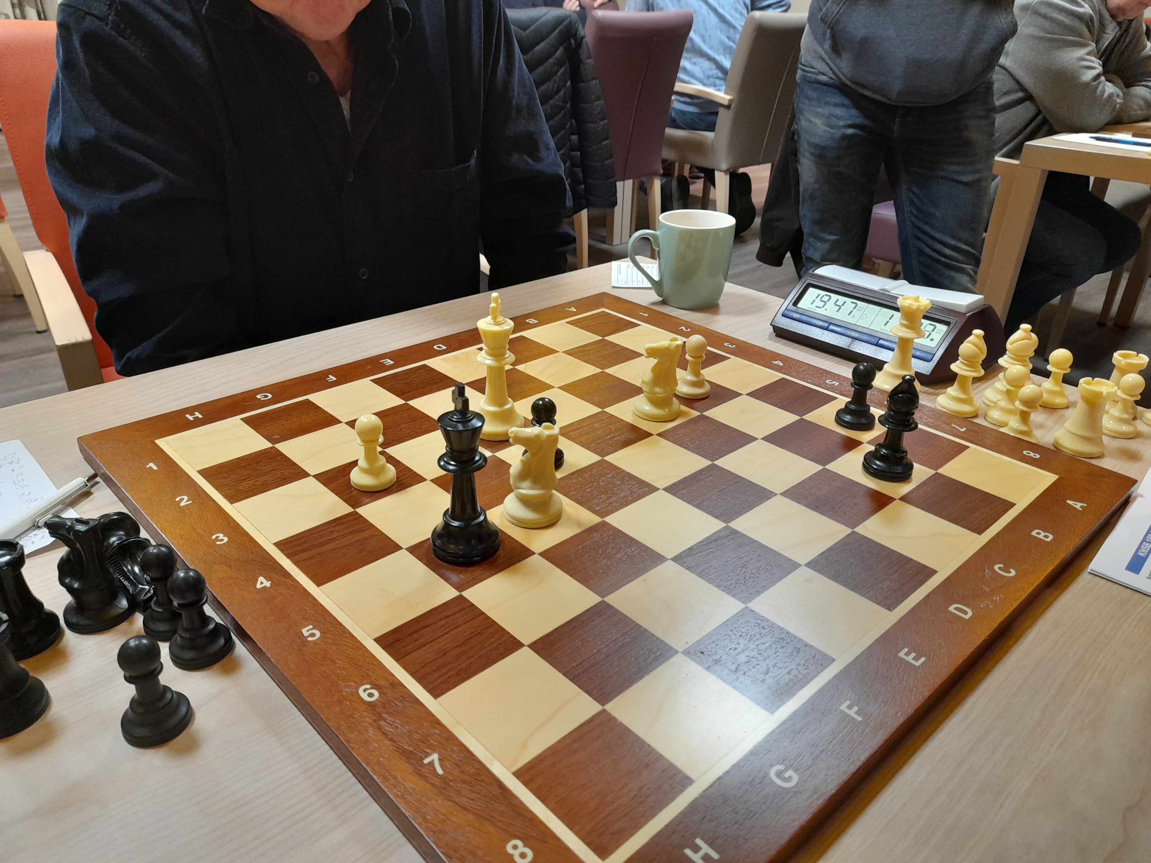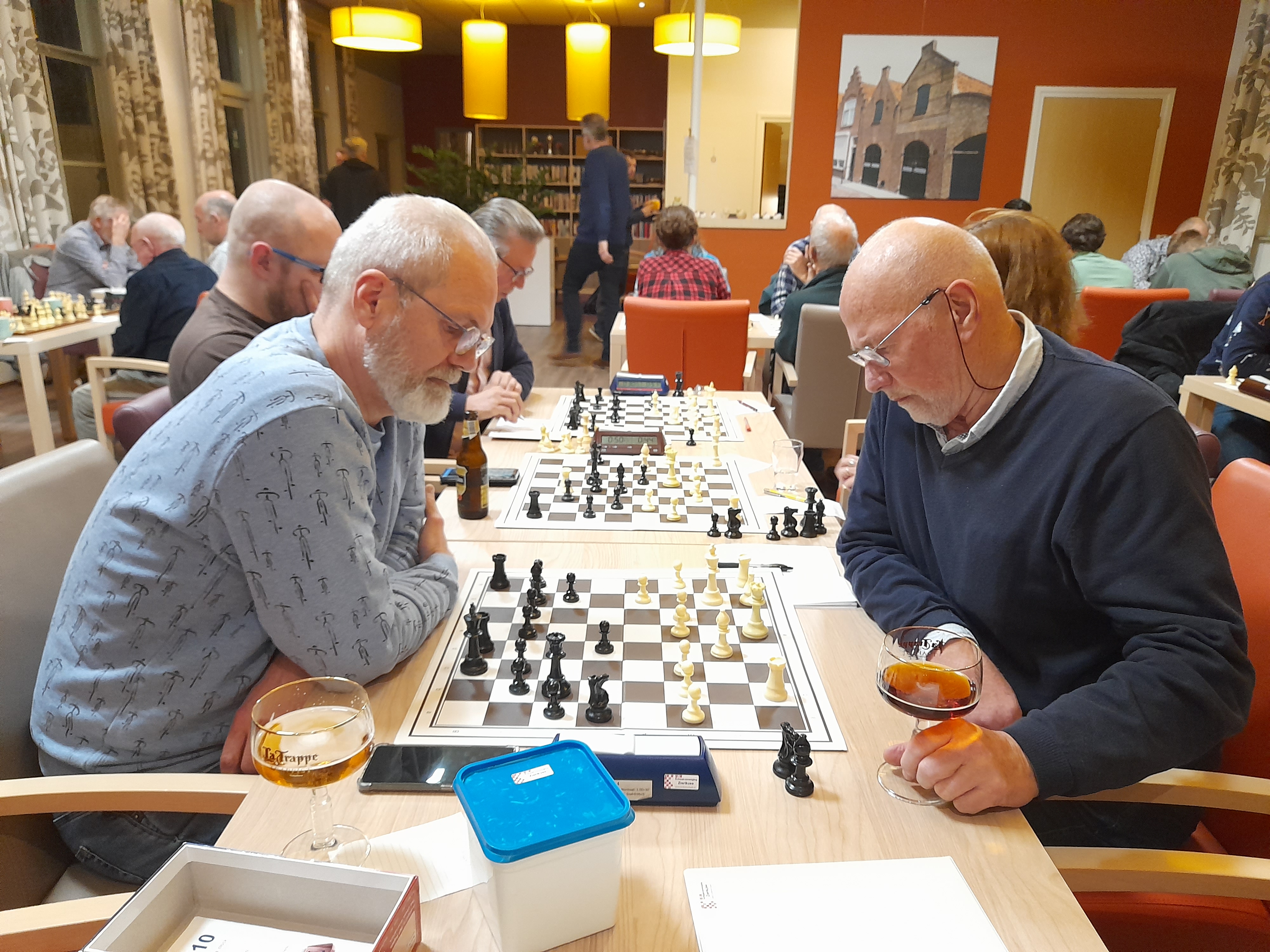 Op het tweede bord wist Aloys Kersten in het middenspel zijn tegenstander goed onder druk te zetten en kwam in een gewonnen eindspel. Dit wist hij bekwaam uit te spelen en bracht de stand weer in evenwicht. Peter de Vrieze speelde een gedegen partij waar alles een beetje vast kwam te staan. Geen van beide spelers zag kans om een doorbraak te forceren en er werd tot remise besloten. Op het eerste bord speelde Sjaak Spiegels een moeilijke partij. Zijn tegenstander ging gelijk voor een koningsaanval. Om tegenspel te creëerde probeerde Spiegels een opening te maken in het centrum waar de koning van zijn tegenstander nog stond. Dit lukt niet helemaal en zijn tegenstander ging weer in de aanval.