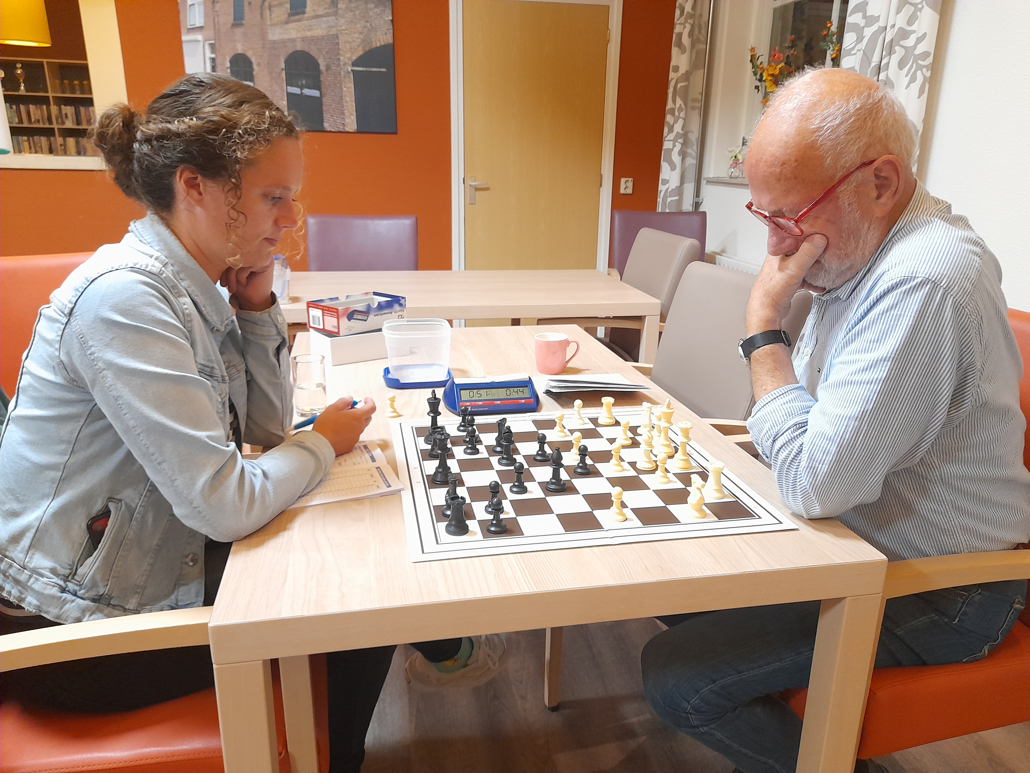 Door een paar doordachte zetten van Van den Nieuwendijk was uiteindelijk mat onvermijdelijk. Van den Nieuwendijk gaf toe dat hij dit niet helemaal voorzien had en dacht dat hij gewoon een stuk verloor. Soms moet je geluk afdwingen….