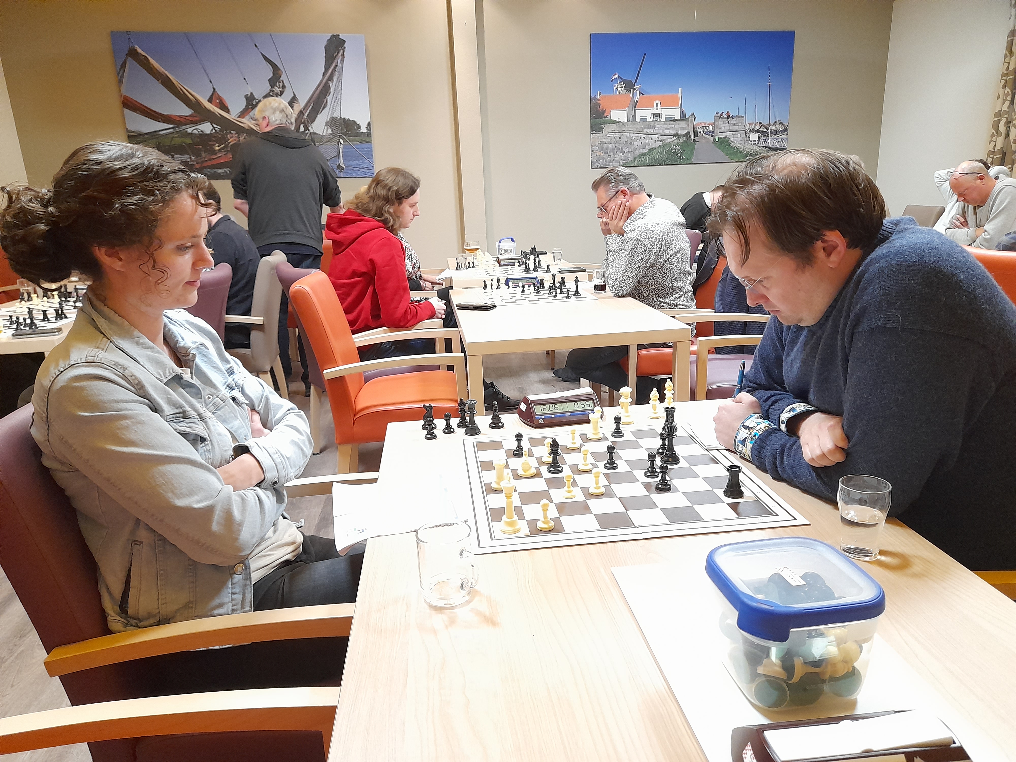 Het A-viertal, uitkomend in de 2e klasse avondcompetitie van de ZSB, moest van De Zwarte Dame A winnen om nog uitzicht te houden op het kampioenschap. Gezien de bekernederlaag van vorige week tegen ook DZD beloofde het een zware avond te worden. En dat werd het ook. Pas rond de klok van elf uur viel de beslissing in het voordeel van Zierikzee aan bord 1, toen Martin Krijger zijn tegenstander hem feliciteerde. Ook Sjaak Spiegels op 2 en Aloys Kersten op 3 wonnen hun partij. Alleen Kees vd Nieuwenhuize op 4 redde het niet. Daarmee kwam de eindstand op 3-1 voor de thuisclub. Zierikzee A staat nu aan kop maar kan zeker nog ingehaald worden door Goes C dat een wedstrijd minder gespeeld heeft.
