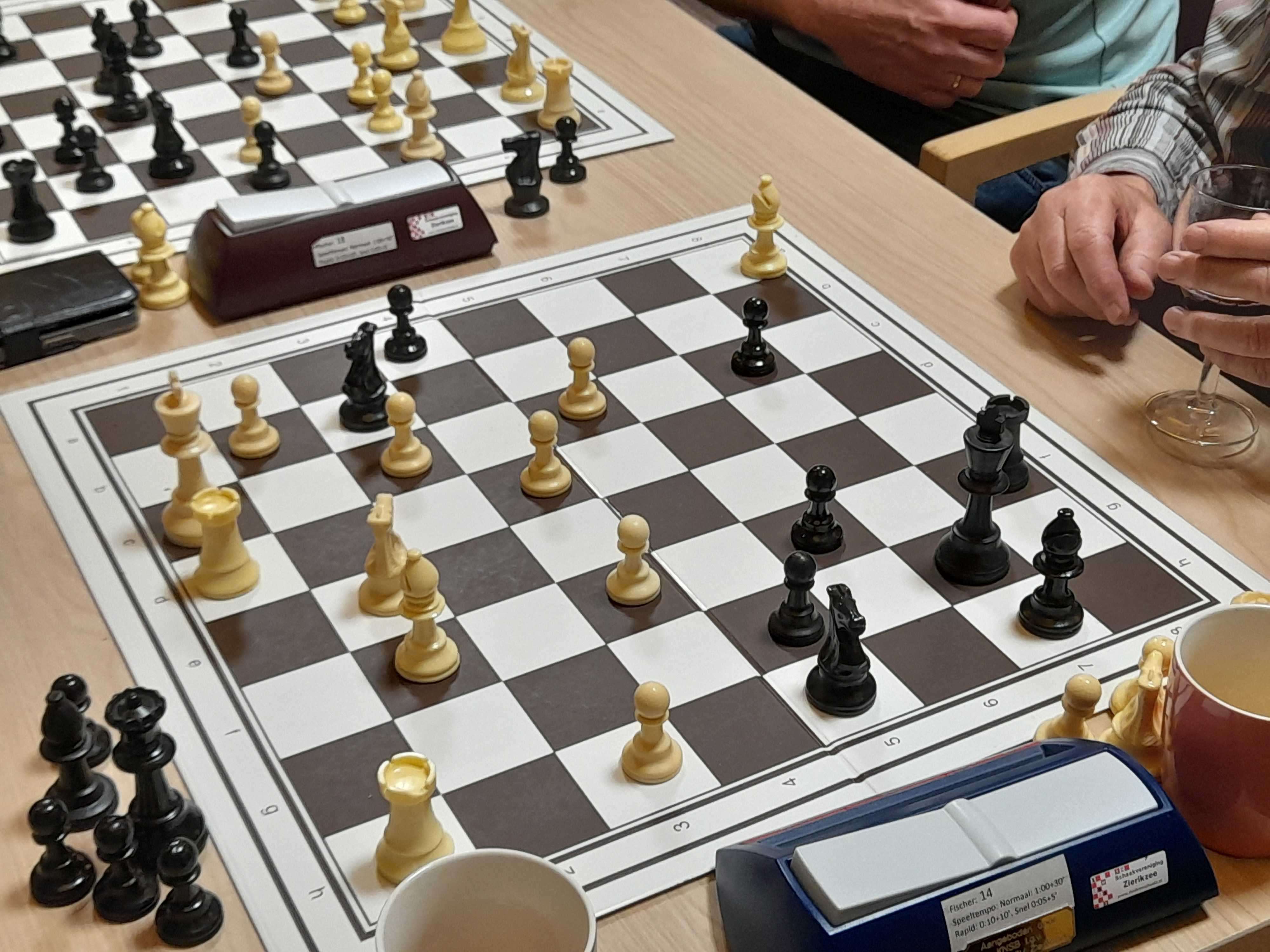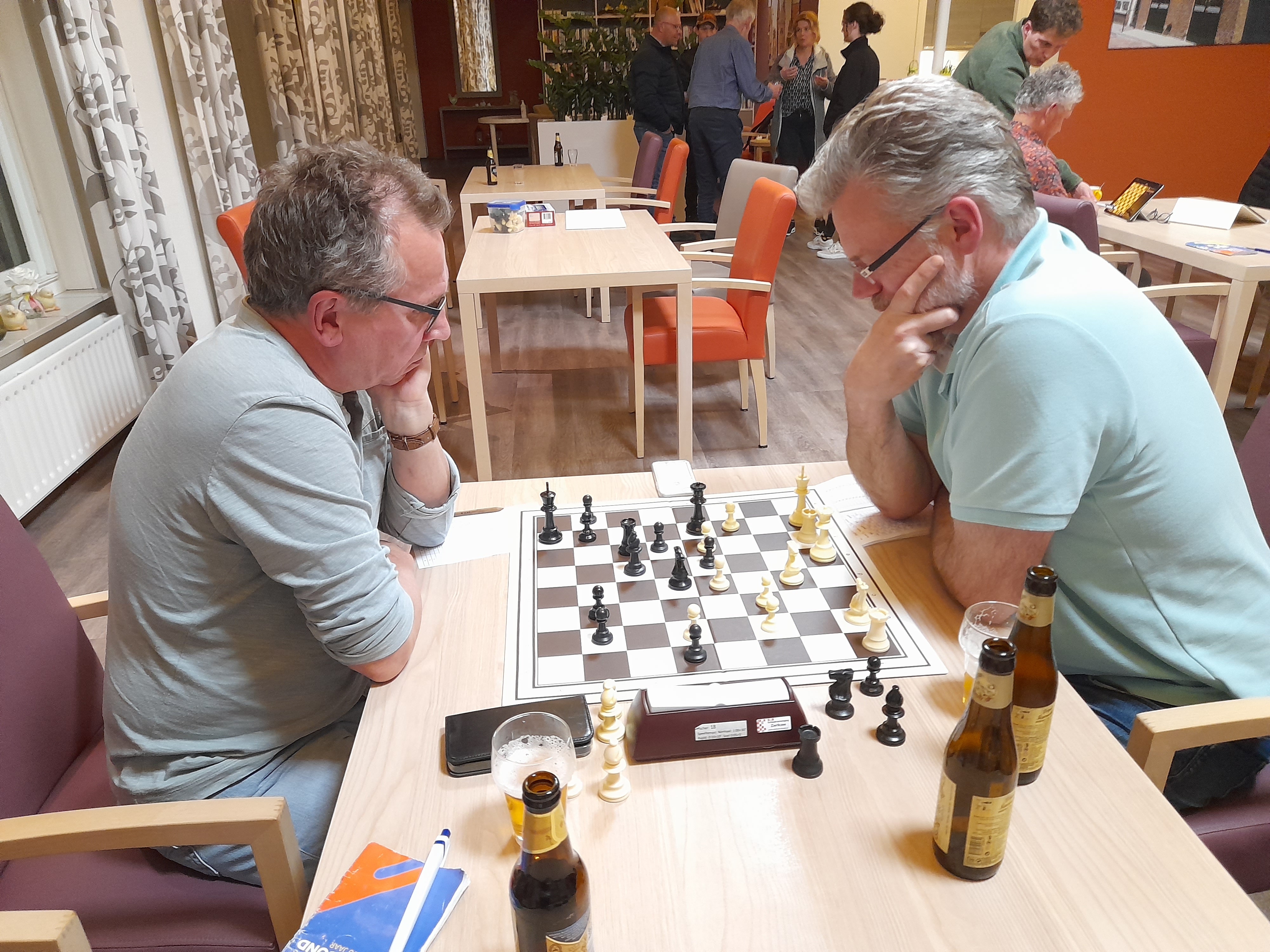 Baakman werd in gezet kwam De Vrieze een pion achter. Maar die pion won hij in het eindspel weer terug.