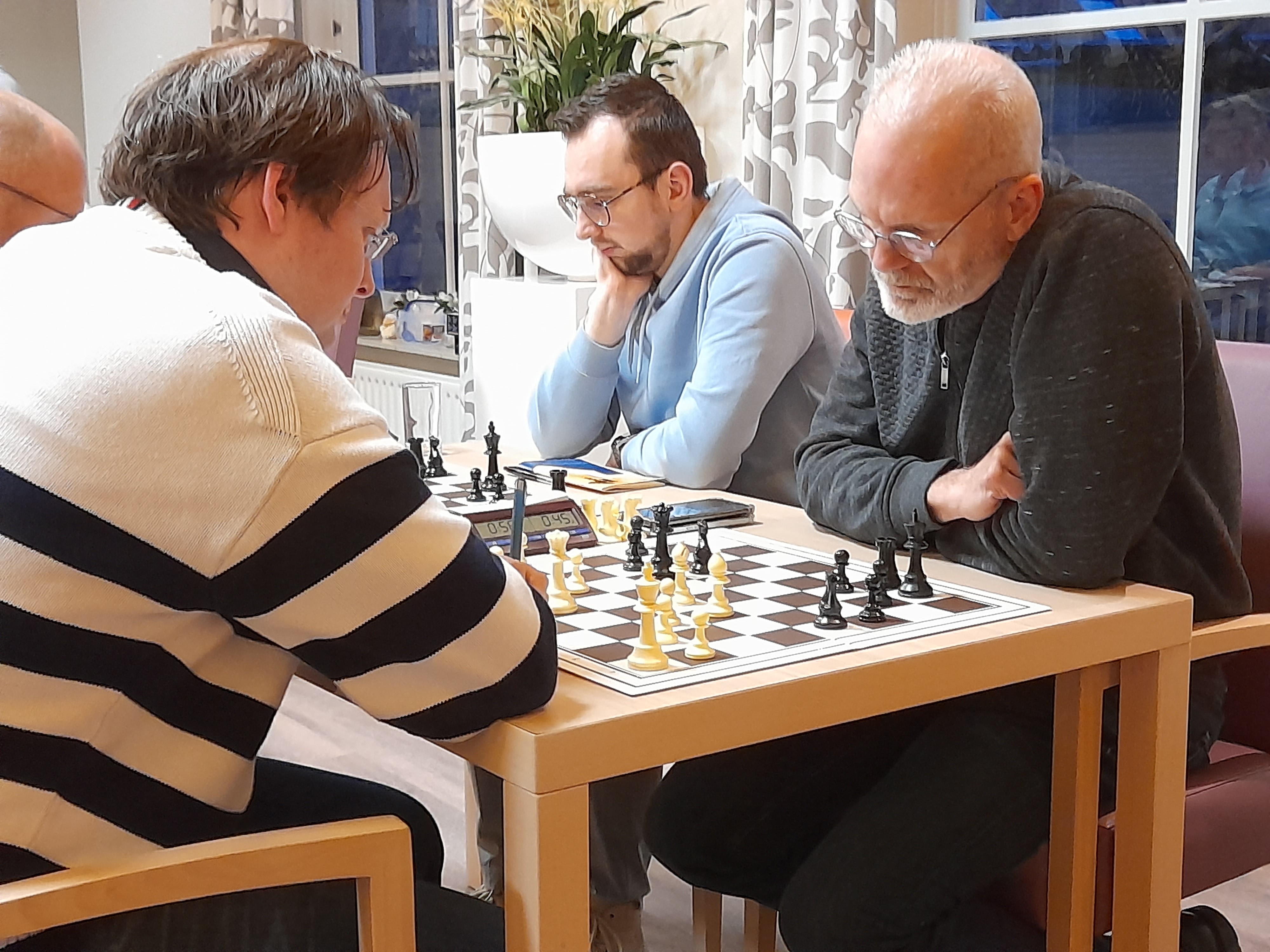 Ook dit lukte deels, waarbij Krijger uiteindelijk een schaak over het hoofd zag waardoor hij in materiaal achter kwam te staan. Meerdere stukken werden vervolgens afgeruild waarna Krijger zijn positie niet meer houdbaar zag en zijn tegenstander feliciteerde.