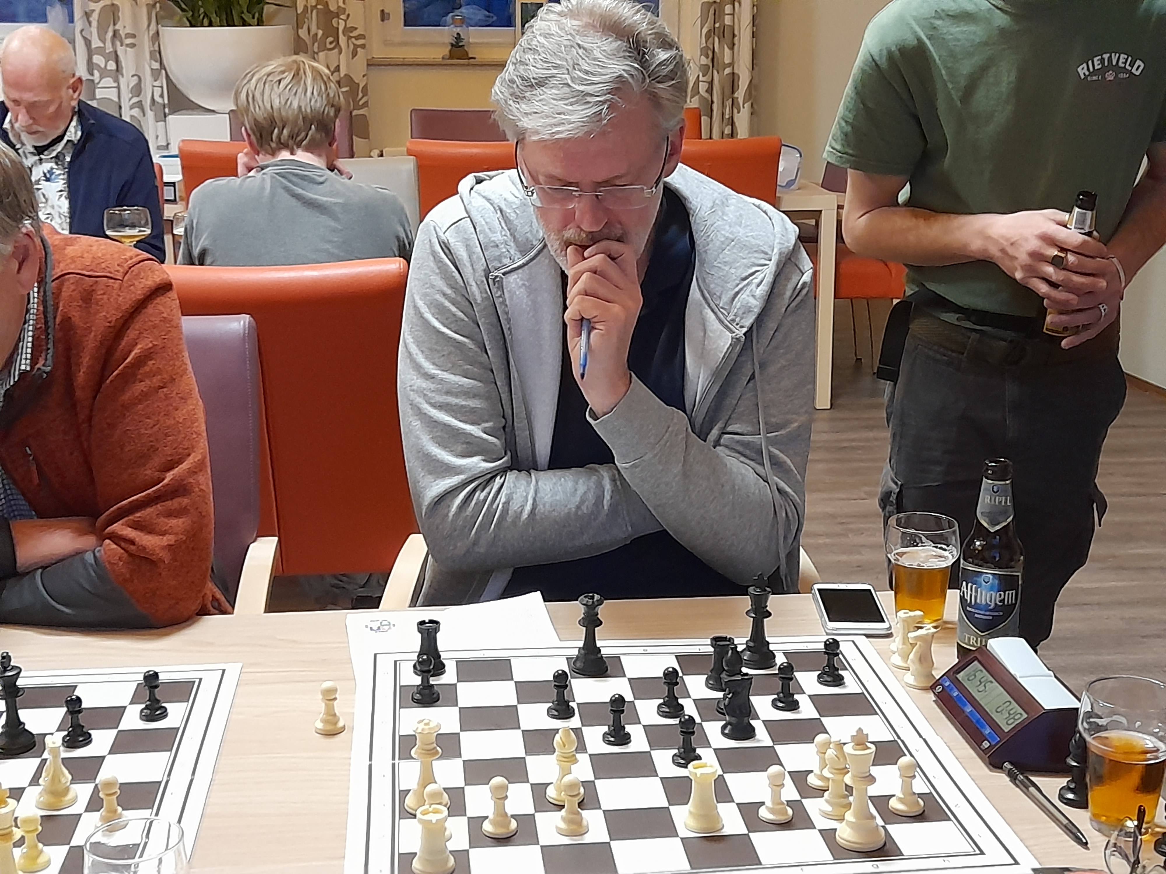 De met de zwarte stukken spelende Nijman sloeg een giftige pion en kreeg daarvoor de rekening gepresenteerd. Van der Westen is de laatste weken in bloedvorm en speelde ook nu een sterke partij.