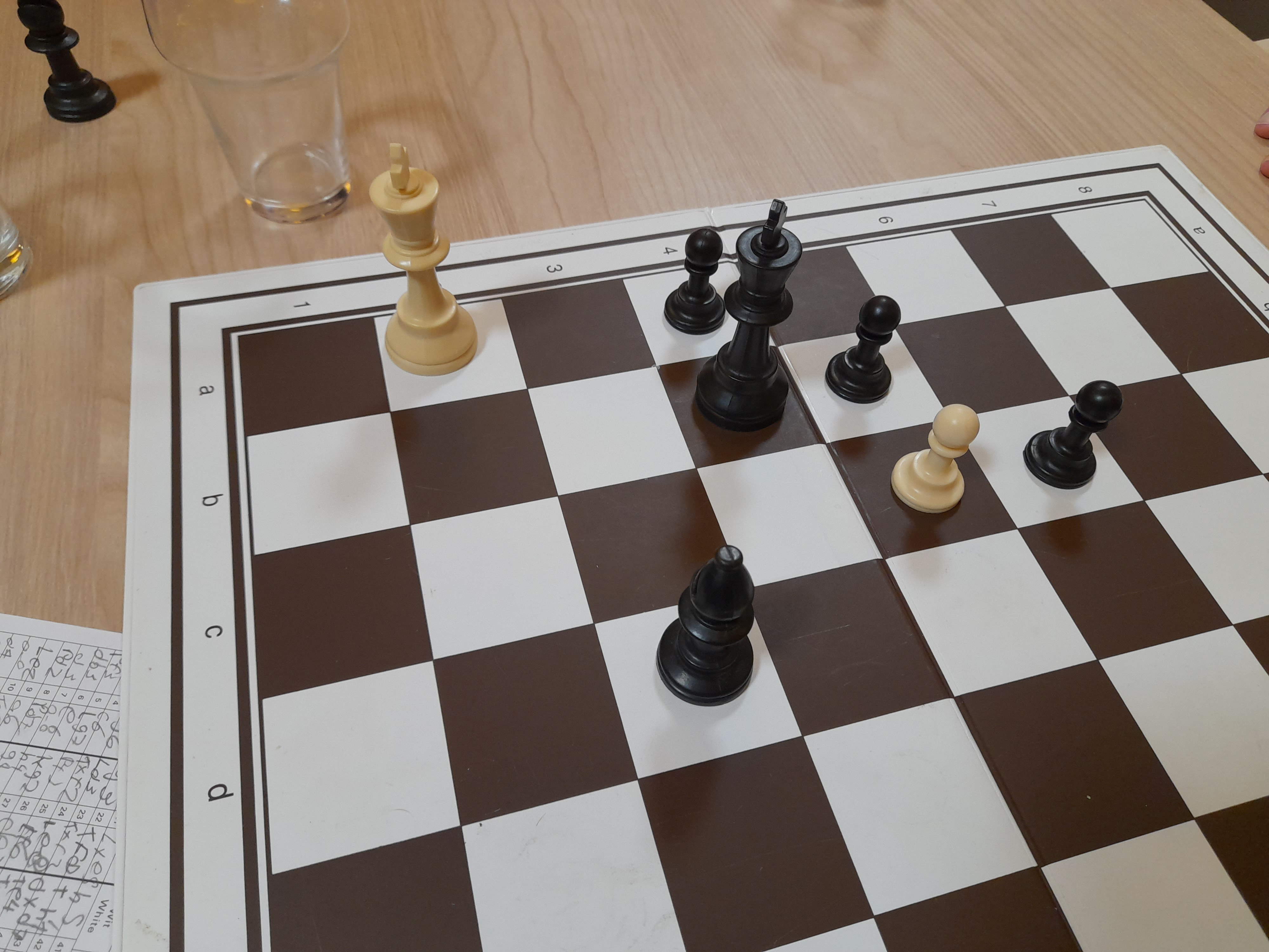 Met drie pionnen tegen een paard en ieder een toren had Van Rooten het kunnen redden, maar De Vrieze wist er zorgvuldig twee onschadelijk te maken. Die laatste, een vervelende flankpion, kreeg De Vrieze maar niet te pakken. Van Rooten bood remise, en dit was misschien wel een terechte afspiegeling van een mooie partij.