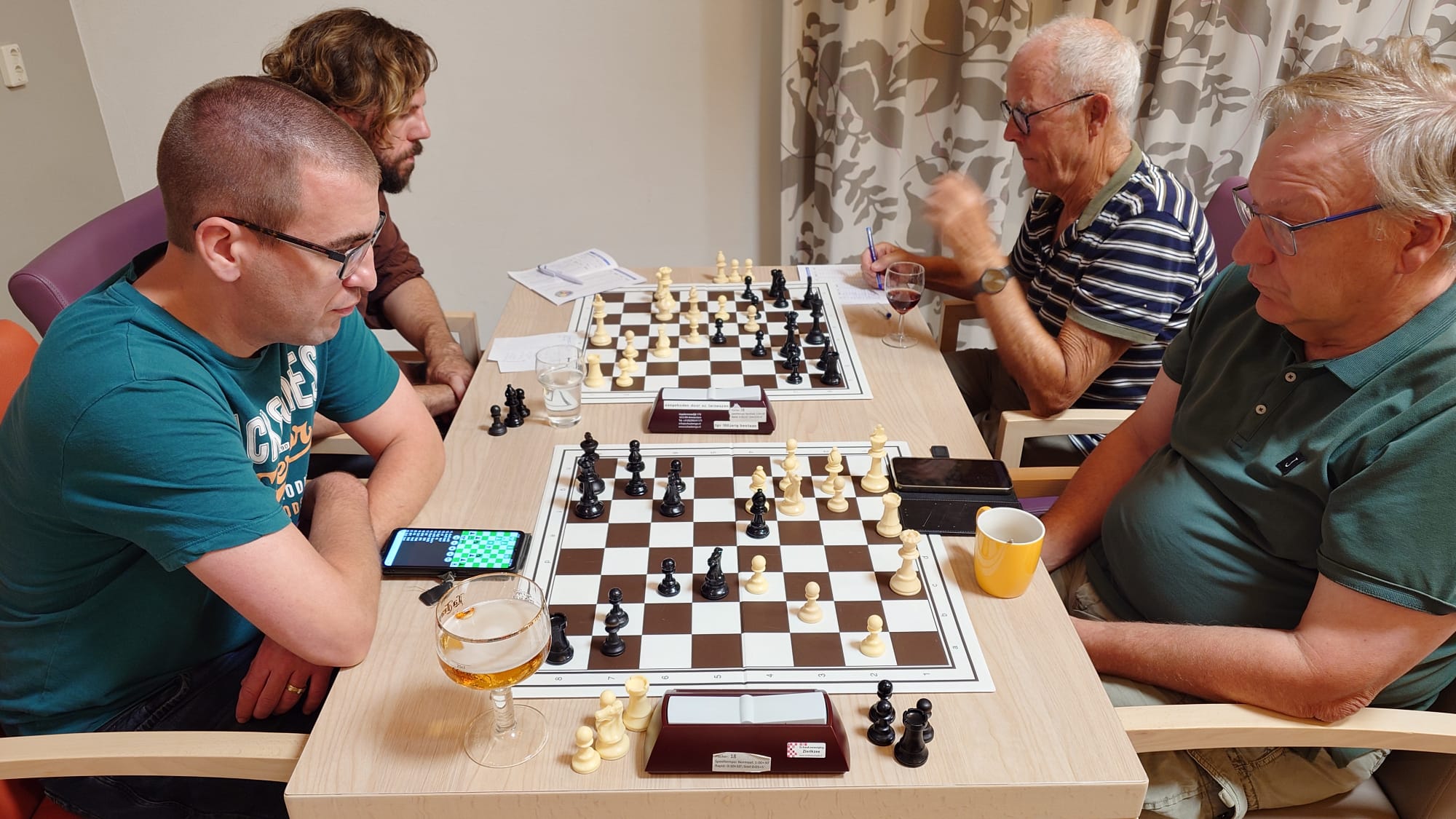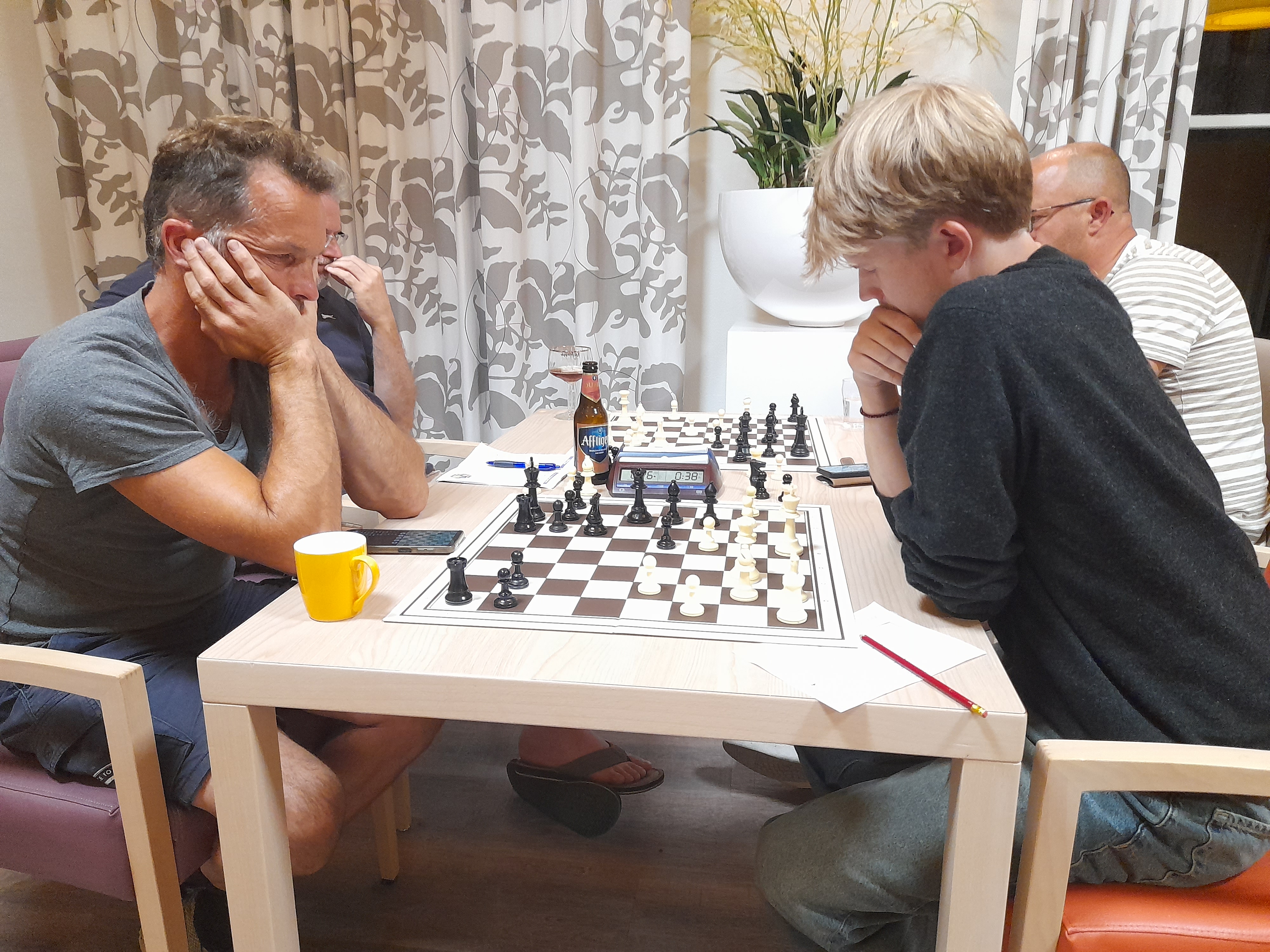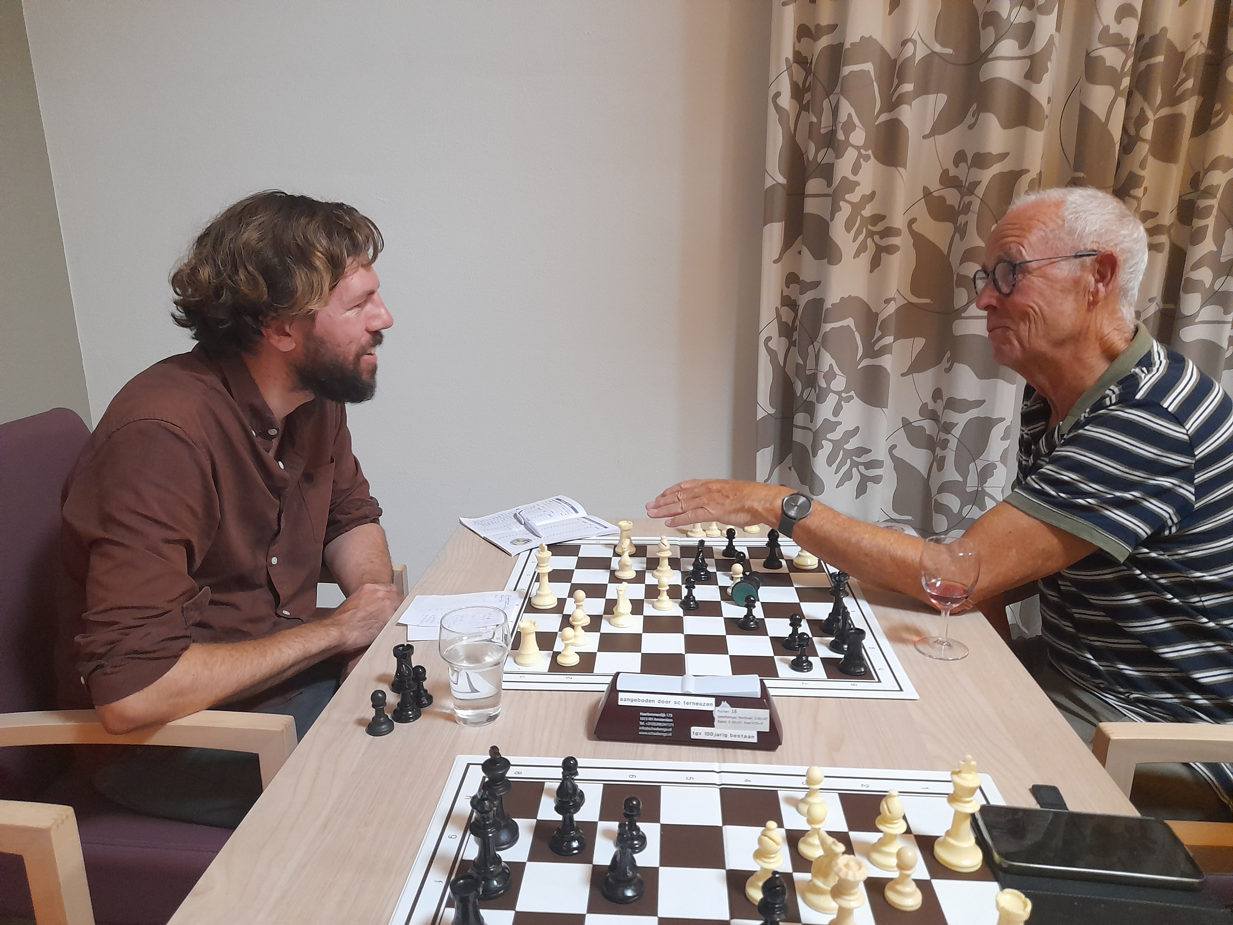 Wit bleef scherp spelen en ruilde twee torens en een pion af voor de dames. Zwart dacht dat remise het hoogst haalbare was en bood dat ook aan. Wit besloot het remise aanbod met nog een minuutje of twee a drie op de klok aan te nemen.
