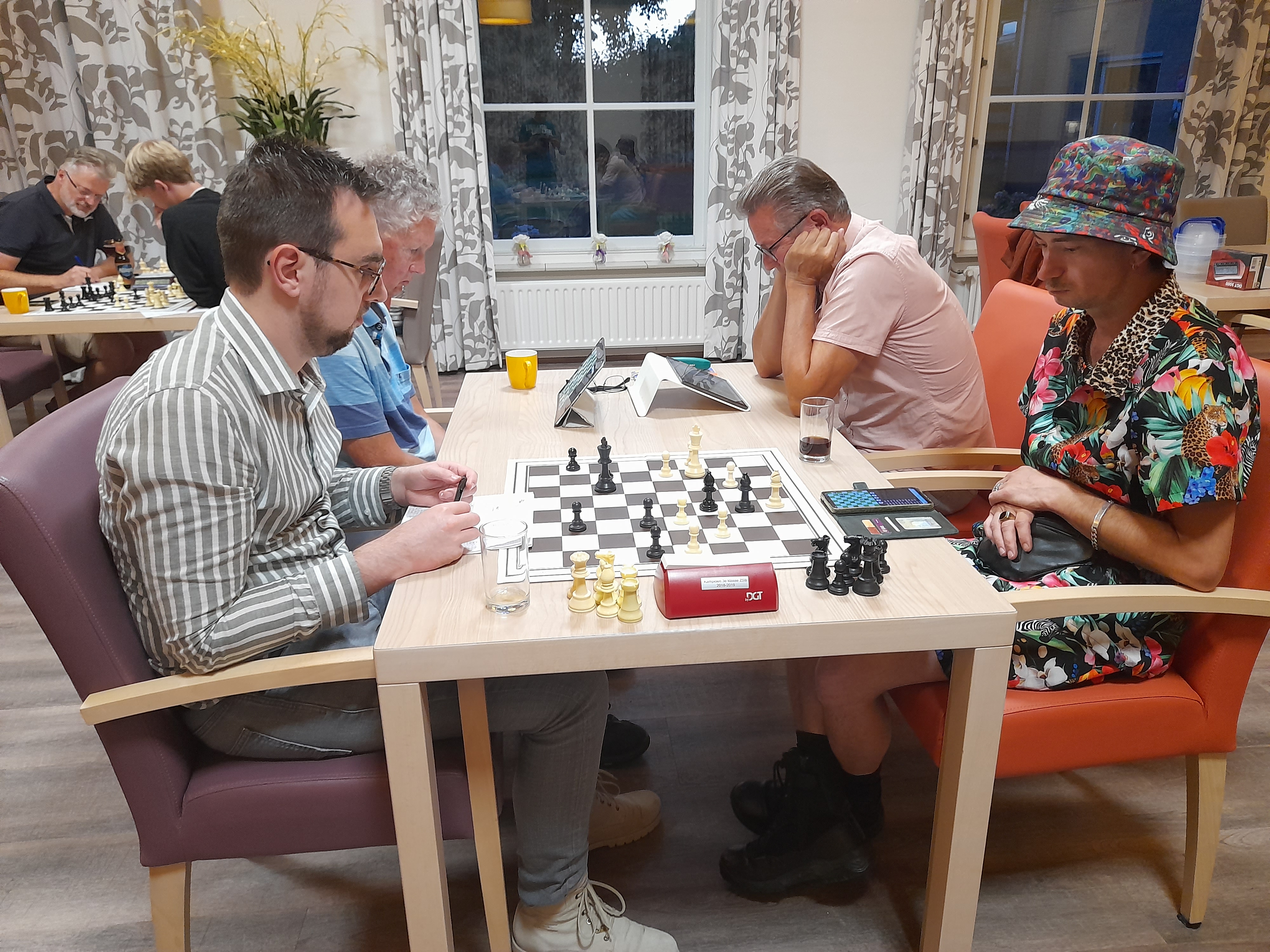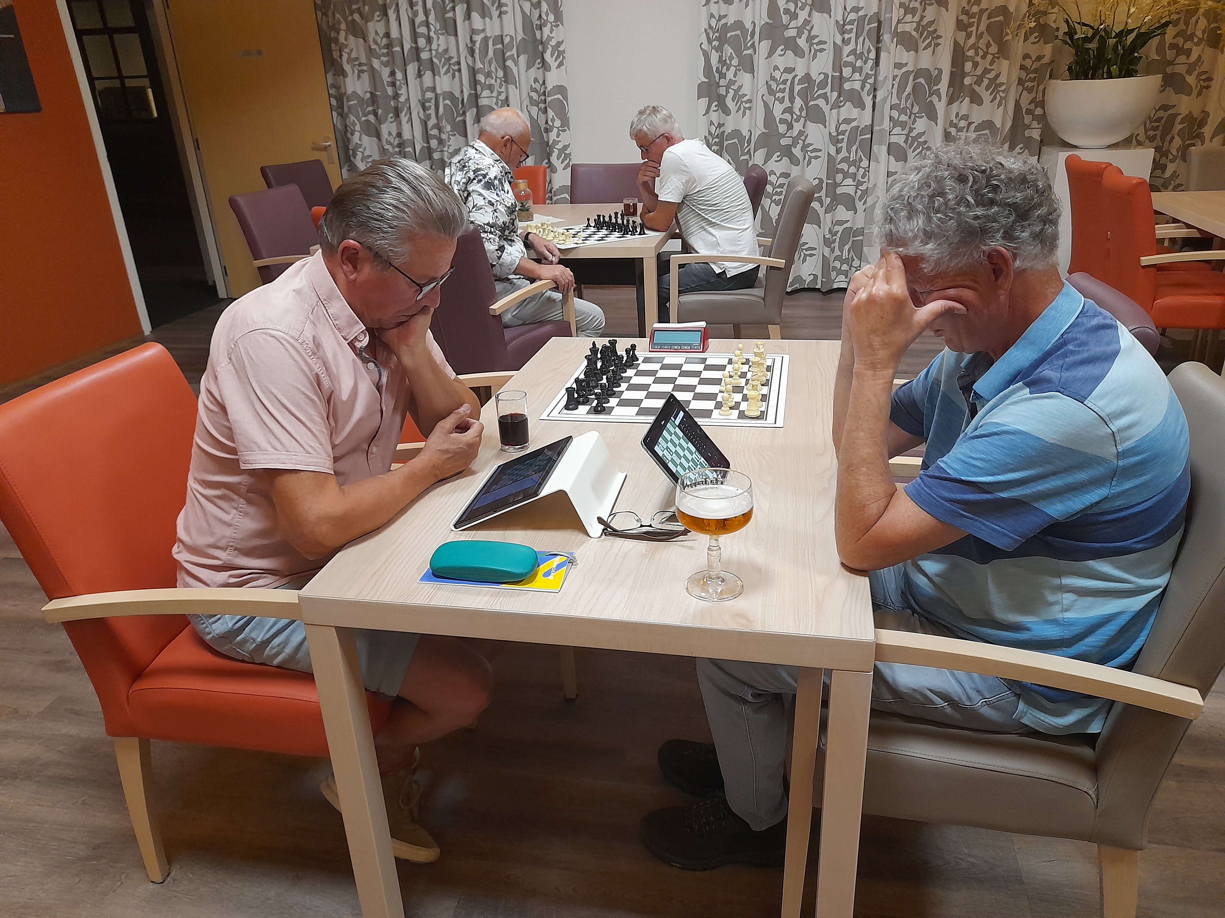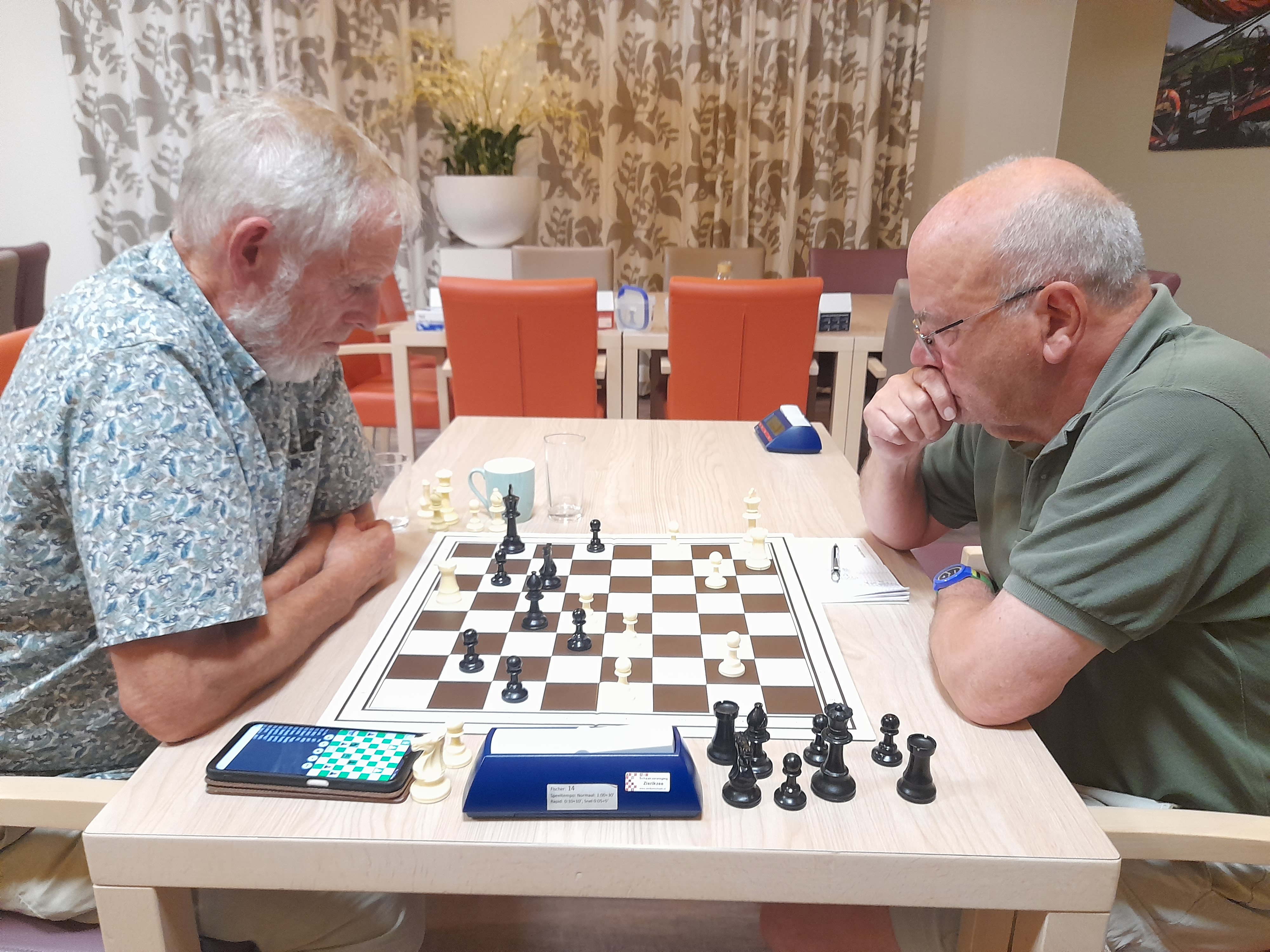 Wit bleef scherp spelen en ruilde twee torens en een pion af voor de dames. Zwart dacht dat remise het hoogst haalbare was en bood dat ook aan. Wit besloot het remise aanbod met nog een minuutje of twee a drie op de klok aan te nemen.