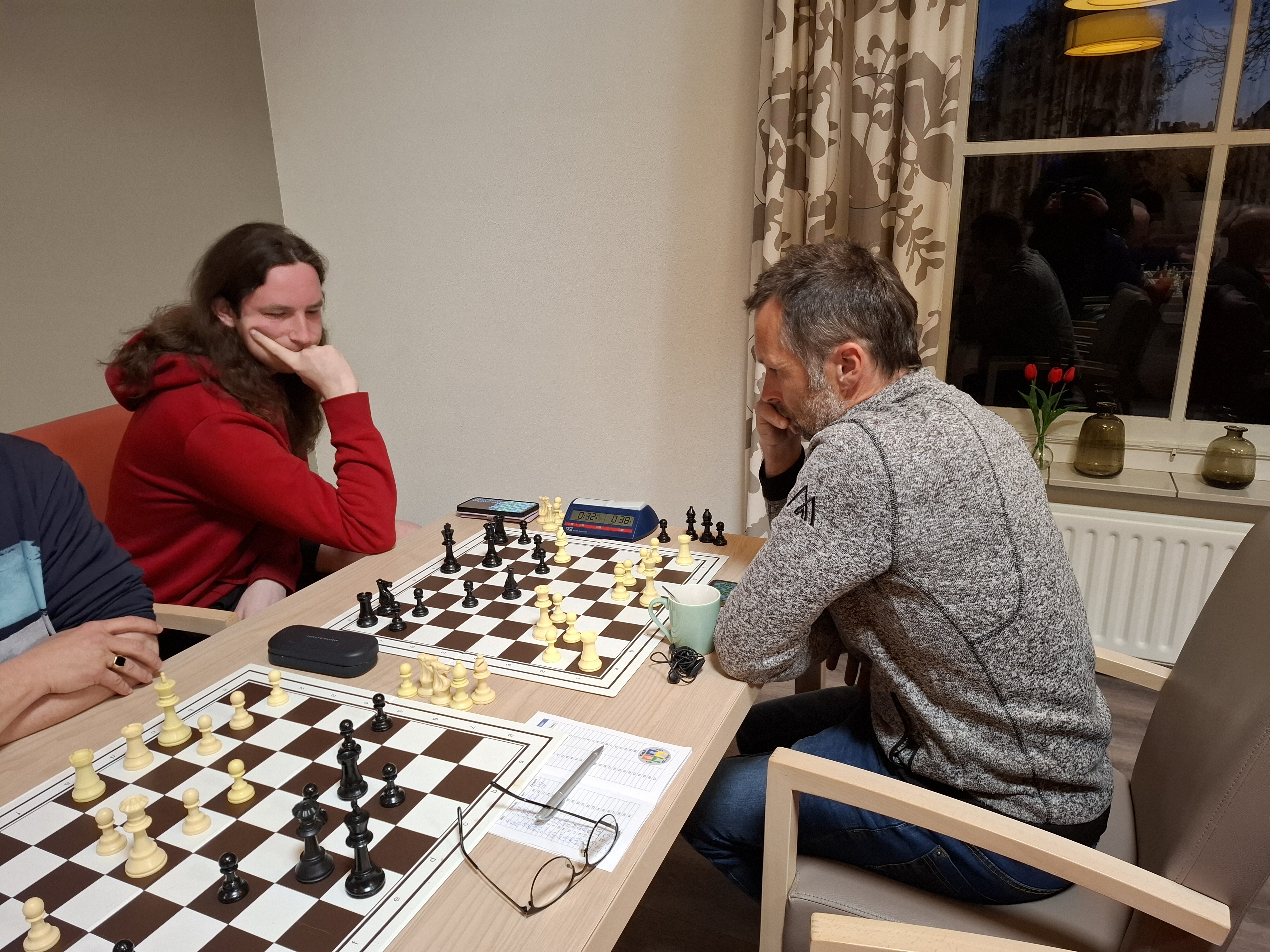 De met de witte stukken spelende De Vrieze beleefd schakend een beroerd 2025, en ook tegen de al een paar keer verrassende Van der Westen ging het mis. Tot halverwege was er voor De Vrieze eigenlijk niet zoveel aan de hand. Hij was dan zelf niet gevaarlijk, maar dat was Van der Westen ook niet. Een paar verkeerde keuzes deed de mogelijkheid de boel open te breken slinken en het spel ging steeds meer richting Van der Westen. Het nalaten van axb5 en dameruil bleek namens het witte kamp niet zo handig. Met a5 schoof De Vrieze zijn damevleugel dicht maar hoopte via de koningsvleugel met zijn witte loper achter de vijandelijke linies te komen. Van der Westen schoof alles dicht waardoor beide lopers van De Vrieze aan banden lagen en het remise leek te worden. De Vrieze bood ook remise aan, Van der Westen leek te kiezen voor de opportunistich spel maar profiteerde uiteindelijk van een witte blunder. Het geven van de wit veldige loper voor een paard bleek niet alleen rampzalig, maar uiteindelijk zelfs onnodig.