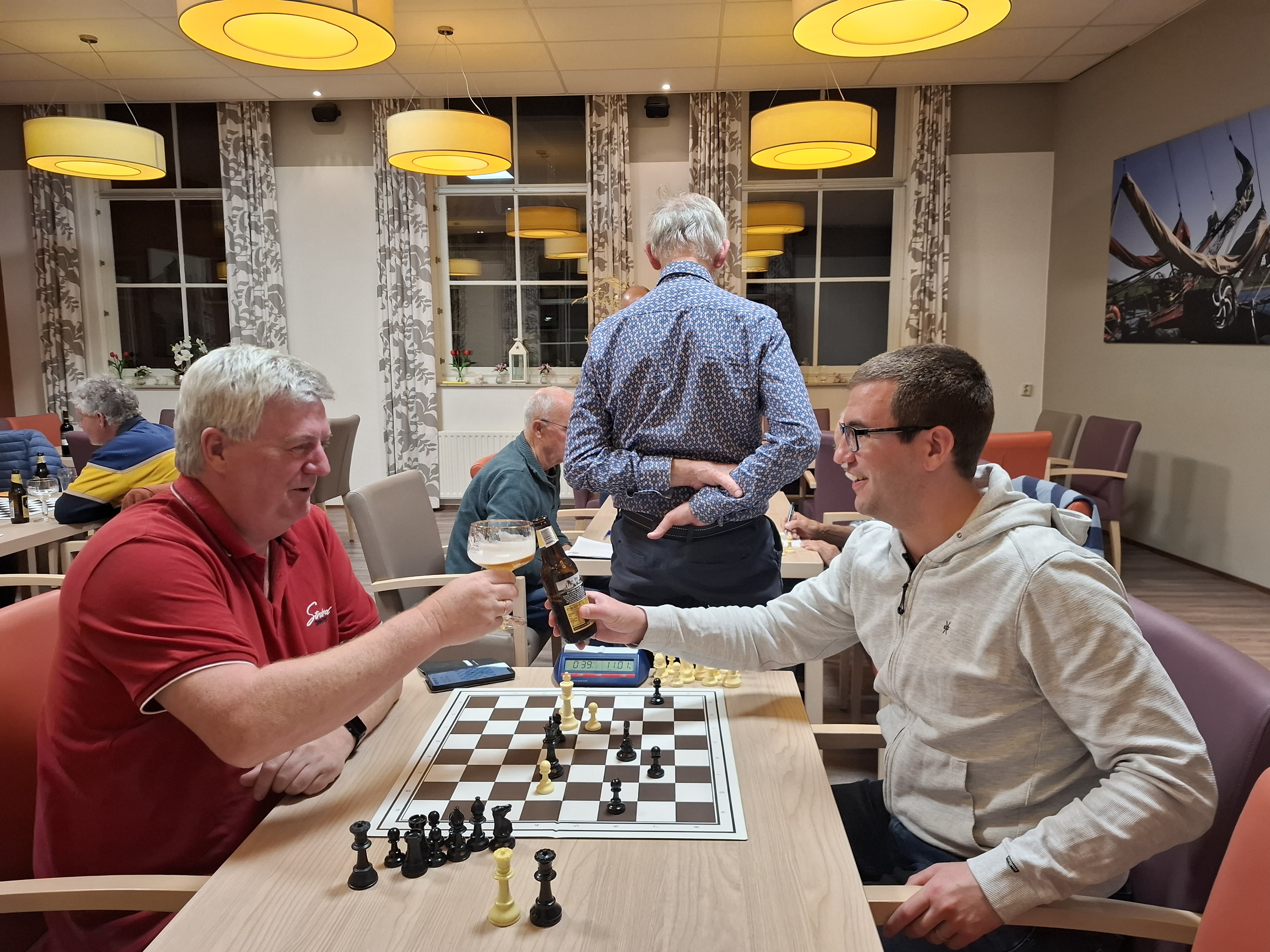 In speelronde zevenentwintig van Schaakvereniging Zierikzee vierde kersvers kampioen Aloys Kersten een prachtig seizoen door Marnix den Boer al in veertig minuten op de knieën te krijgen. Martin Krijger zette een grote stap in het behoudt van zijn tweede plaats door te winnen van Ernst van de Beek. Nummer drie Sjaak Spiegels won van Peter de Vrieze (zevende) en heeft in theorie nog kans op de tweede plaats. Dan moet Spiegels zelf de resterende drie partijen winnen en Krijger zal deze moeten verliezen. De strijd om de derde plaats blijft echter de meest spectaculaire en is nu in handen van Spiegels. Den Boer (zesde) en Van de Beek (vijfde) maakten dus even pas op de plaats en werden ingehaald door Jac Weeland na zijn remise tegen Efraïm Pronk (achtste). Weeland is nu vierde met dertig punten achterstand op Spiegels. Maar zelfs Pronk (achtste) kan nog loeren naar de derde plaats, want het verschil met Spiegels is slechts zevenentachtig punten. Wetende dat een gewonnen partij goed is voor rond de veertig punten lijkt er nog genoeg vuurwerk in het vat te zitten voor de resterende drie ronden.