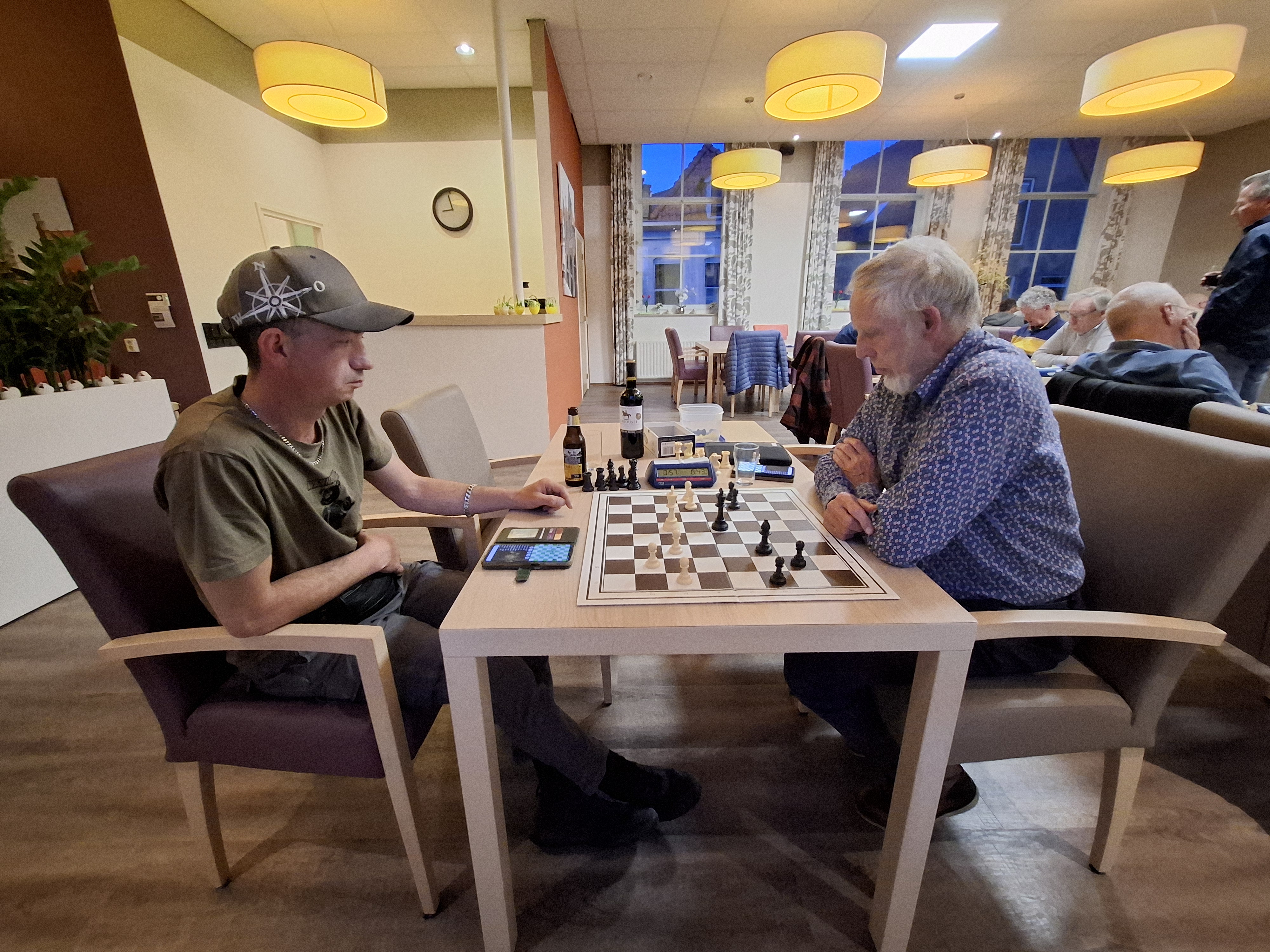 Na de jaarwisseling stond De Vrieze nog vijfde maar belandde in een vormcrisis die zijn weerga niet kent. De twaalfde stek is nu de plek van waaruit geopereerd moet worden om het seizoen nog een beetje redelijk af te sluiten. En dan met zwart spelen tegen een aanvaller pur sang. Greefhorst ging er eens goed voor zitten en De Vrieze zette zich schrap, want onderlinge partijen zijn doorgaans rommelig en heel onduidelijk. De Vrieze had zich dan ook op voorhand voorgenomen de tijd te nemen voor alle eventuele grappen en grollen van Greefhorst. Maar het viel dit keer mee.