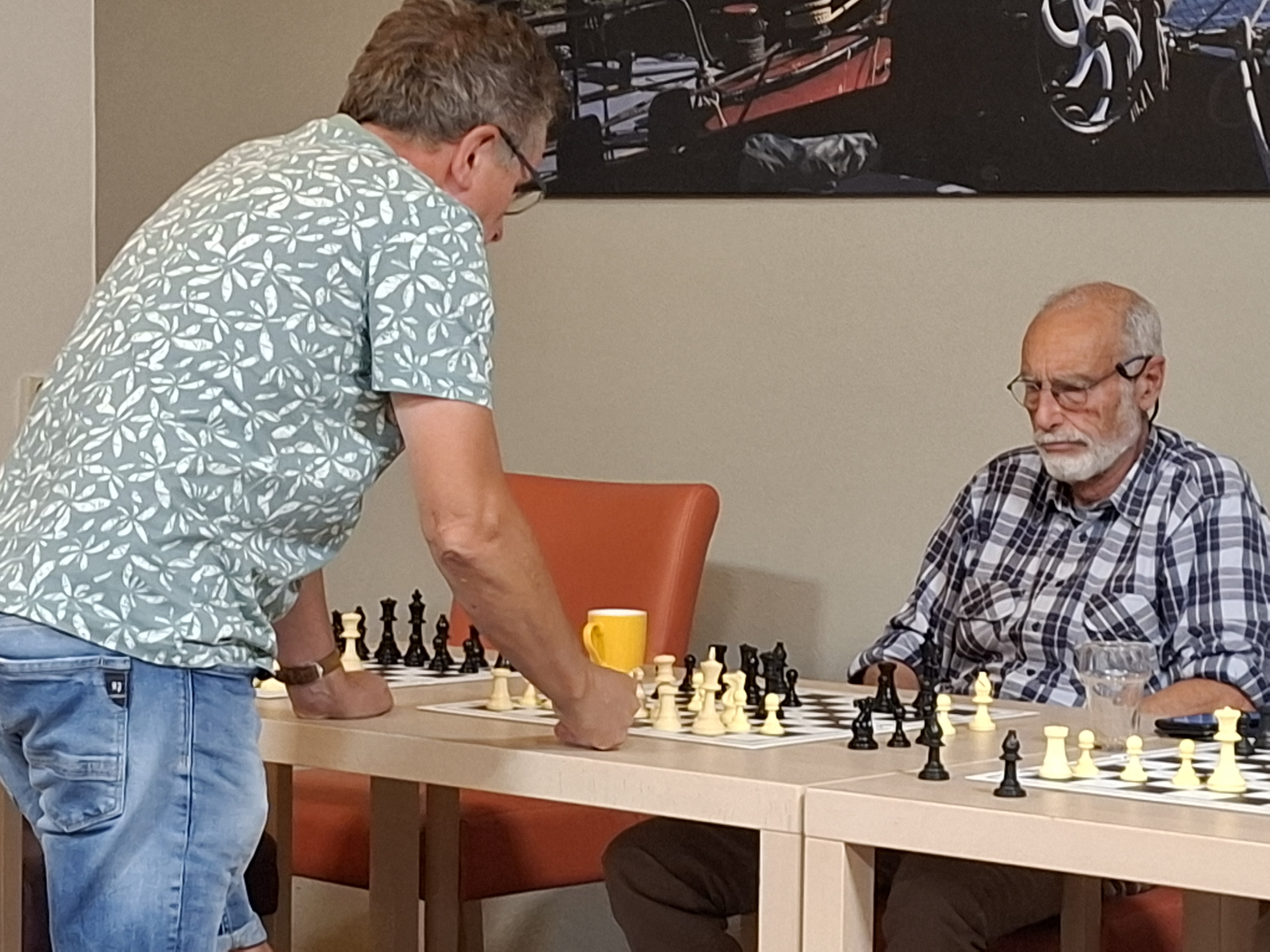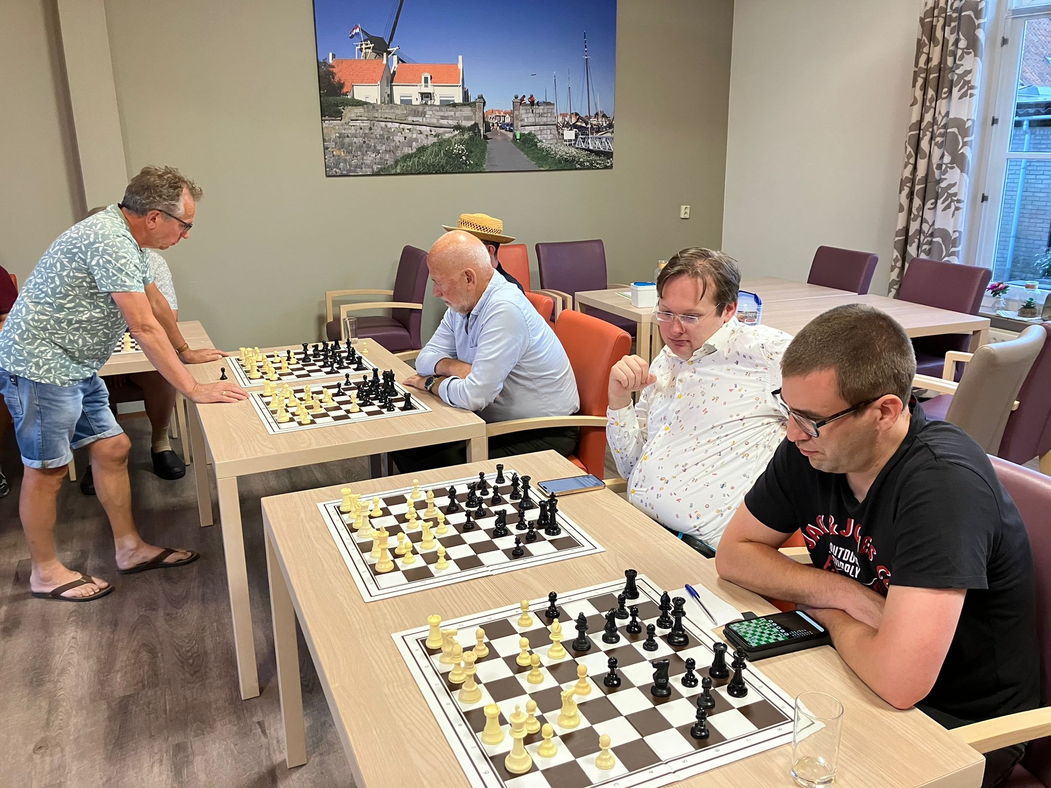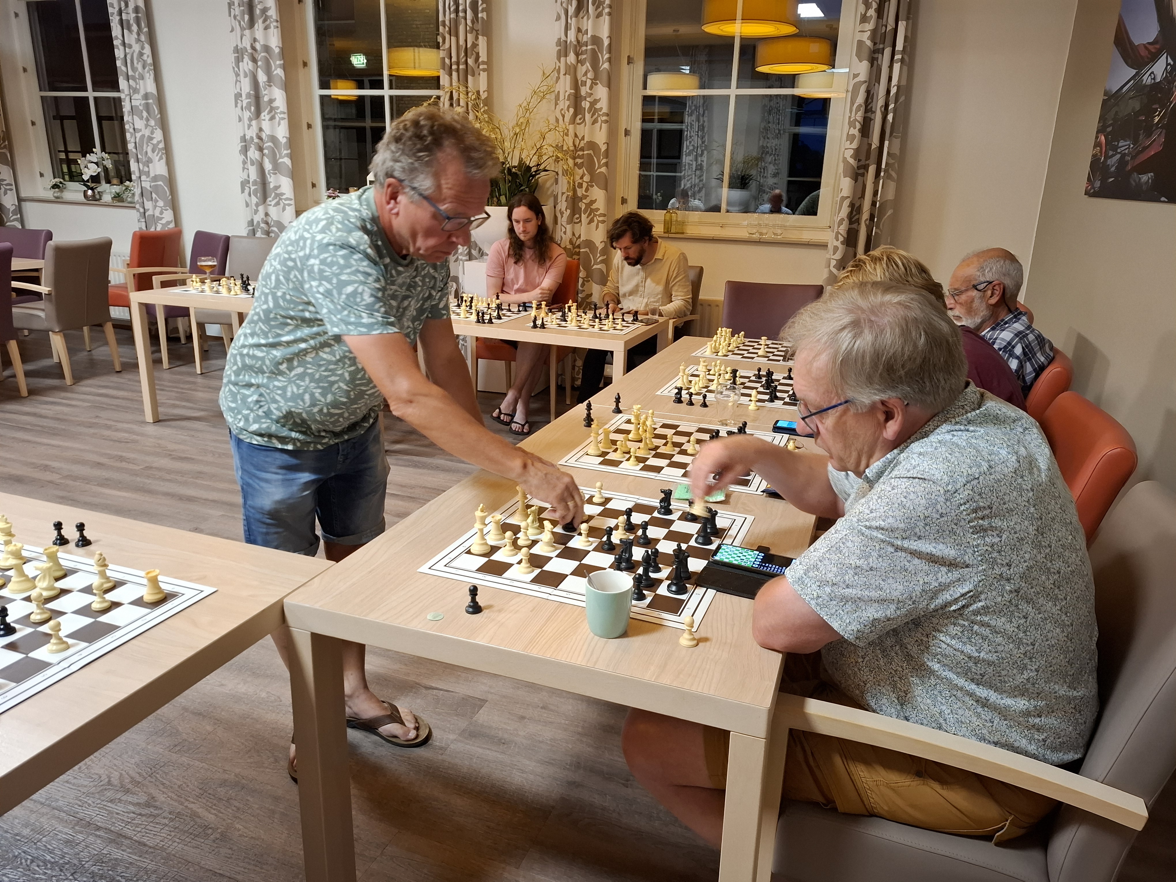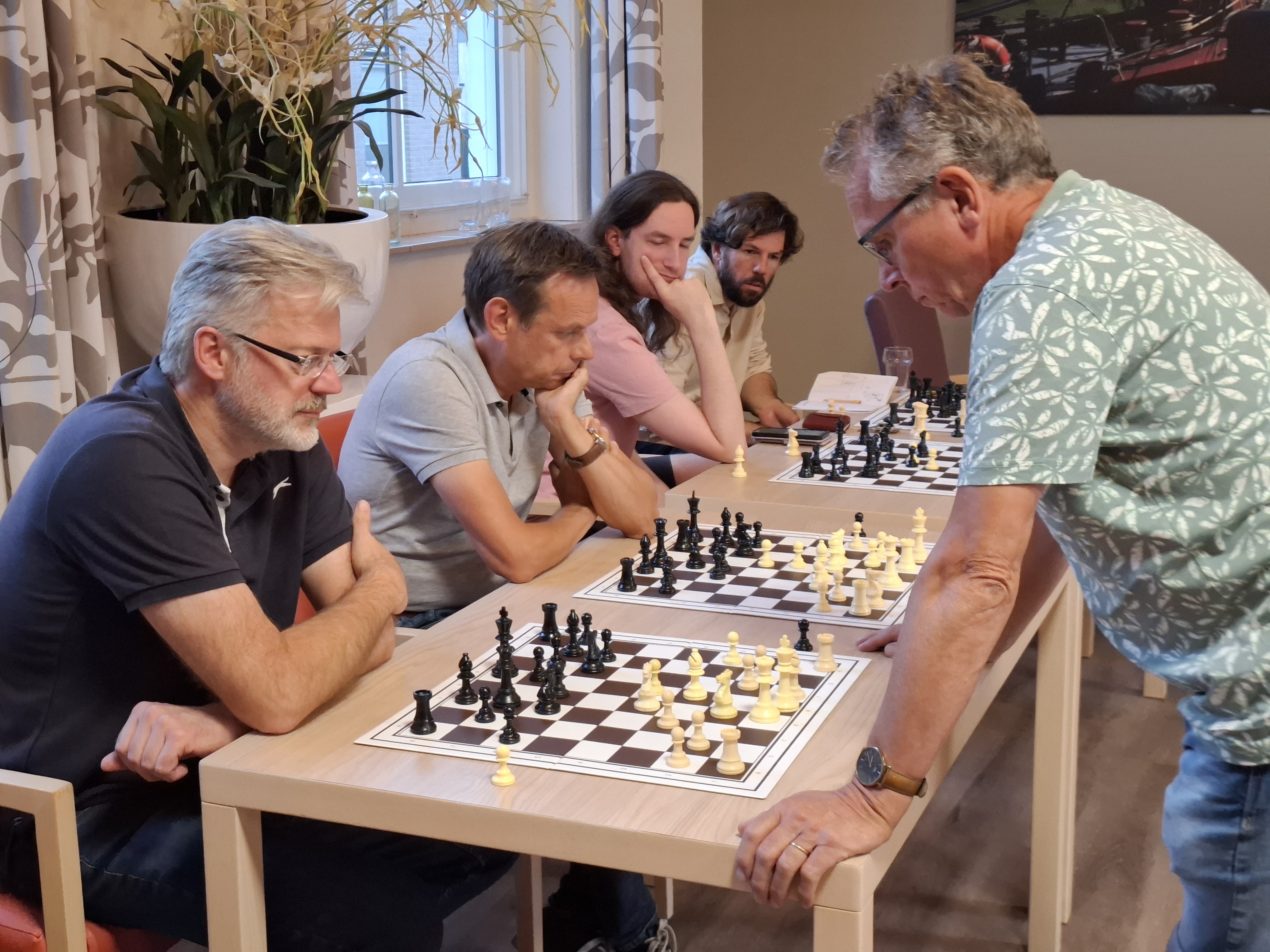 Kersten: ‘Het was al weer bijna veertig jaar geleden dat ik voor het laatst een simultaan gegeven heb. Dan merk je toch wel dat je wat ouder wordt. Fysiek ging het me prima af, maar ik merkte toch wel dat ik wat meer moeite heb om me telkens op een andere partij te focussen. Ik had elf tegenstanders, dat is niet al teveel, maar het was meer dan genoeg.