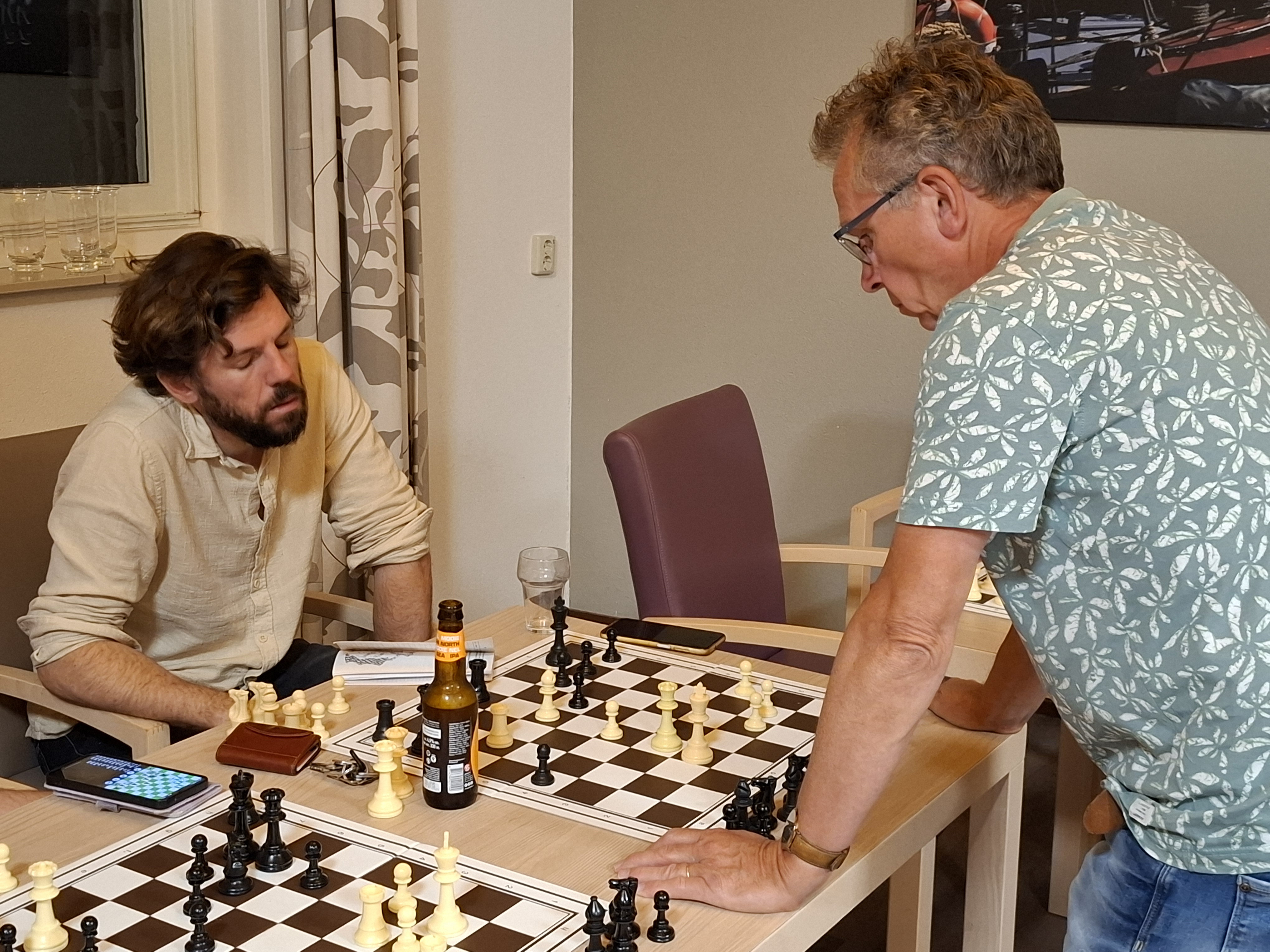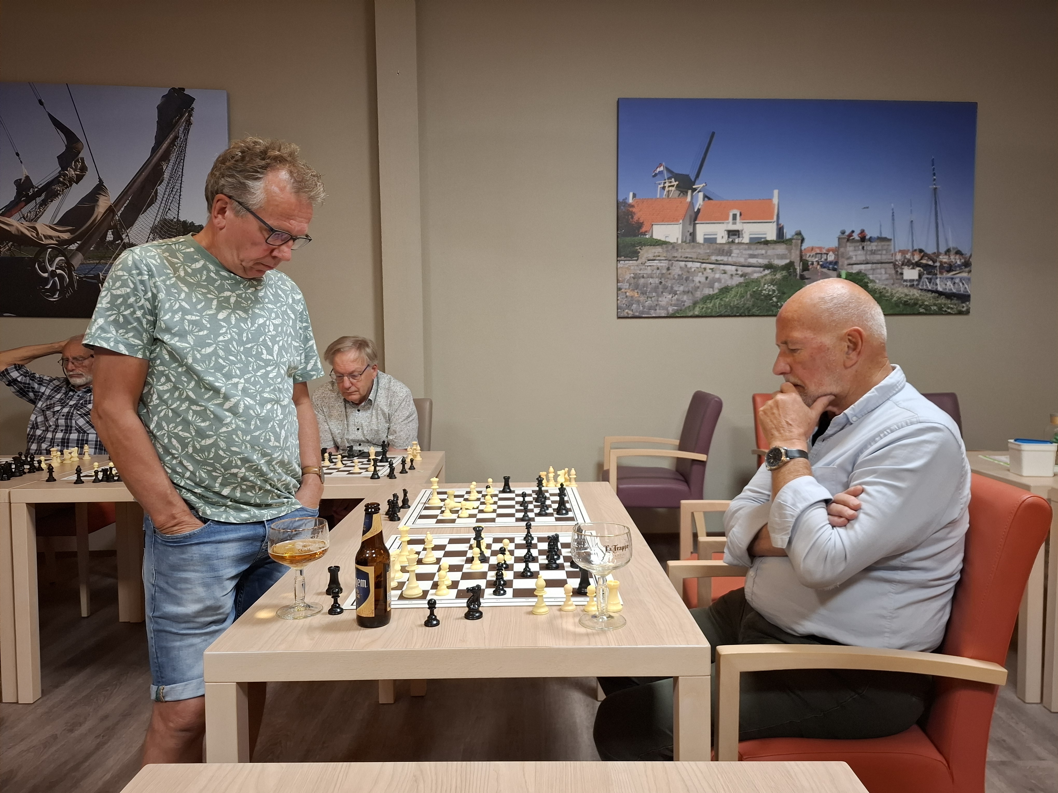 Geen half werk dus. Opmerkelijk was dat Van der Westen pas twee uur na het begin van de partij rokeerde. Uiteindelijk gaf Kersten nog een toren weg en gingen de felicitaties naar Van der Westen.