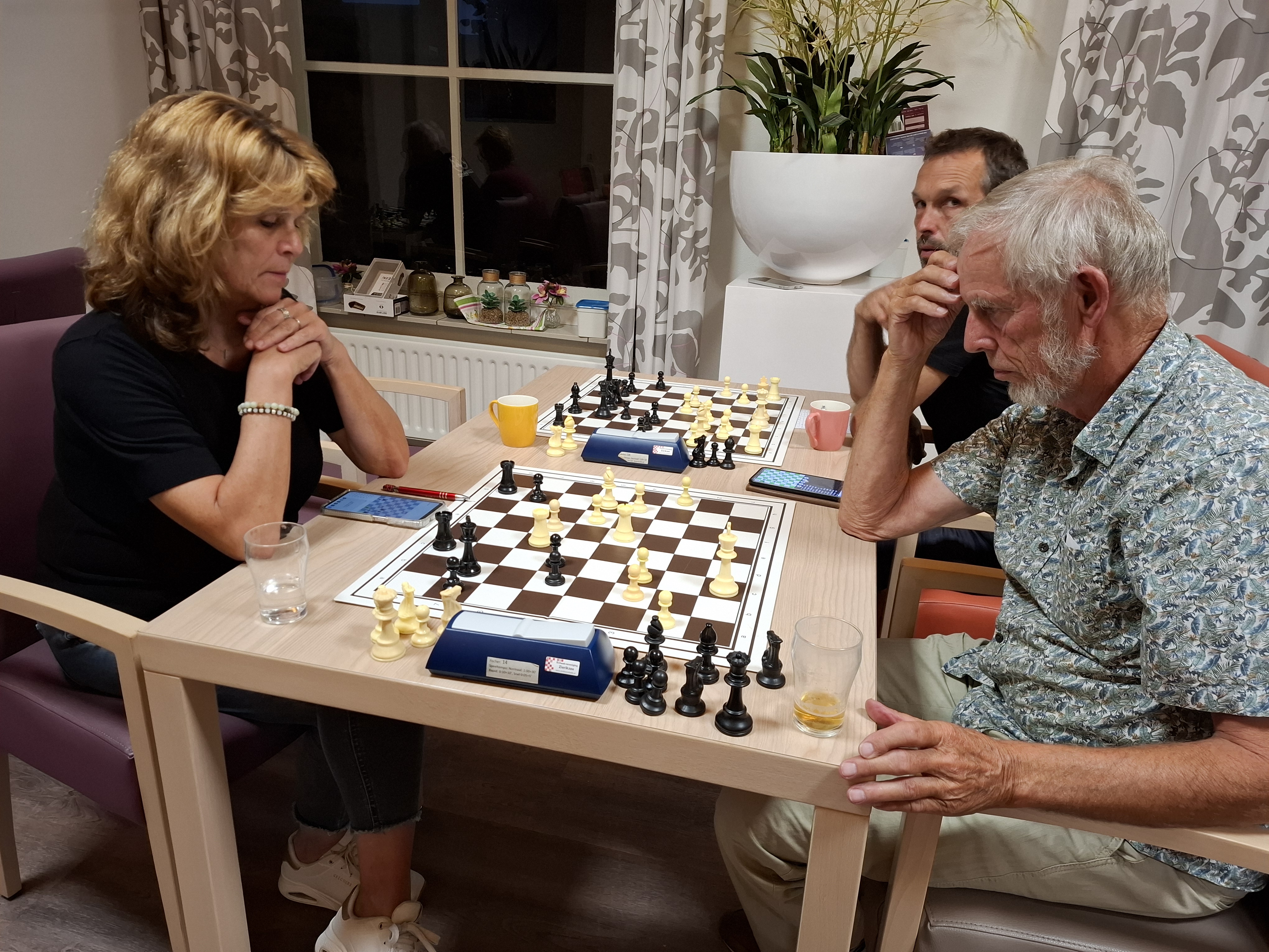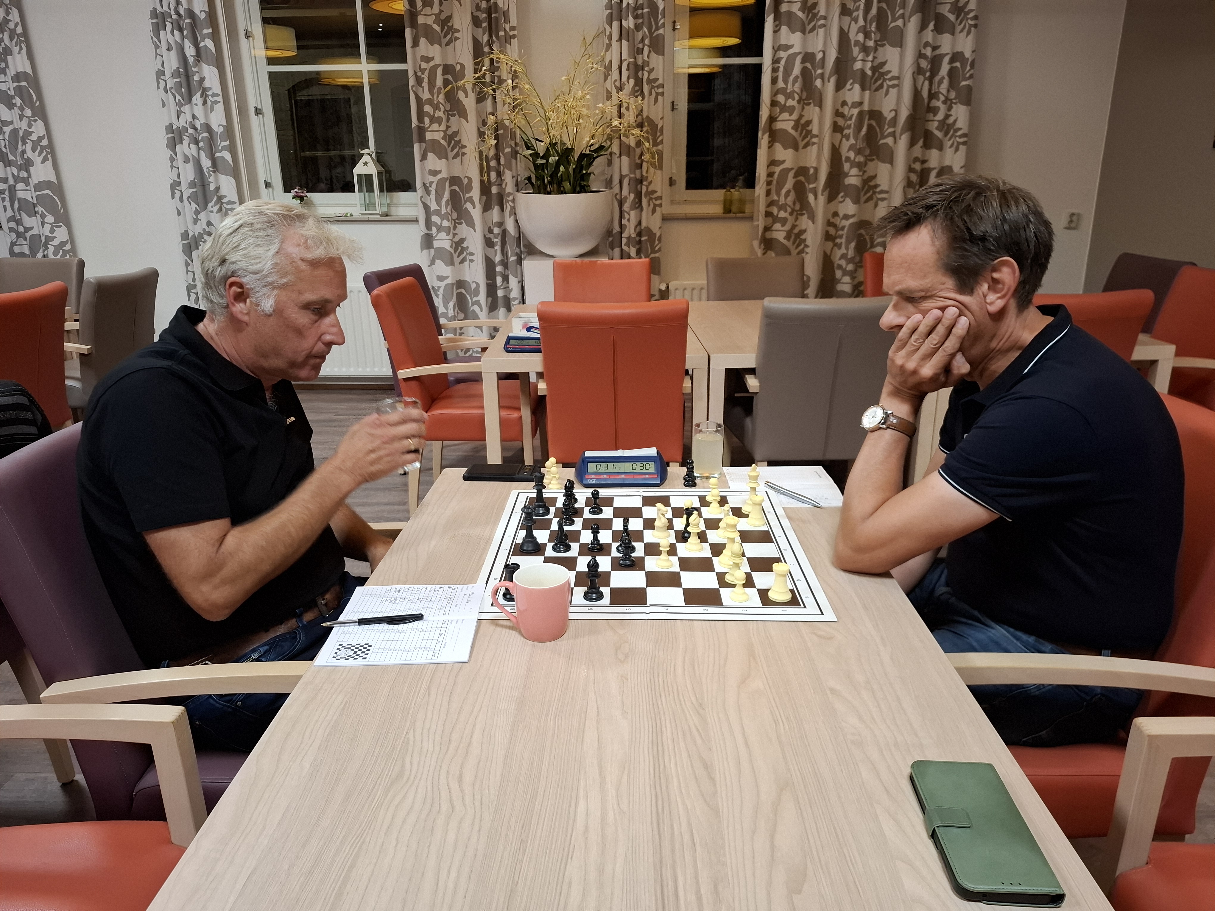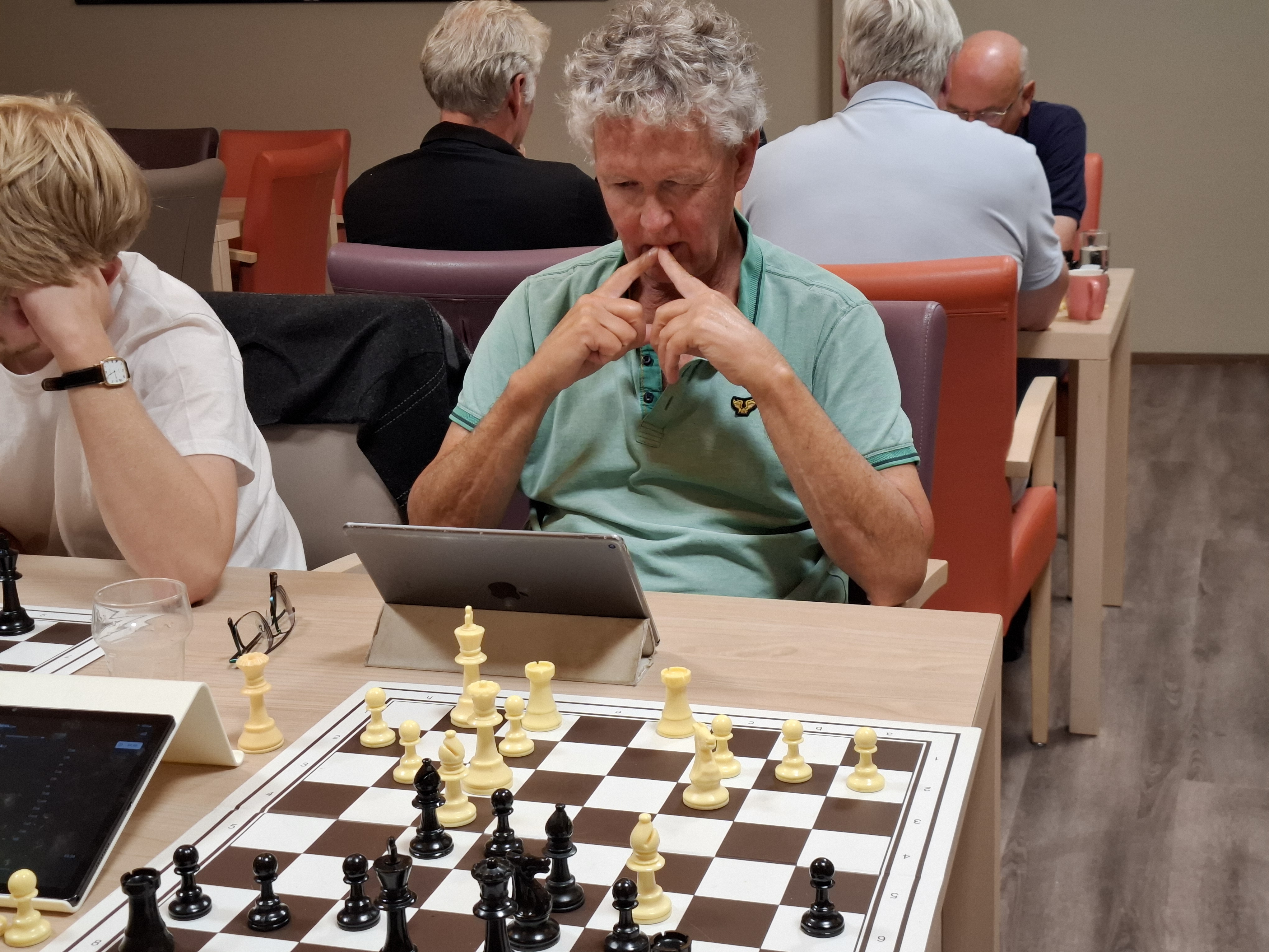 Het was even wennen na al die snelle partijen in de zomer competitie. Nu weer voldoende denk tijd maar toch ging het nog te snel. Zeker als de opening de eerste zes zetten volgens het boekje ging. Dan bega je daarna de fout door te snel te blijven spelen. Zo zag Blinde een pion winst over het hoofd doordat Baakman de dekking van die pion ophief.
