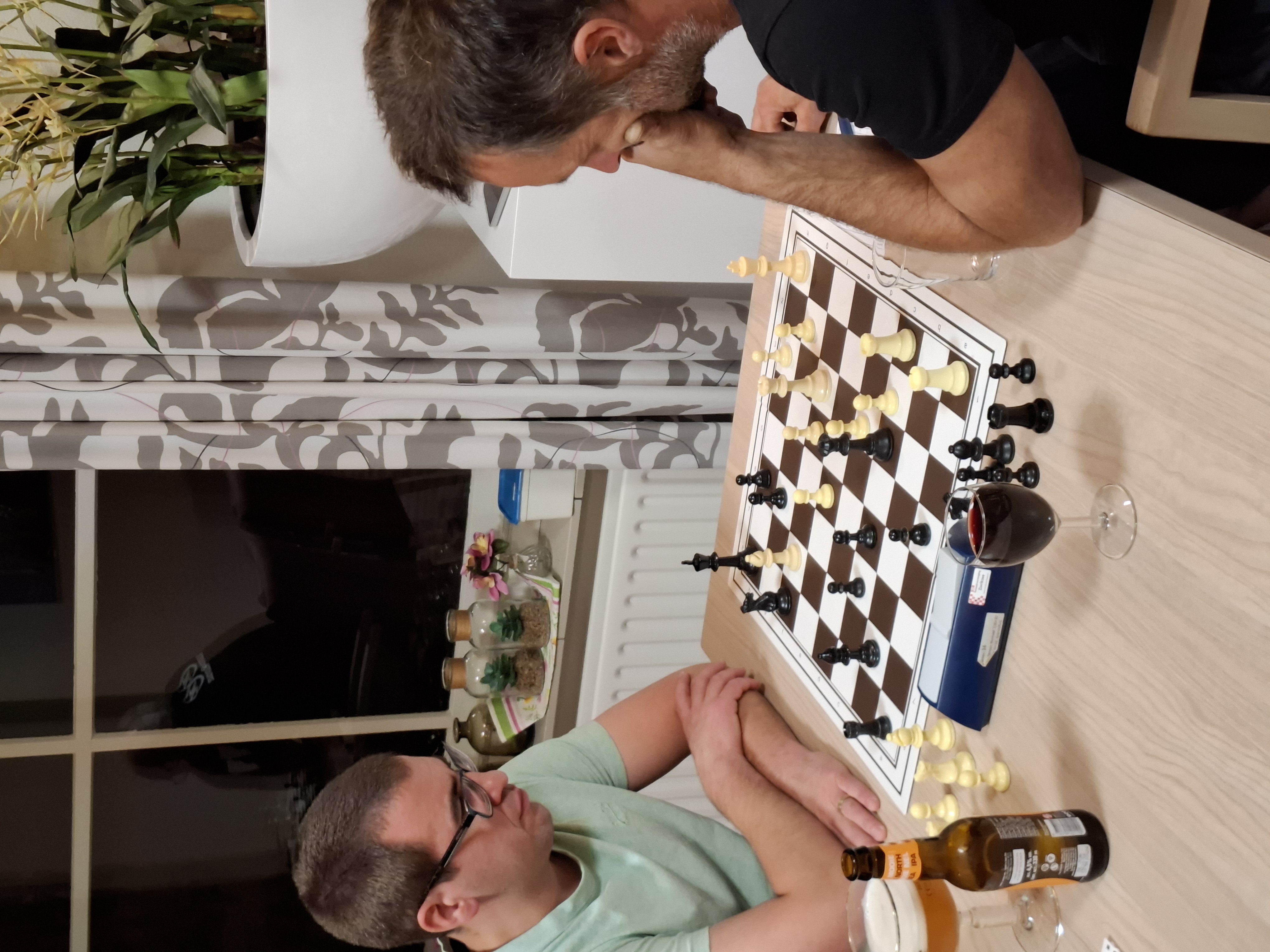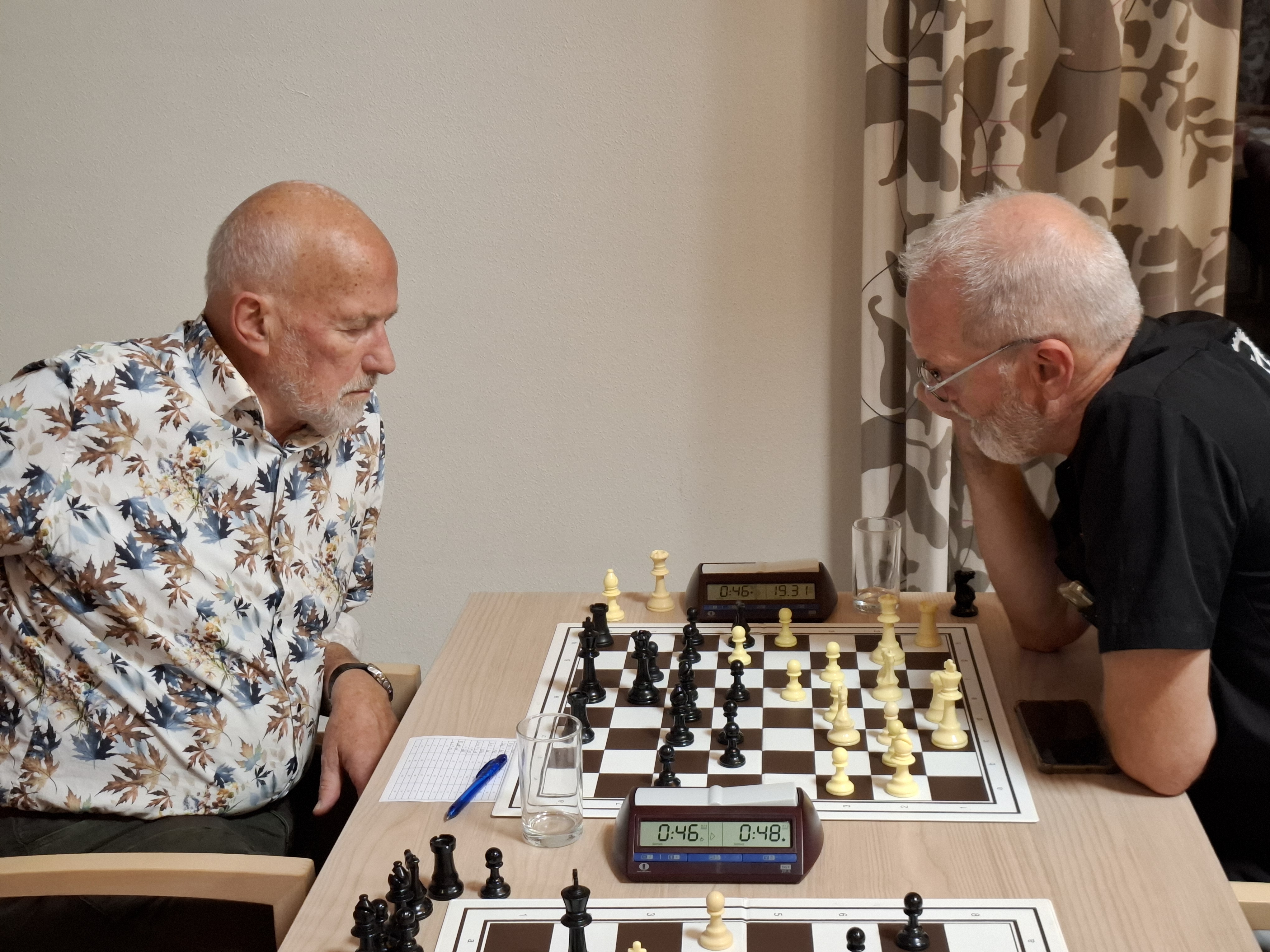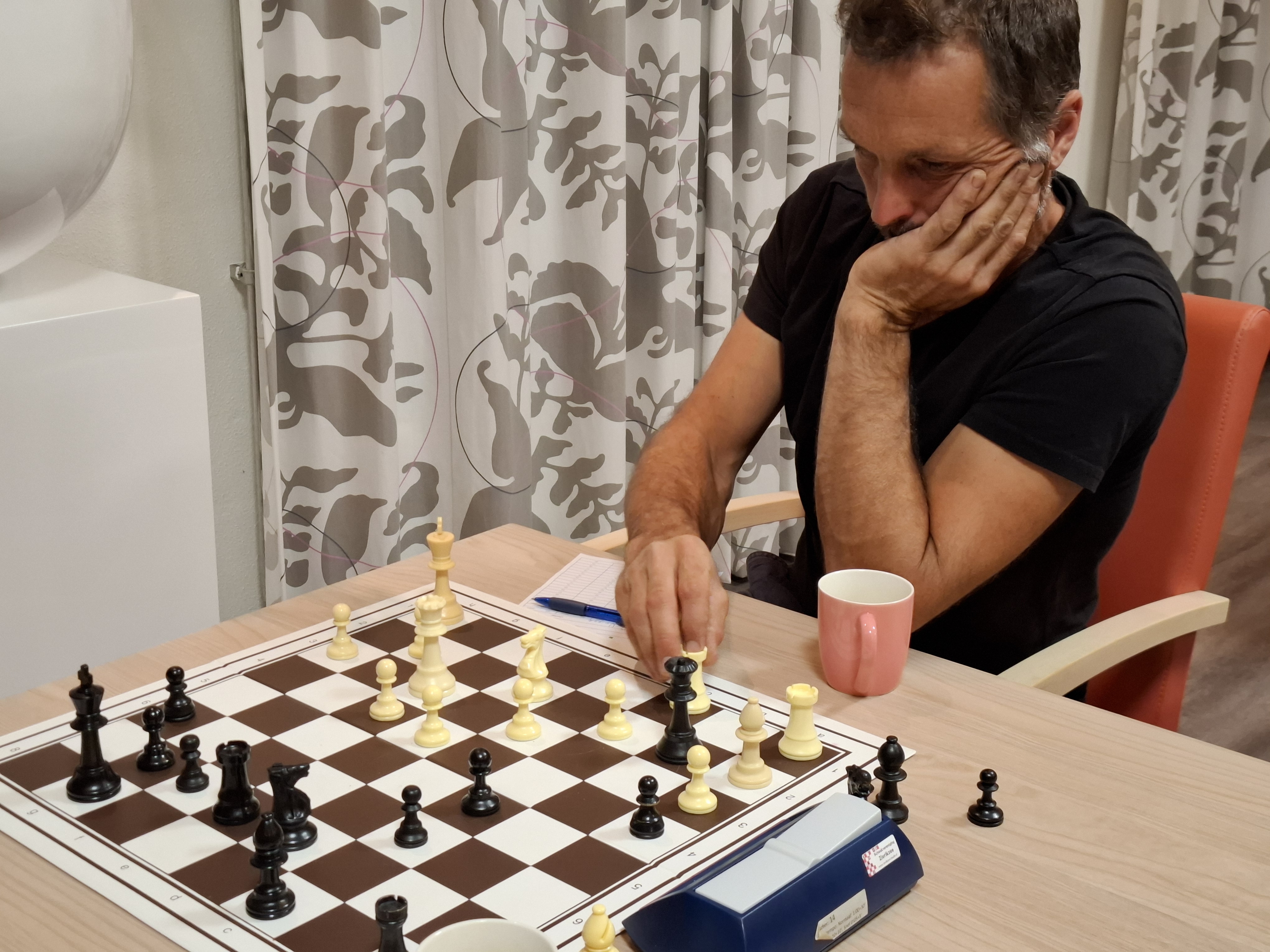 Het was even wennen na al die snelle partijen in de zomer competitie. Nu weer voldoende denk tijd maar toch ging het nog te snel. Zeker als de opening de eerste zes zetten volgens het boekje ging. Dan bega je daarna de fout door te snel te blijven spelen. Zo zag Blinde een pion winst over het hoofd doordat Baakman de dekking van die pion ophief.