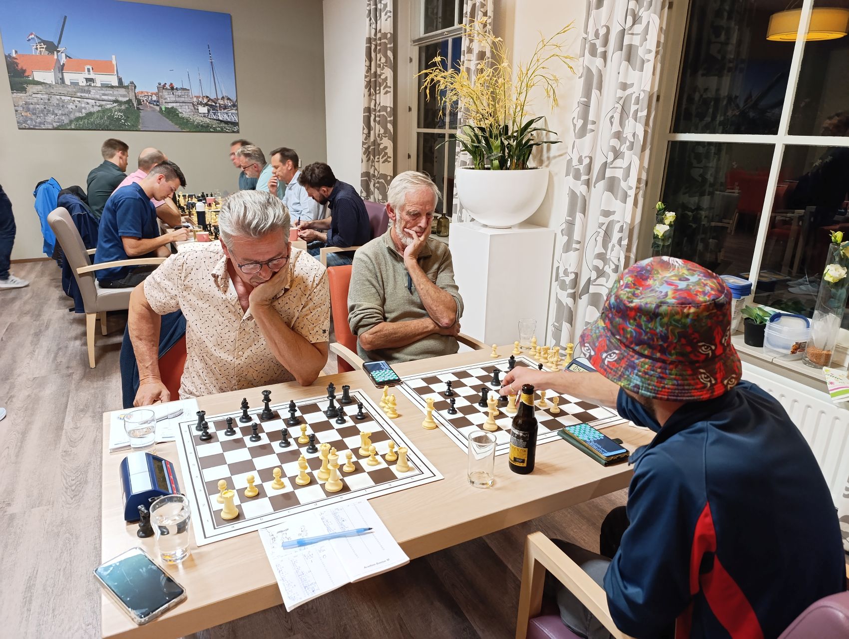 Na een uur zag het er goed uit voor het thuisteam. Bord één in balans, bord twee ook, en op bord drie en vier een comfortabele voorsprong. Waar Both deze echter ook omzette in een afgetekende overwinning kon Van de Beek op bord vier weer niet doordrukken. Twee matige zetten gaven zijn tegenstander de kans om uit de klem te komen waar hij al sinds de opening in zat. Hij behield zijn rust terwijl bij Van de Beek de stoppen doorsloegen. Ook Spiegels had een lastig moment, waarop hij zich gedwongen zag een stuk te offeren tegen twee pionnen. De dreiging was er verder echter niet, en zijn tegenstander schoof de partij rustig uit. Hierdoor moest Kersten op bord 1 winnen om een gelijke stand te creëren, maar kwam hij niet verder dan een gelijkspel. Het beloofd een moeilijk seizoen te worden voor het eerste team, en zeker Van de Beek zal aan de bak moeten om te bewijzen dat hij aan de speelkracht van het A-team iets bij te dragen heeft.