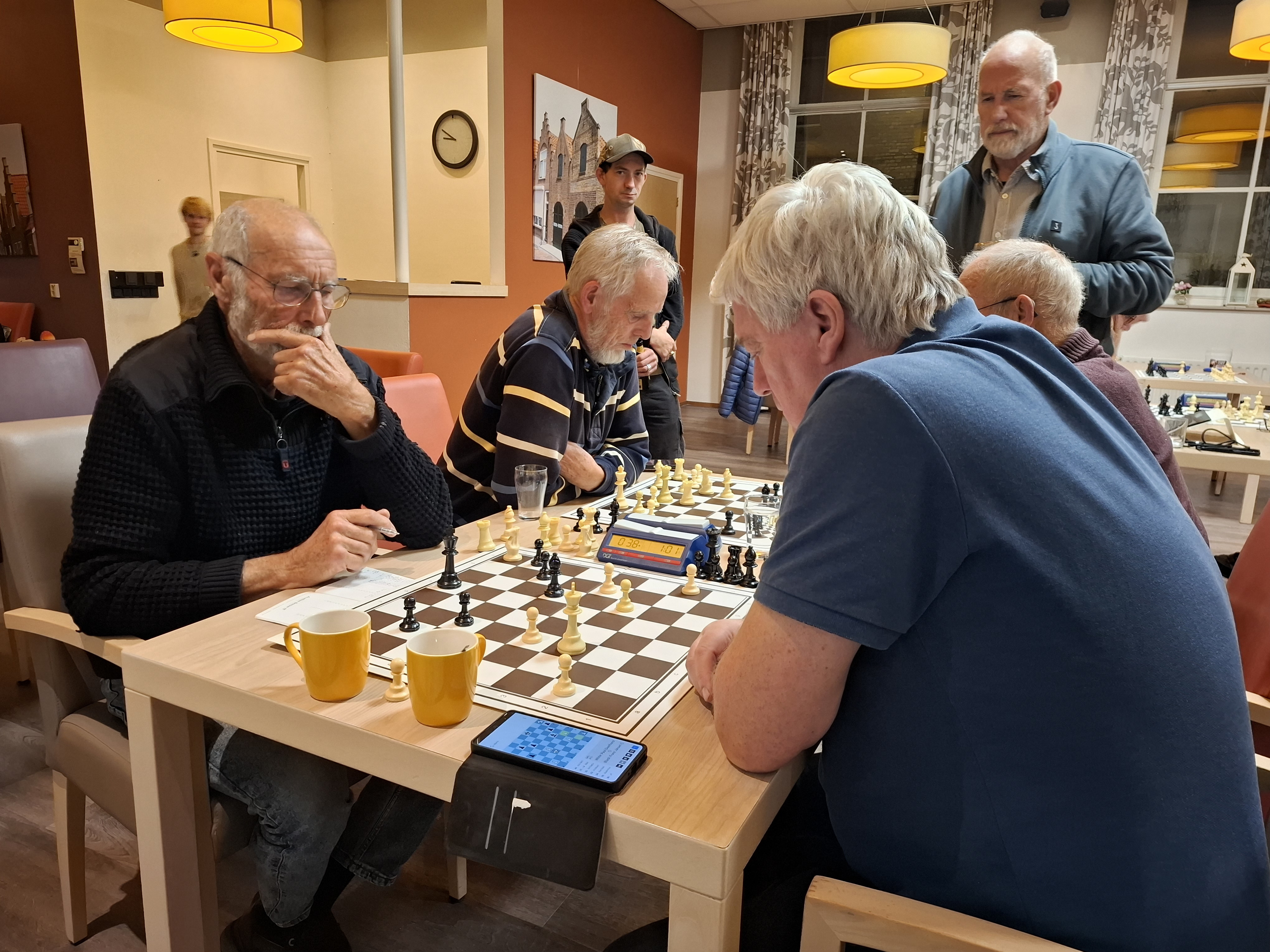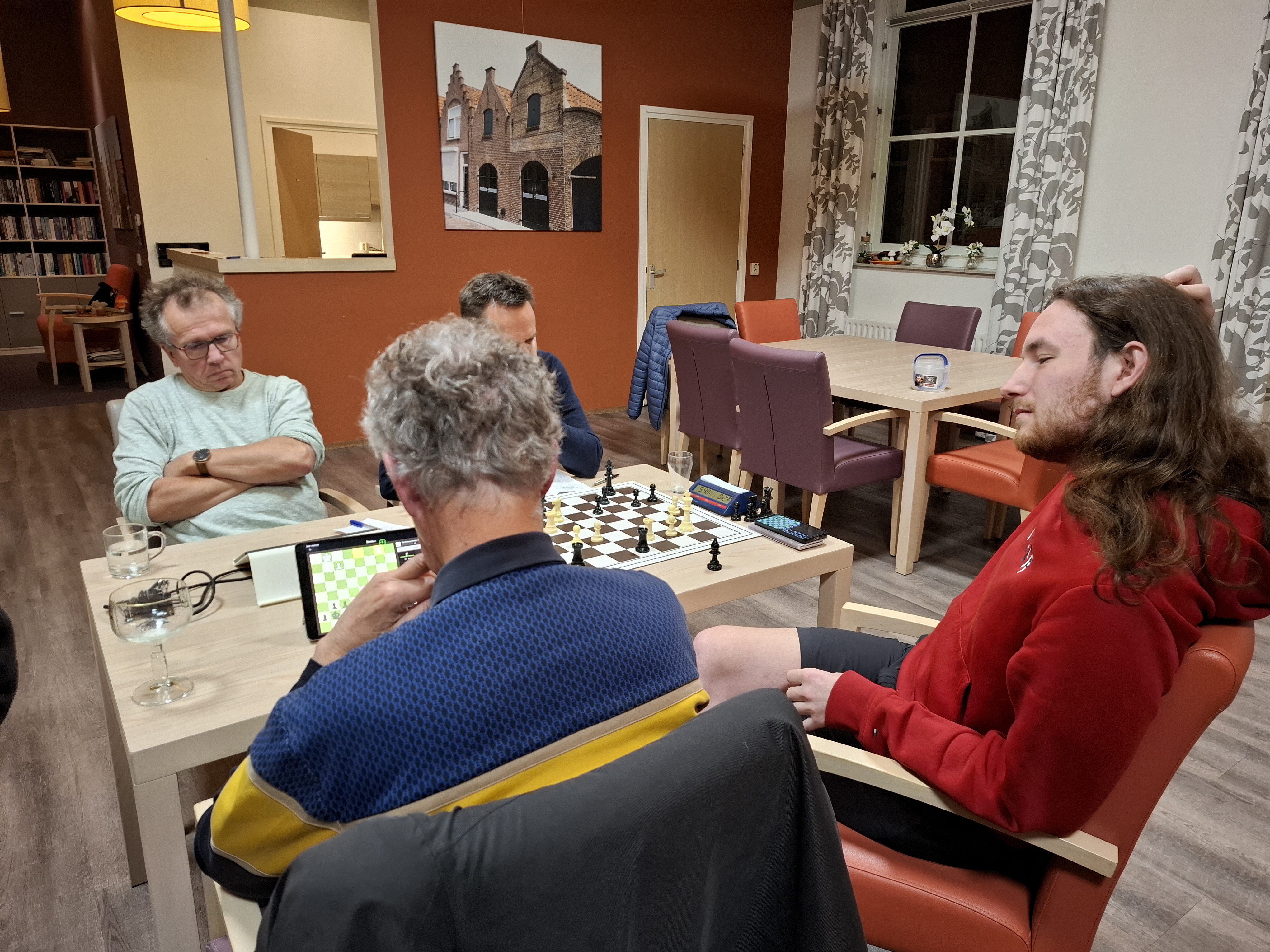 In speelronde zeven van Schaakvereniging Zierikzee behield koploper en titelverdediger Aloys Kersten zijn eerste plaats door te winnen van Martin Krijger. Sjaak Spiegels en Jeroen van Straten blijven in zijn spoor na winstpartijen op respectievelijk Mark van Rooten en Efraïm Pronk. Arjan Bom wist zijn eerste partij van dit seizoen te winnen. Na drie verloren partijen bleek Bom nu veel sterker dan Marianne Blinde. Twee mogelijke dameveroveringen zag Bom weliswaar over het hoofd, maar hij schaakte geduldig tot hij Blinde mat kon zetten. Dan vanaf deze plaats nog een wordt van dank aan Fokko Baakman en alles wat hij als voorzitter voor de vereniging gedaan heeft. Vorige week droeg hij de hamer over aan zijn opvolger. Dit is dan ook de eerste speelavond in het tijdperk van Ernst van de Beek, en aan hem dan ook veel voorspoed en succes gewenst!