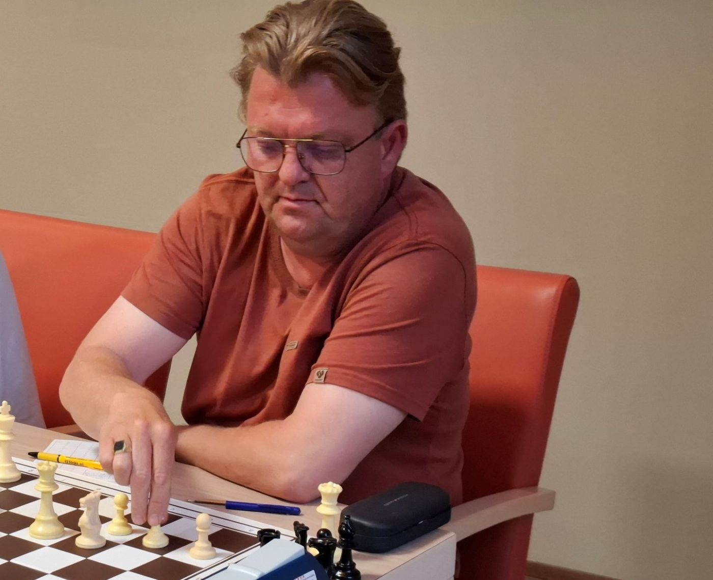 In de Alapin opening is het thema vaak dat wit ruimtevoordeel heeft, maar daar staat een zwakke d-pion tegenover. Zo rond de 15e zet waren de dames geruild en had wit deze zwakke d4-pion gedekt met een pion op c3. Heel verrassend, in elk geval voor zwart, was dat wit de c-pion op de 16e zet al opschoof en daarmee de dekking van d4 opgaf. Dat was goed berekend want zwart kwam onder flinke druk te staan. Op zet 19 maakte zwart een foutje waarop wit ook zijn d-pion kon opspelen. Door een dreigend “mat achter de paaltjes” won wit een pion en leek op de winst af te stevenen. Leek…, maar wit had tot dusver heel veel tijd verbruikt en moest er nu, met nog slecht vijf minuten op de klok, zuinig mee om gaan. Dat resulteerde in een paar mindere zetten waardoor zwart de verloren pionnen kon terugwinnen. Op de 39e zet aanvaardde wit het remiseaanbod.