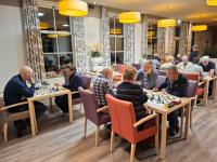 En zo gek is die gedachte helemaal niet. Floris van der Voorn (links) heeft sinds speelronde zeven niet meer verloren. Efraïm Pronk (rechts) werd getrakteerd op een vlijmscherpe mataanval. Het betekende voor Van der Voorn sinds eind oktober de tiende gewonnen partij, met aan het begin nog even een kleine hapering met remise als gevolg.